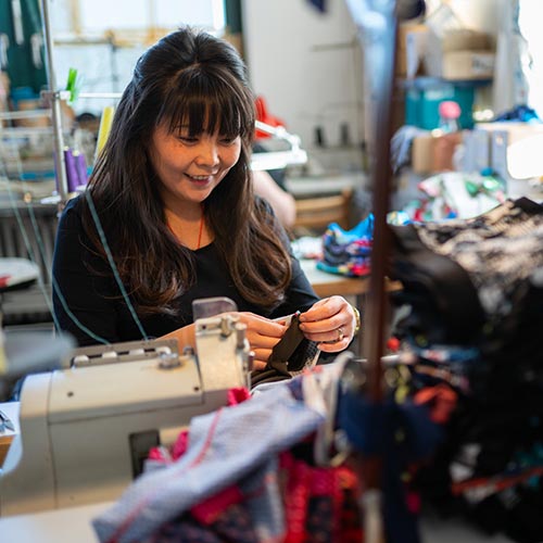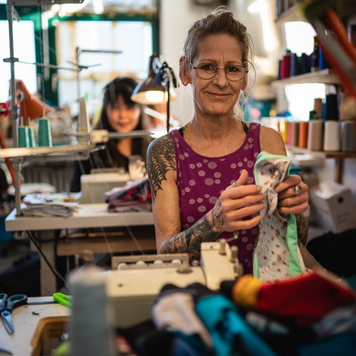 Schnell wurde uns klar, daß wir unsere persönliche Überzeugungen auch in unserer jungen Firma umsetzen wollten. Als Spezies Mensch haben wir diesen Planeten extrem umgestaltet und müssen uns bei allen Handlungen verantwortungsvoll über die Konsequenzen Gedanken machen. Als erstes bedeutete das natürlich nachhaltige Produktion und Mterialien aber auch unsere Produktion nichts ins billige und ferne Ausland zu verlegen, wie es üblich ist. Wir wollten immer selbst Teil des gesamten Herstellungsprozesses sein, Arbeitsplätze in unserem Umfeld schaffen und die Transportwege kurz halten. Unsere erste Näherin war dabei der größte Schritt von vielen weiteren kleinen Schritten, die wir seitdem gegangen sind