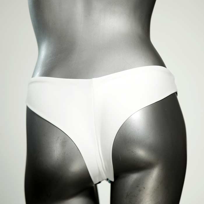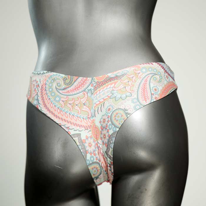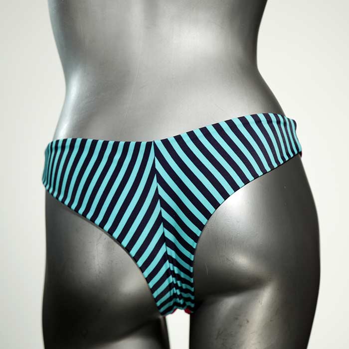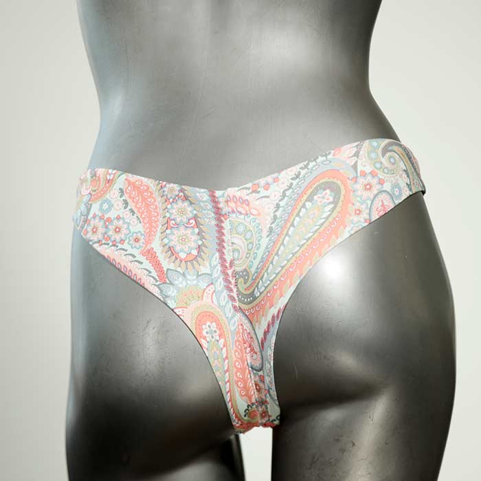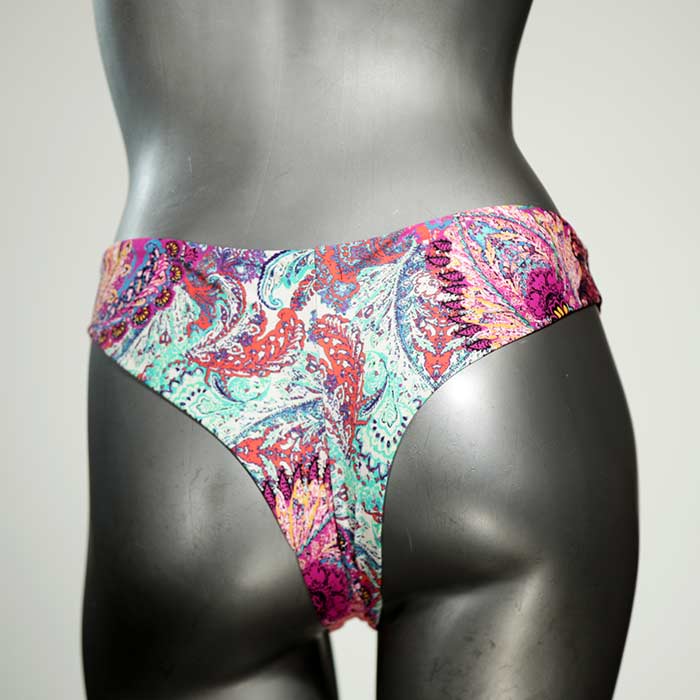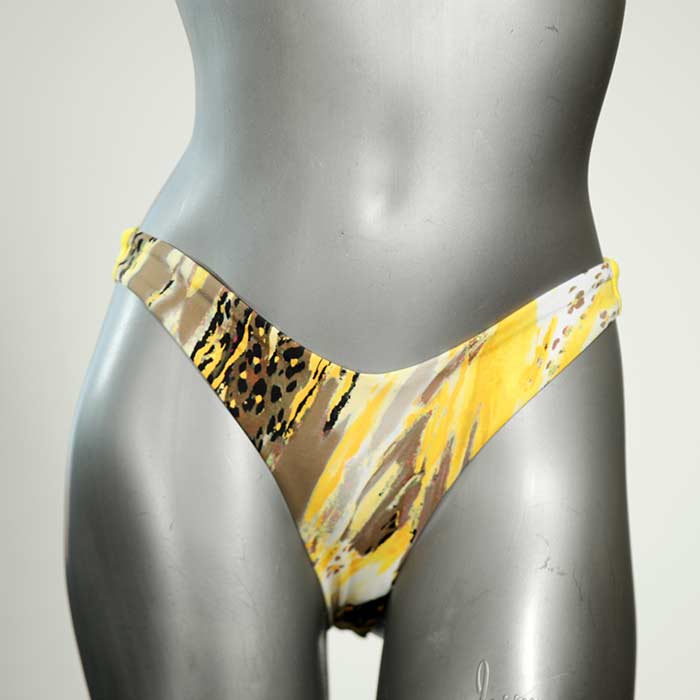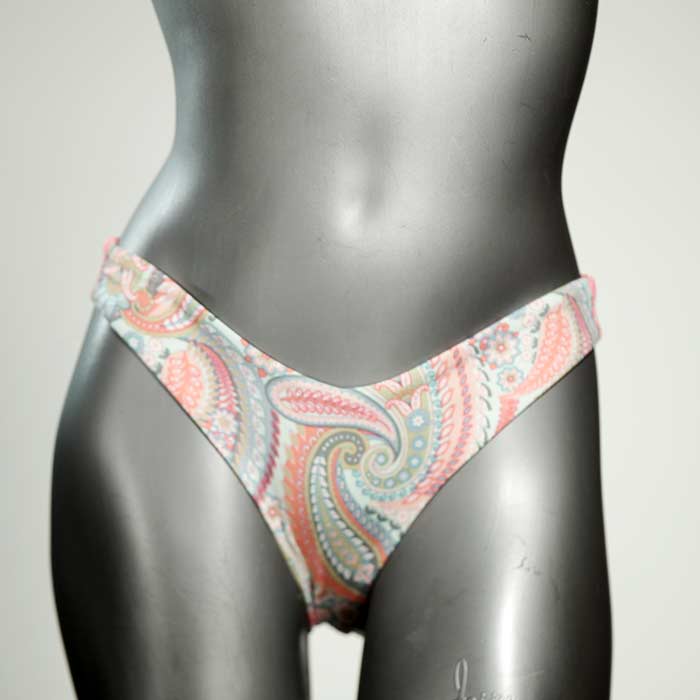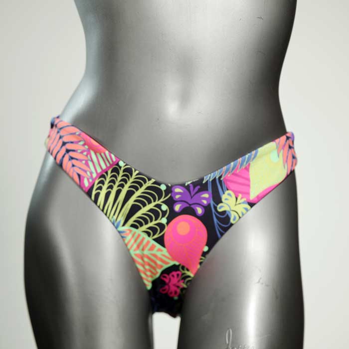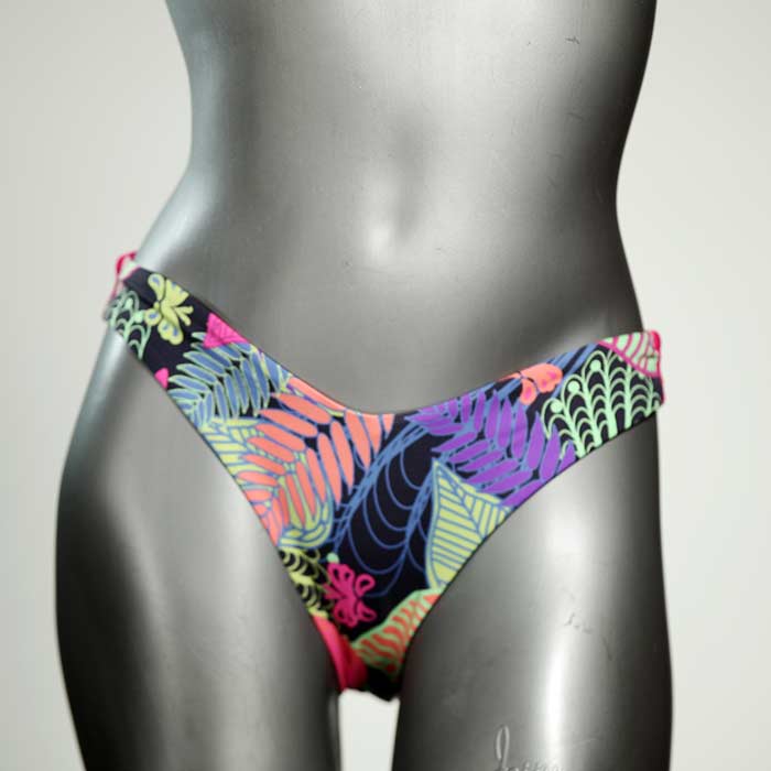 Diese schöne und bequeme Bikini-Hose ist ein echtes Unikat und wurde in unserem Atelier in Berlin für Sie zugeschnitten, entworfen und genäht. Wir erschaffen täglich neue Strandmode-Einzelstücke aus weichen, bunten und lichtechten Lycrastoffen.