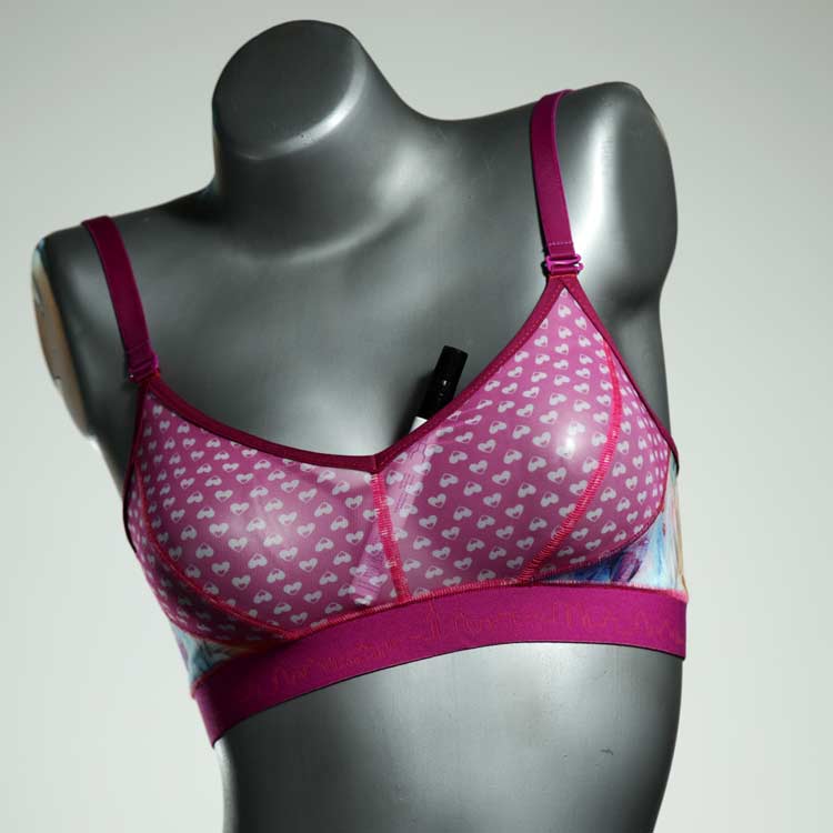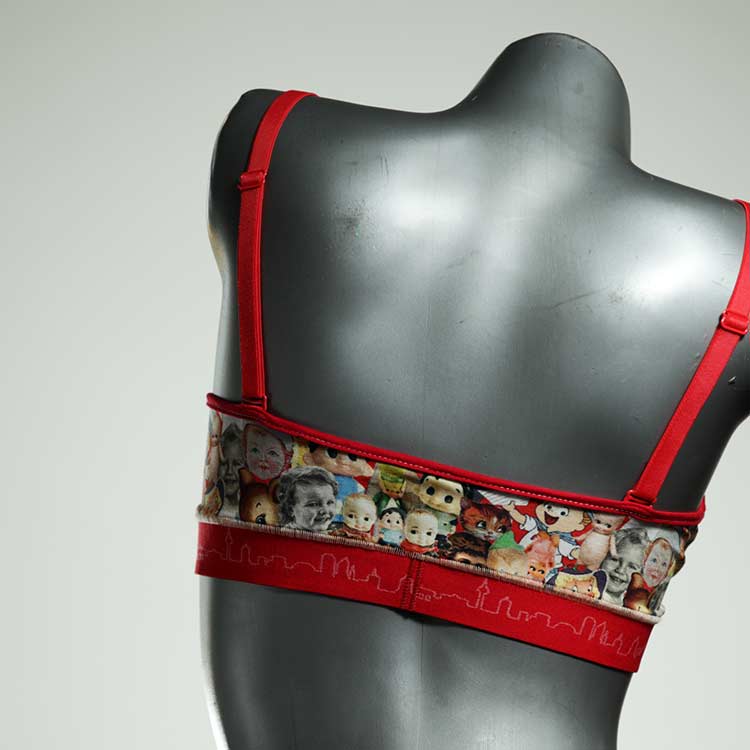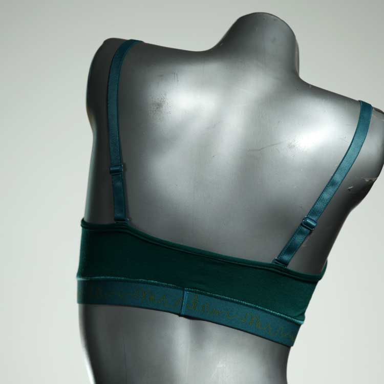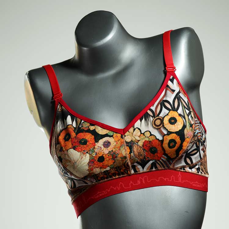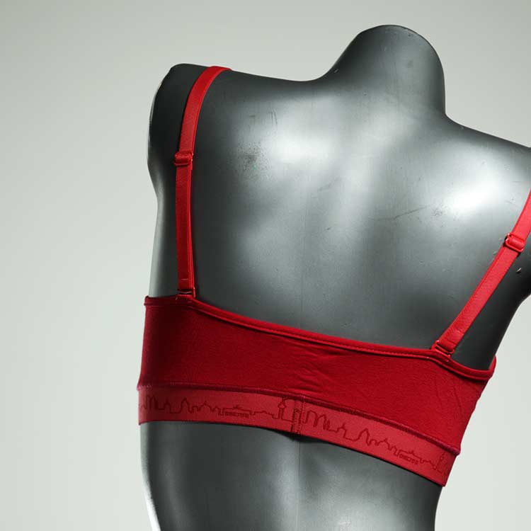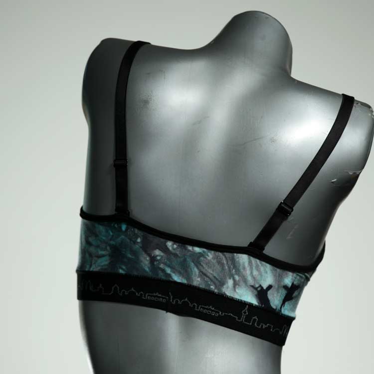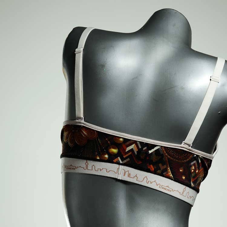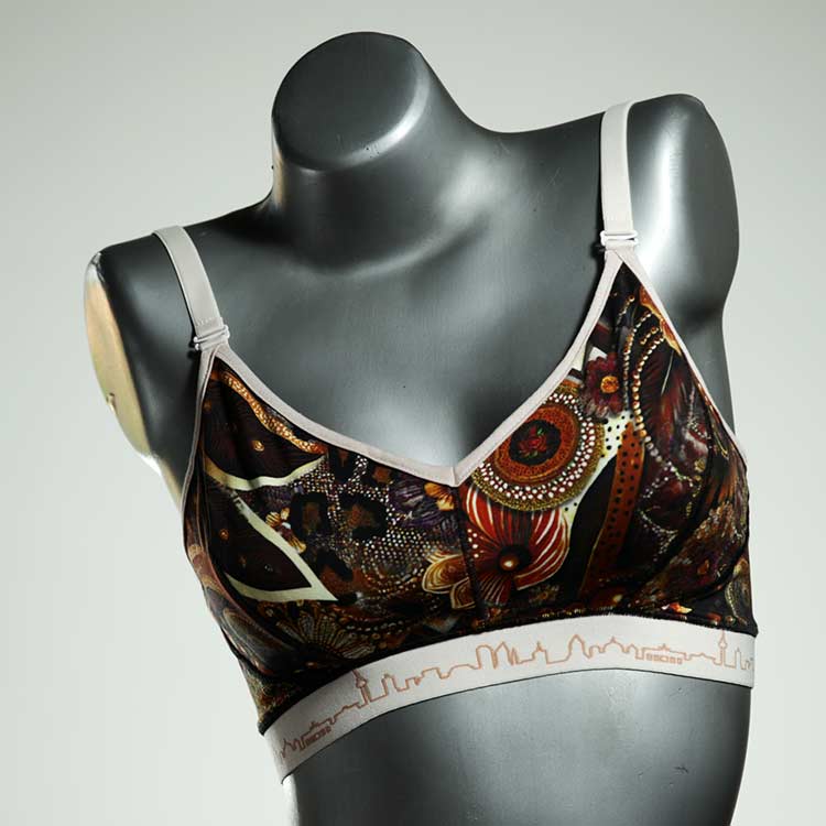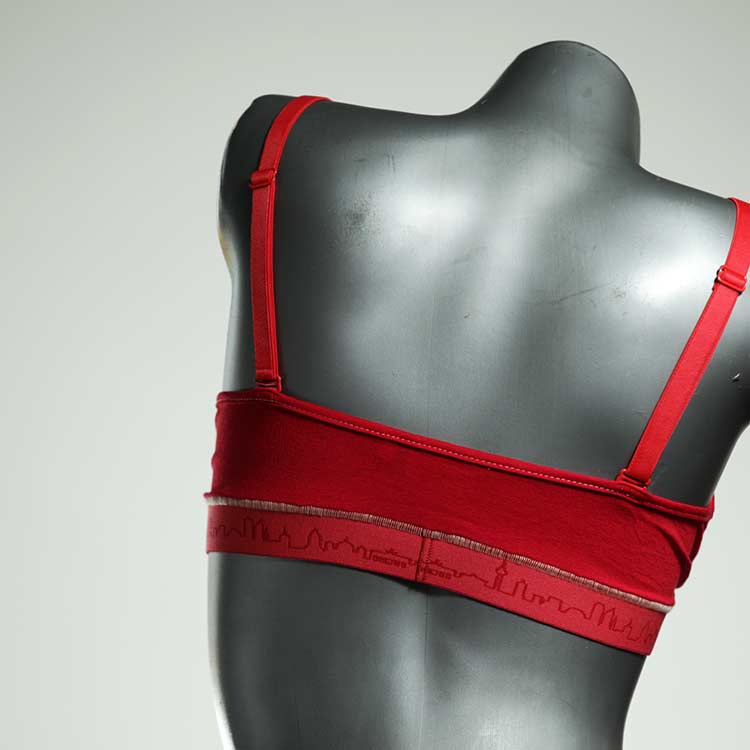 Kuschelig-weiche BHs aus atmungsaktivem Baumwolljersey mit einzigartigen Designs. Echte Einzelstücke, die wir nach ihren Wünschen entworfen haben. Bügellos, ohne Kissen und Verschluss, sind sie angenehm zu tragen und passen sich so perfekt an ihren Körper an. Die Träger sind 16mm breit, die Körbchen sind doppellagig und innen aus Biobaumwolle. BHs von Berlin Underwear sind nicht in erster Linie sexy, sondern sollen bequem sein. Sie eignen sich auch als Still-BHs.