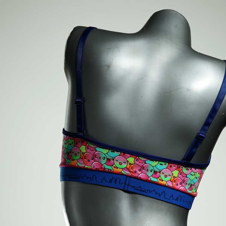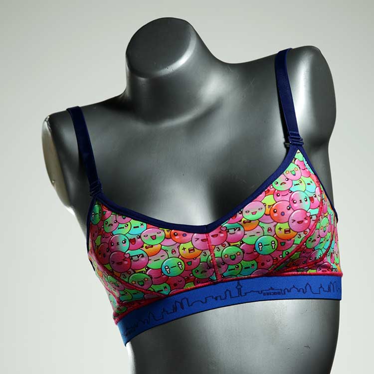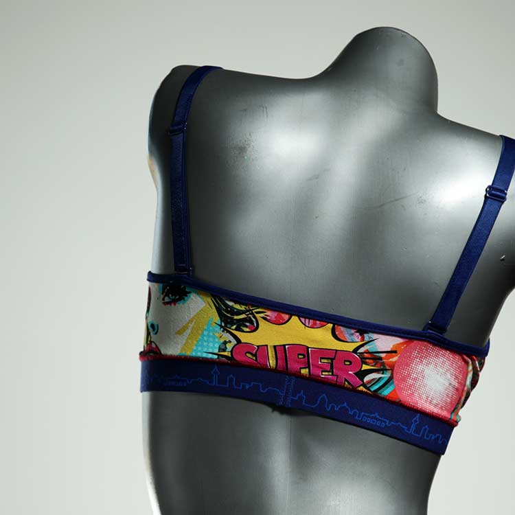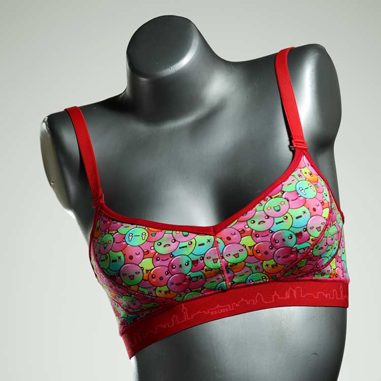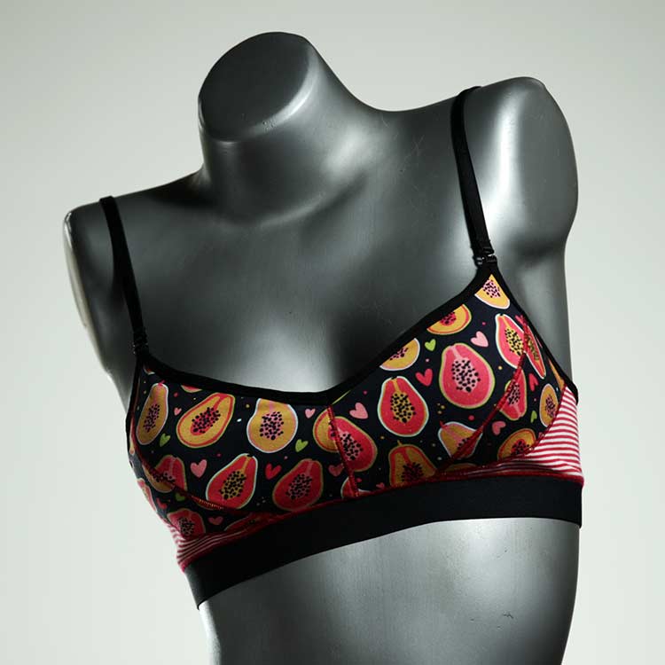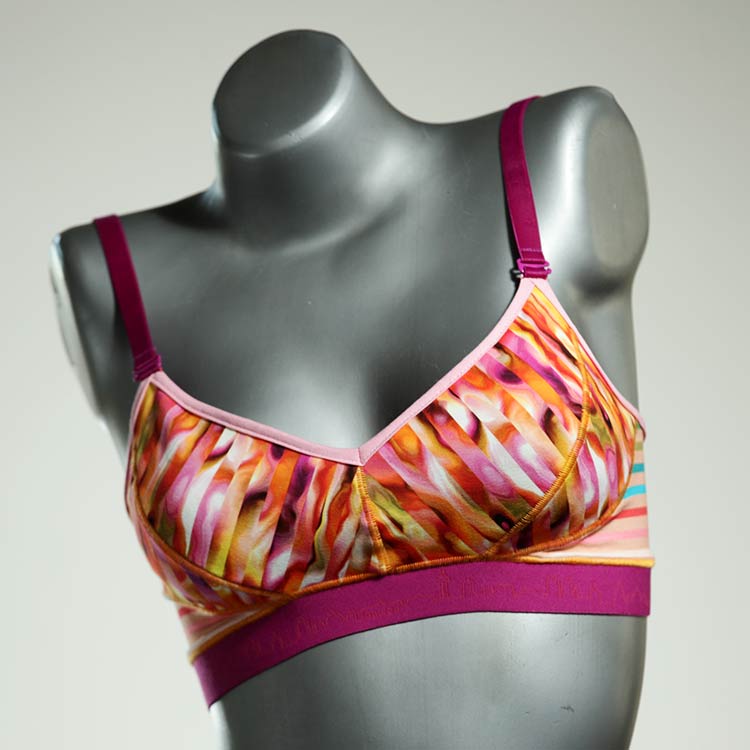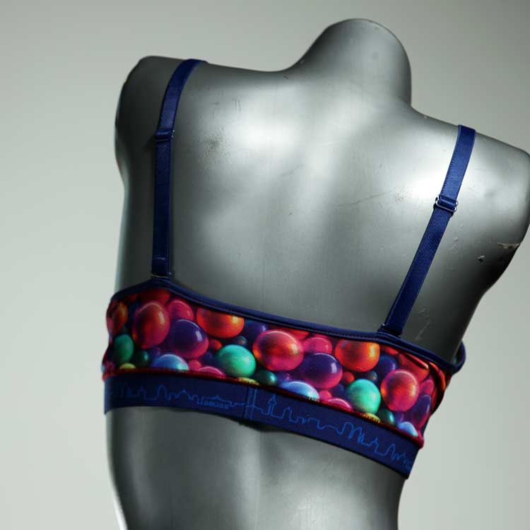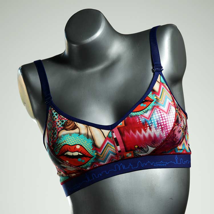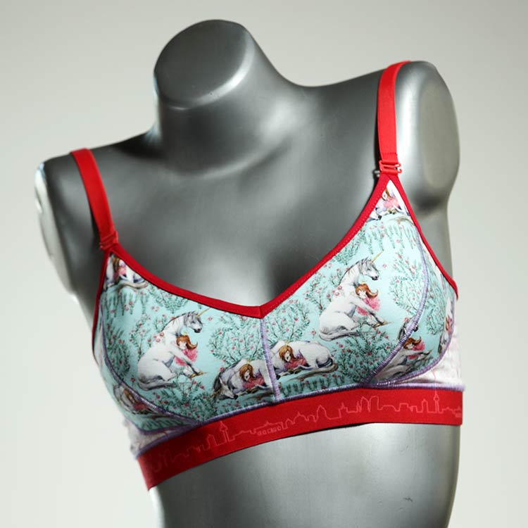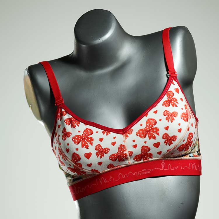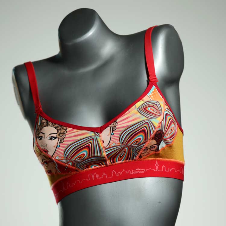 Diesen schönen und bequemen BH aus Baumwolle gibt es nur einmal und er wurde in unserem Atelier in Berlin für Sie zugeschnitten, entworfen und genäht. Wir erschaffen täglich neue Unterwäsche-Einzelstücke aus weichen kunterbunten Baumwoll-Jerseys.