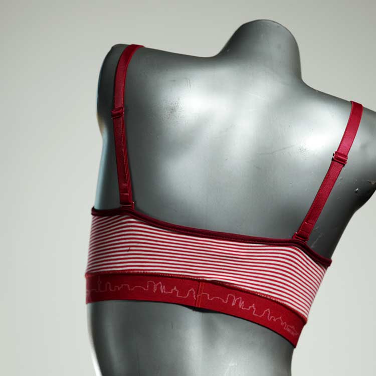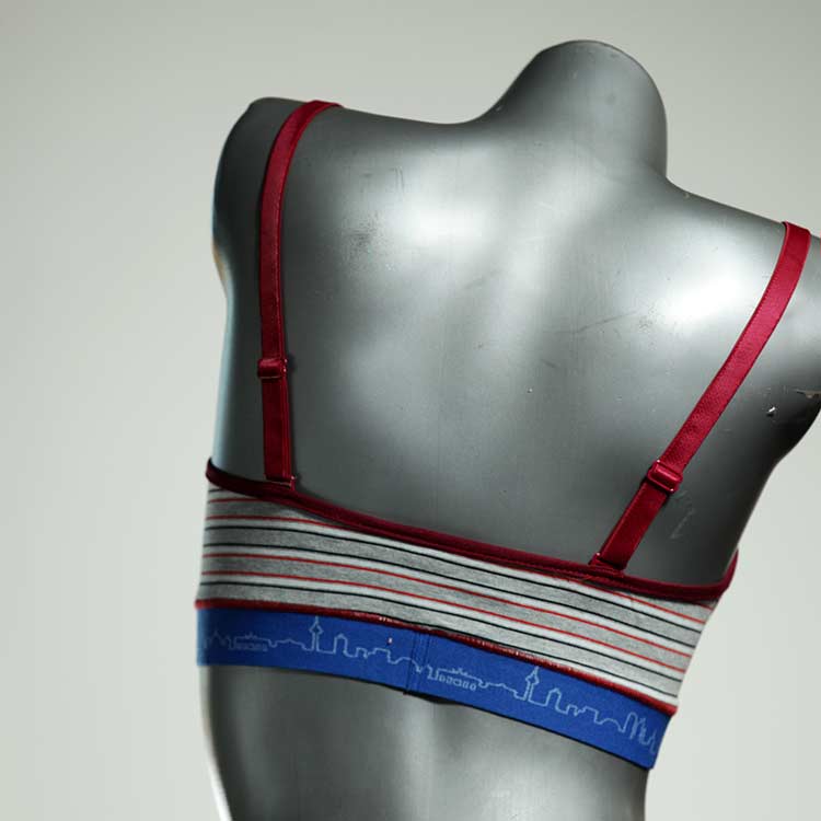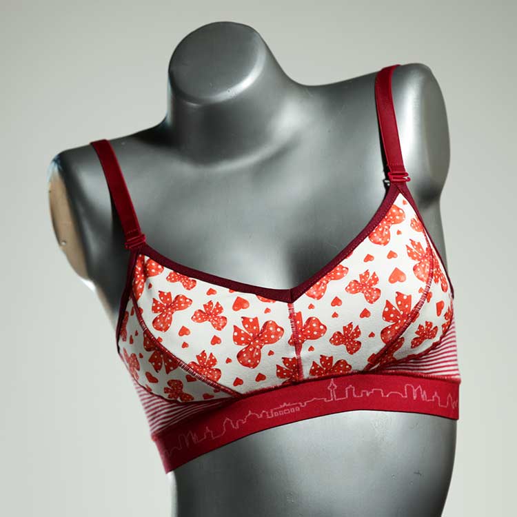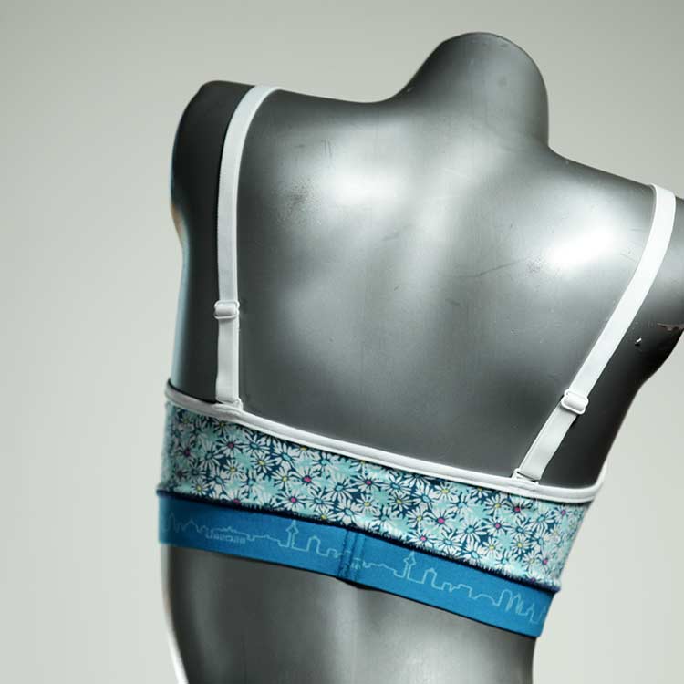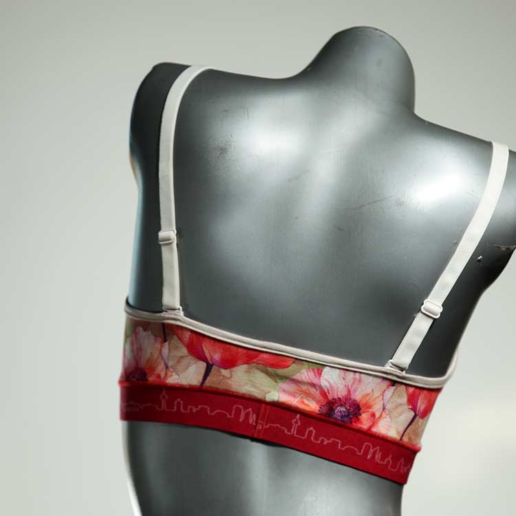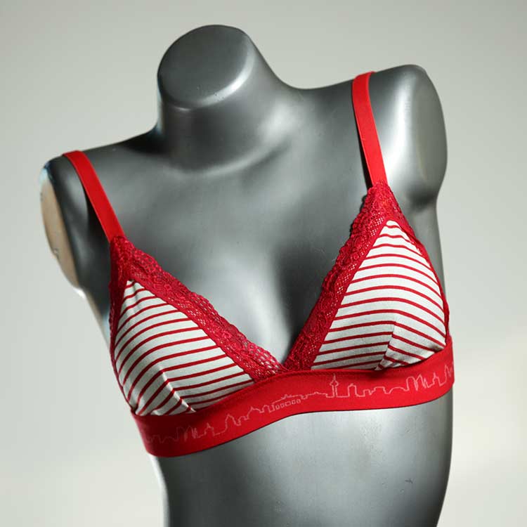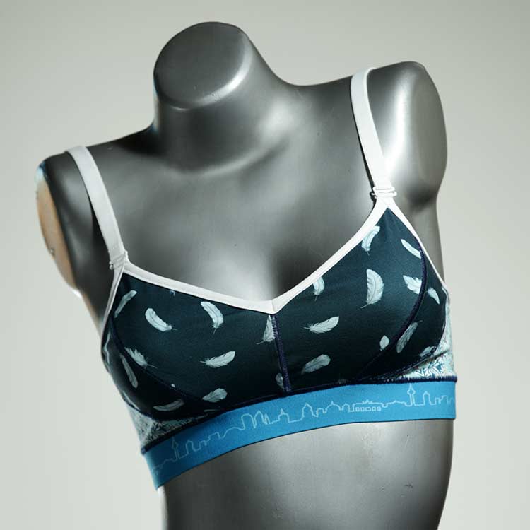 Kuschelig-weiche BHs aus atmungsaktivem Baumwolljersey mit einzigartigen Designs. Echte Einzelstücke, die wir nach ihren Wünschen entworfen haben. Bügellos, ohne Kissen und Verschluss, sind sie angenehm zu tragen und passen sich so perfekt an ihren Körper an. Die Träger sind 16mm breit, die Körbchen sind doppellagig und innen aus Biobaumwolle. BHs von Berlin Underwear sind nicht in erster Linie sexy, sondern sollen bequem sein. Sie eignen sich auch als Still-BHs.