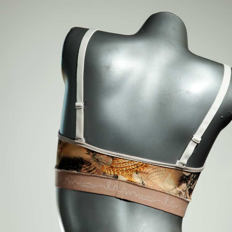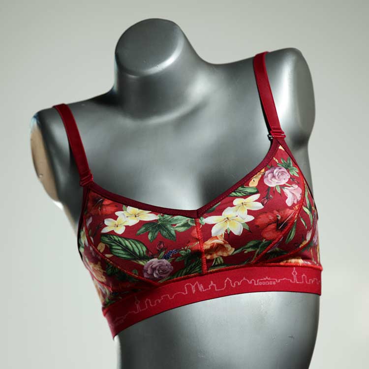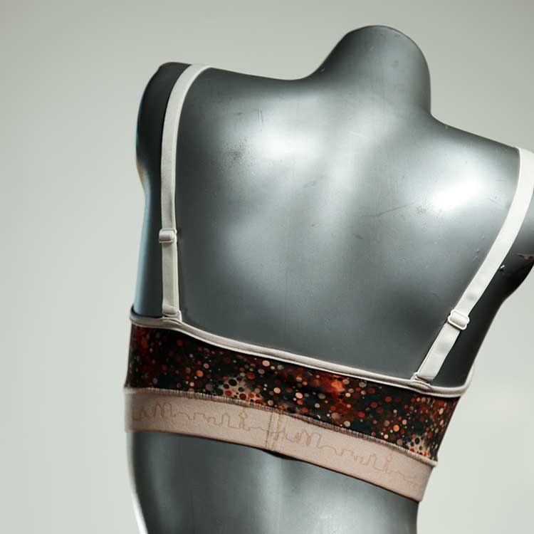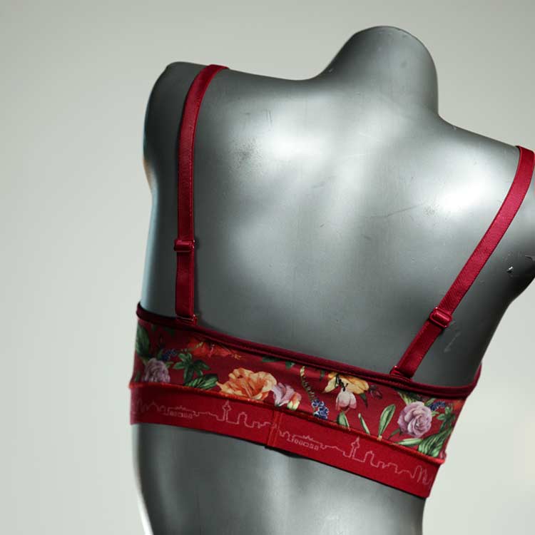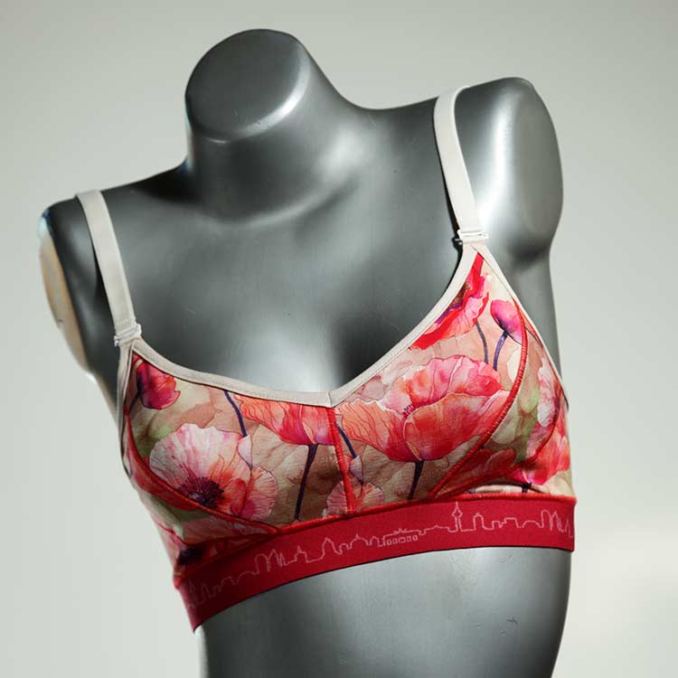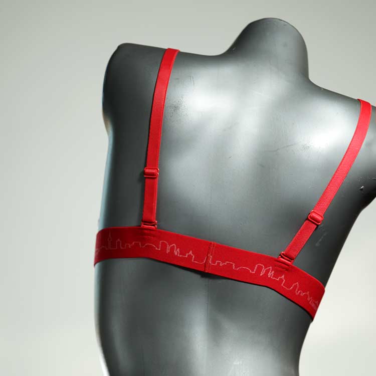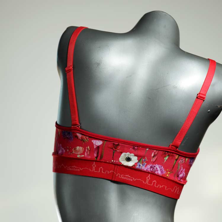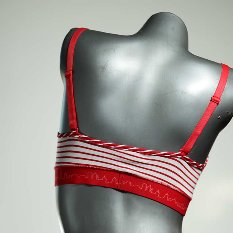 Kuschelig-weiche BHs aus atmungsaktivem Baumwolljersey mit einzigartigen Designs. Echte Einzelstücke, die wir nach ihren Wünschen entworfen haben. Bügellos, ohne Kissen und Verschluss, sind sie angenehm zu tragen und passen sich so perfekt an ihren Körper an. Die Träger sind 16mm breit, die Körbchen sind doppellagig und innen aus Biobaumwolle. BHs von Berlin Underwear sind nicht in erster Linie sexy, sondern sollen bequem sein. Sie eignen sich auch als Still-BHs.