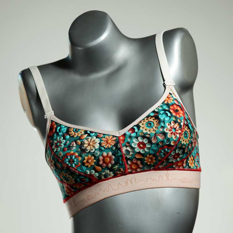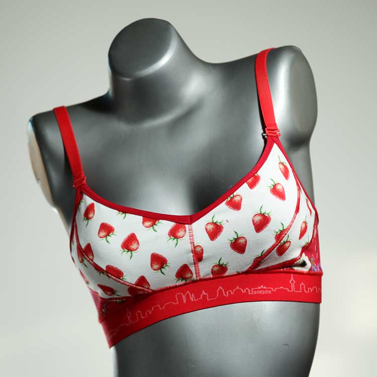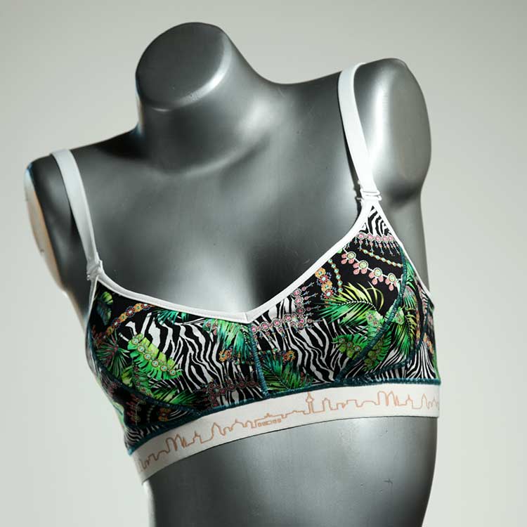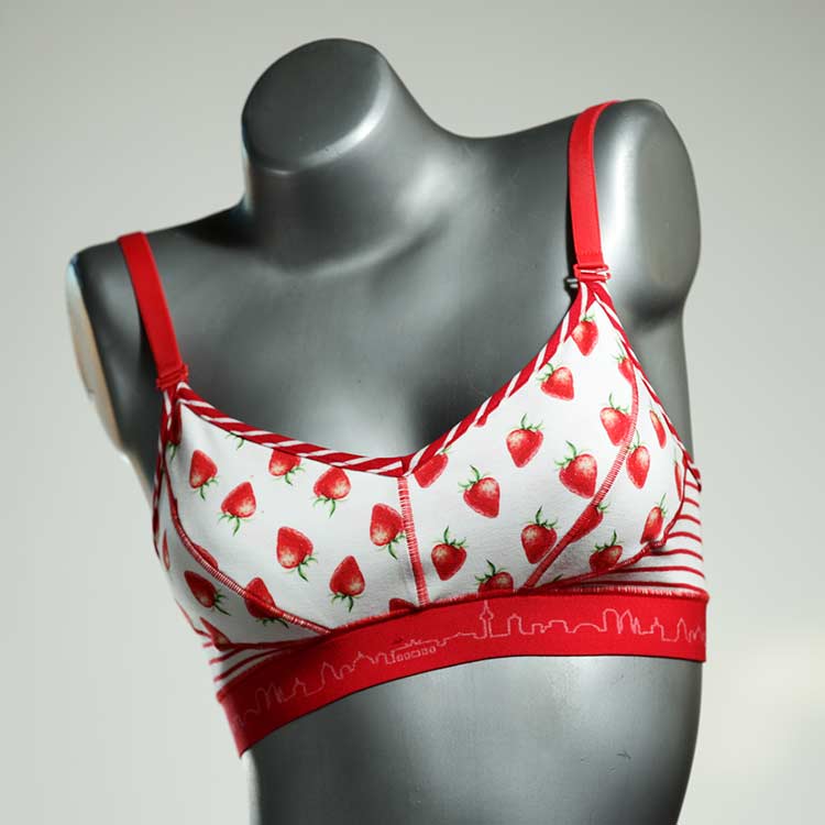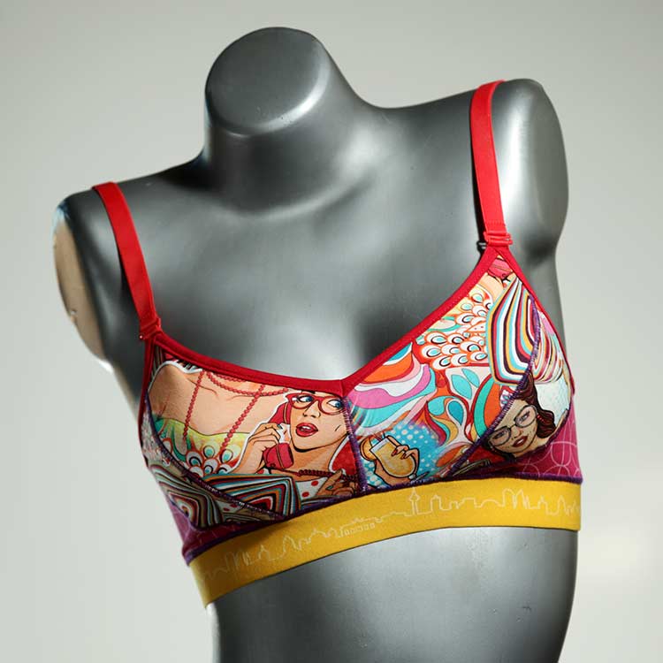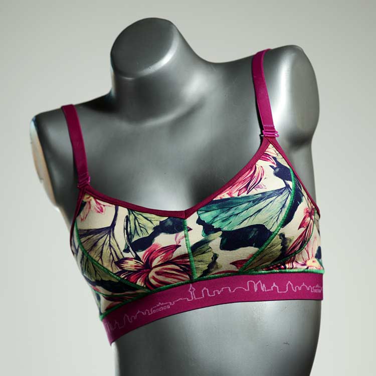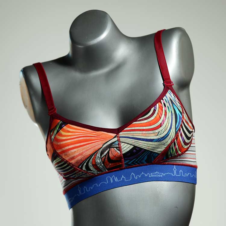 Diesen schönen und bequemen BH aus Baumwolle gibt es nur einmal und er wurde in unserem Atelier in Berlin für Sie zugeschnitten, entworfen und genäht. Wir erschaffen täglich neue Unterwäsche-Einzelstücke aus weichen kunterbunten Baumwoll-Jerseys.