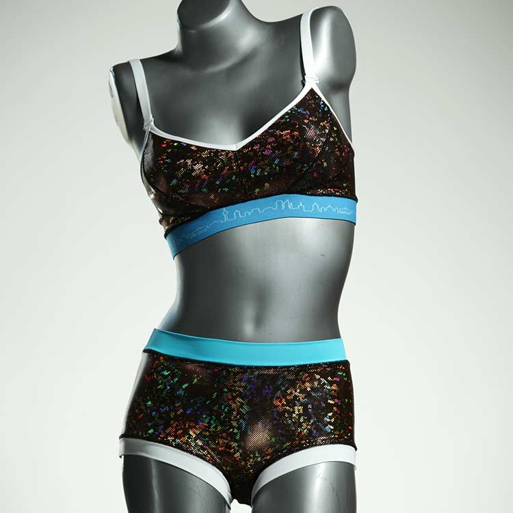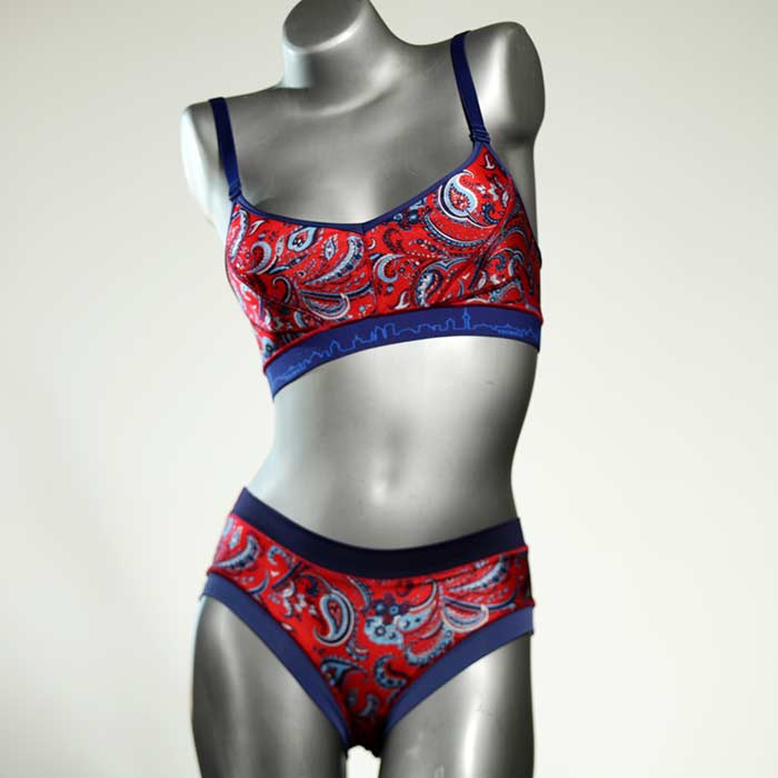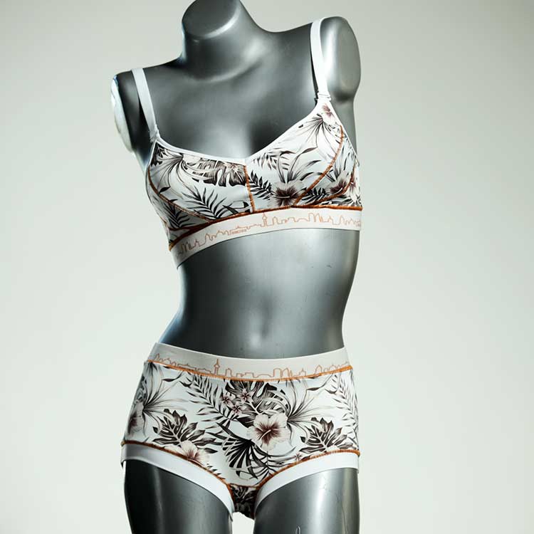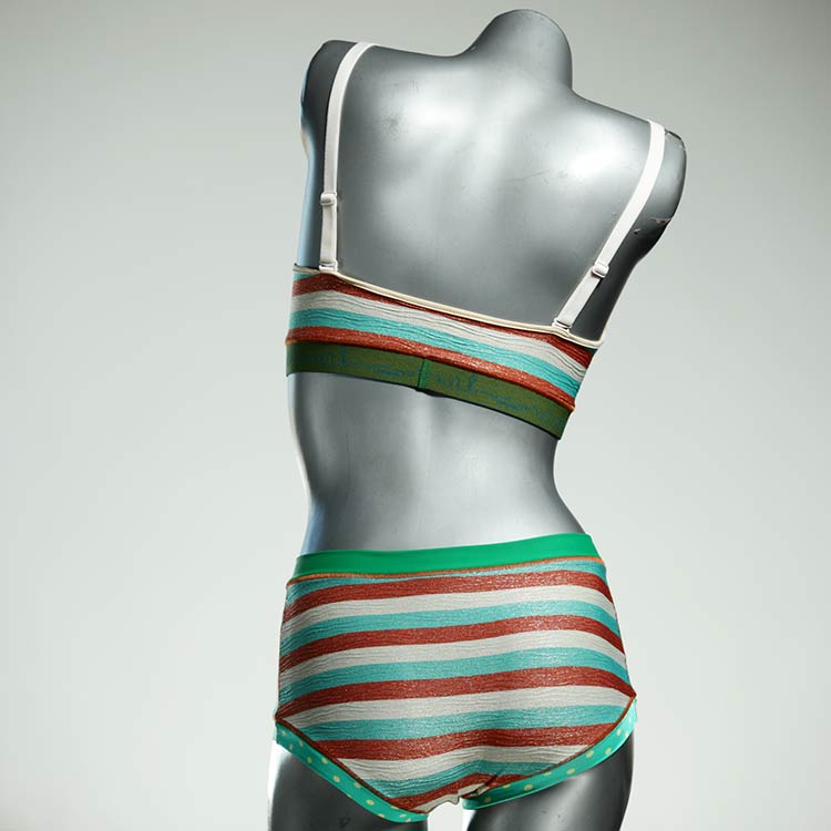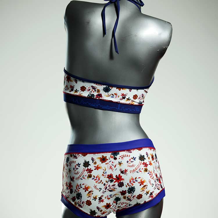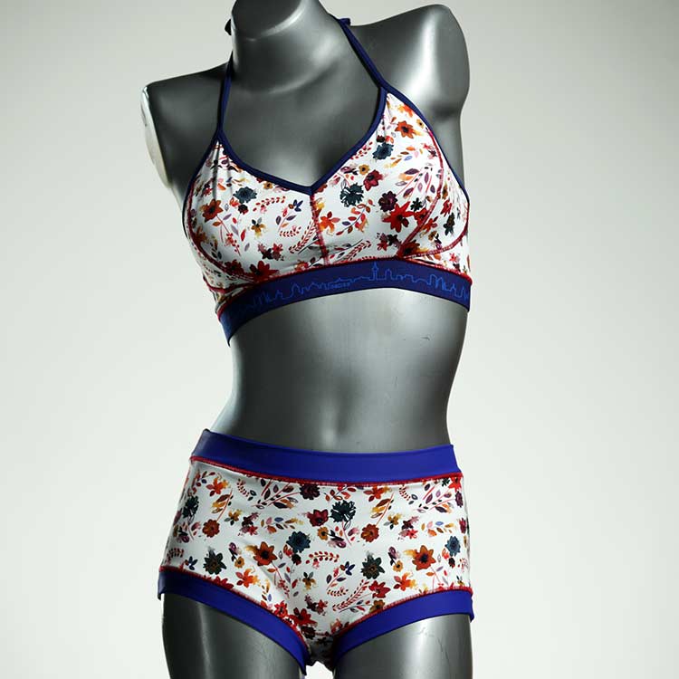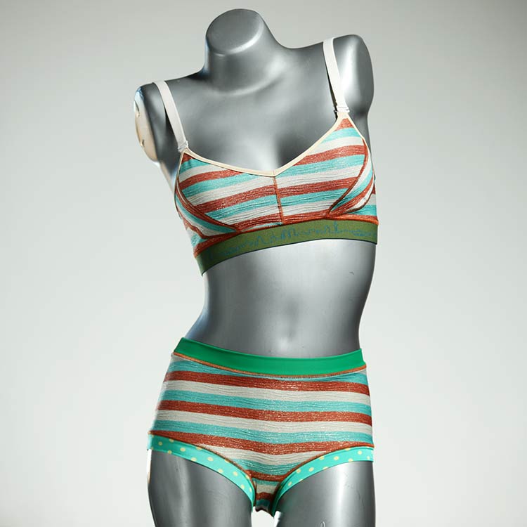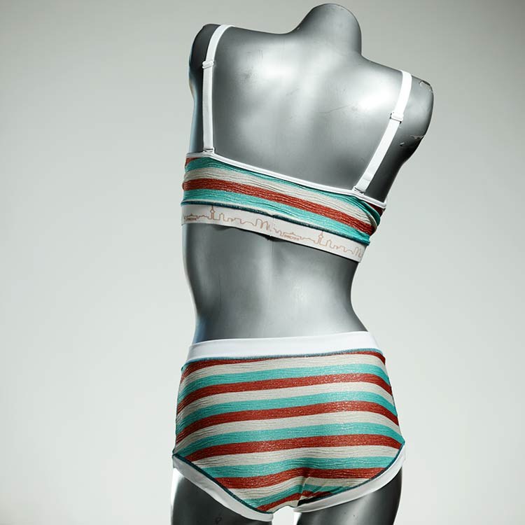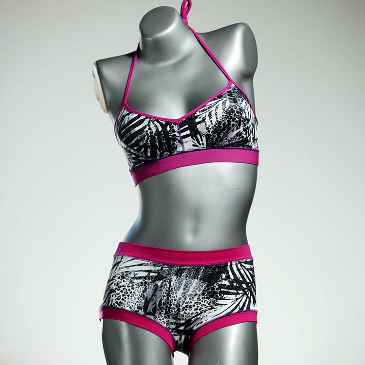 Diese schöne und bequeme Bikini-Set ist ein echtes Unikat und wurde in unserem Atelier in Berlin für Sie zugeschnitten, entworfen und genäht. Wir erschaffen täglich neue Strandmode-Einzelstücke aus weichen, bunten und lichtechten Lycrastoffen.