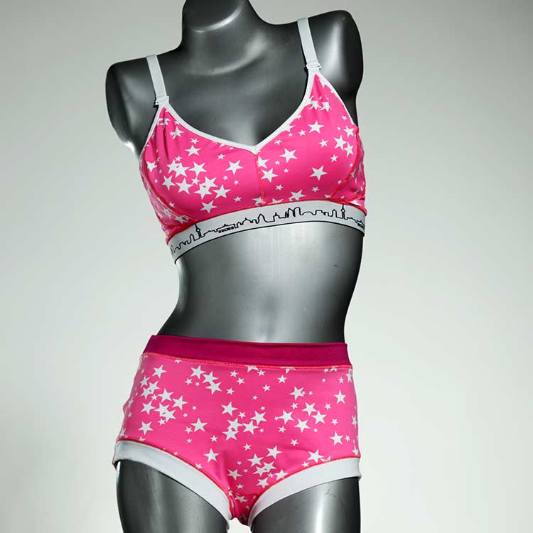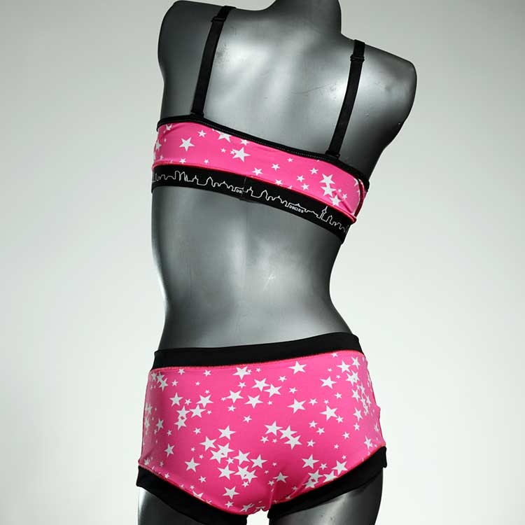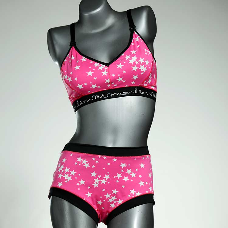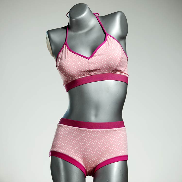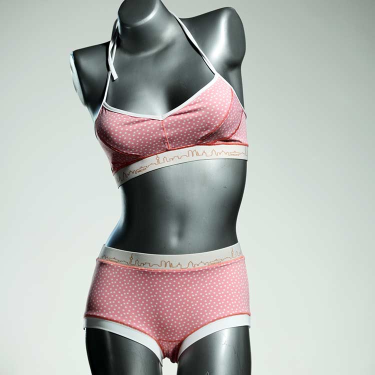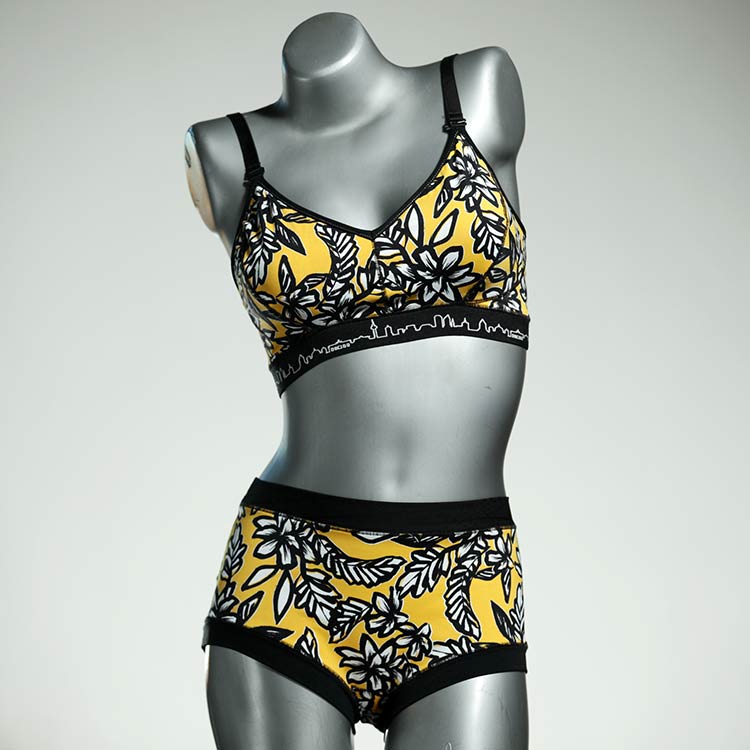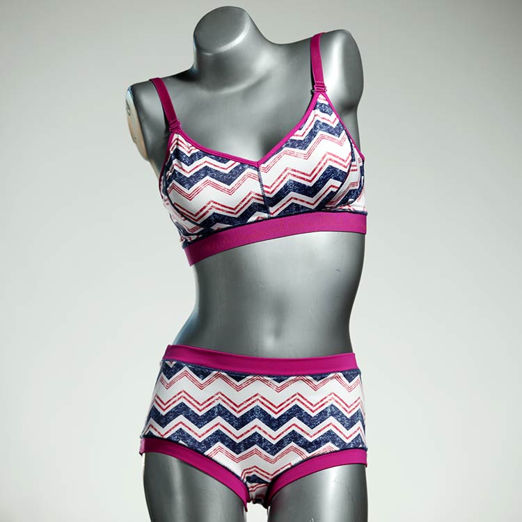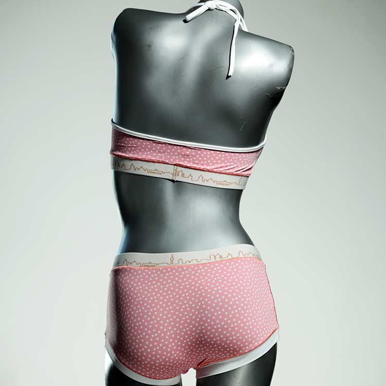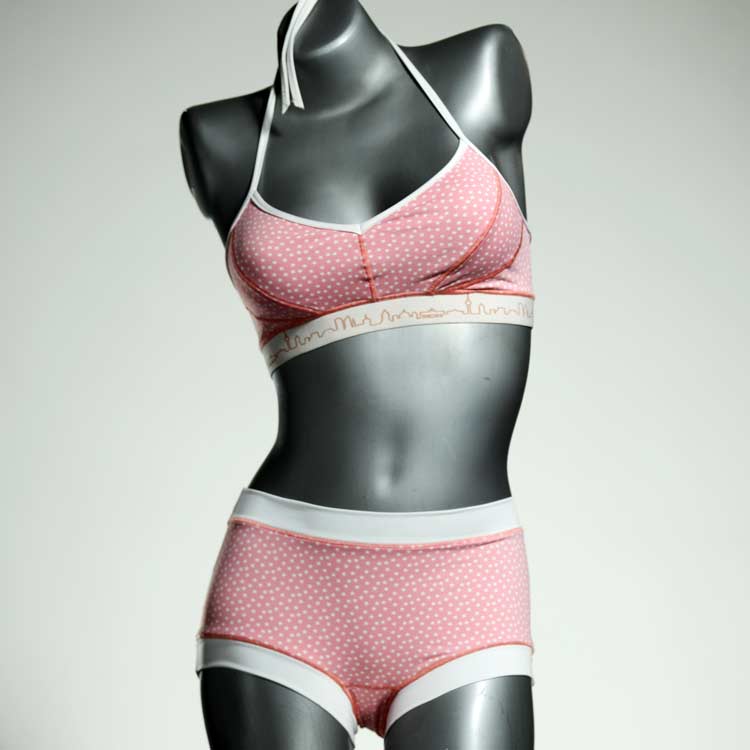 Diese schöne und bequeme Bikini-Set ist ein echtes Unikat und wurde in unserem Atelier in Berlin für Sie zugeschnitten, entworfen und genäht. Wir erschaffen täglich neue Strandmode-Einzelstücke aus weichen, bunten und lichtechten Lycrastoffen.