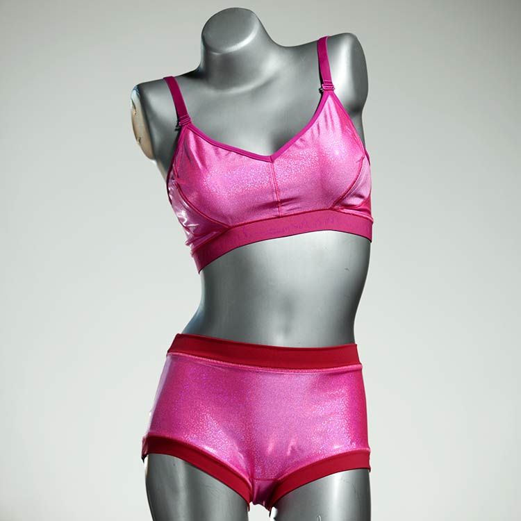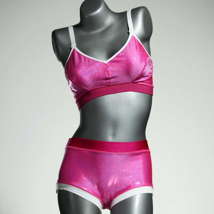 Die Sport-Bikinisets sind genau wie die Hotpants und BHs nicht zu knapp geschnitten, sitzen genauso gut und verrutschen nicht. Großartig zum Schwimmen und Schnorcheln. Das Material ist hochwertiges und lichtechtes Lycra aus einer kleinen Weberei bei Barcelona. Die Träger sind 16mm breit und verstellbar.