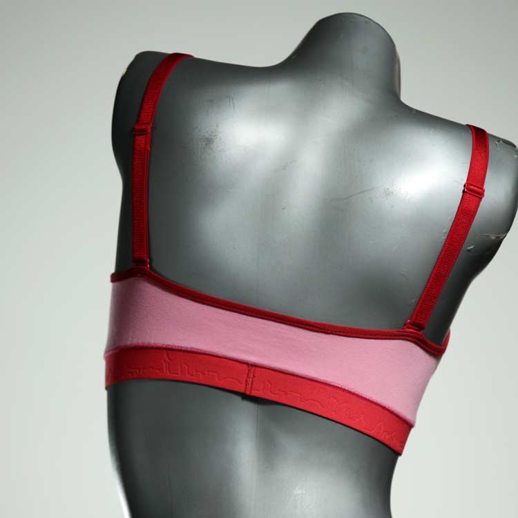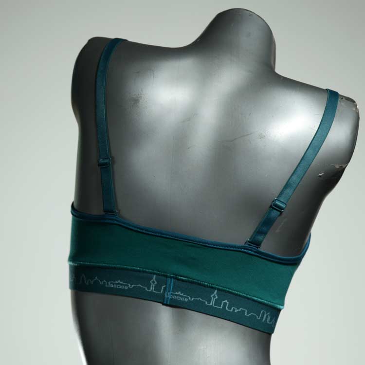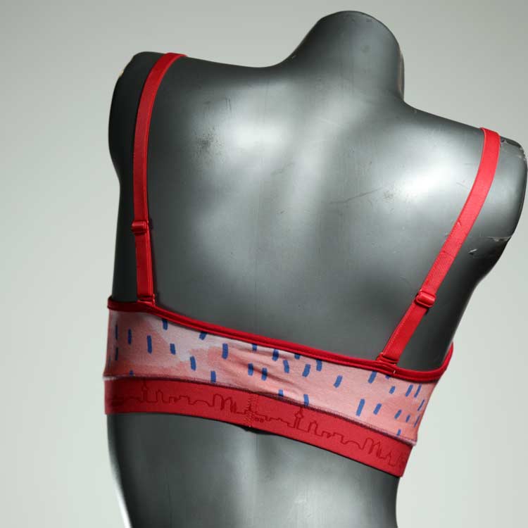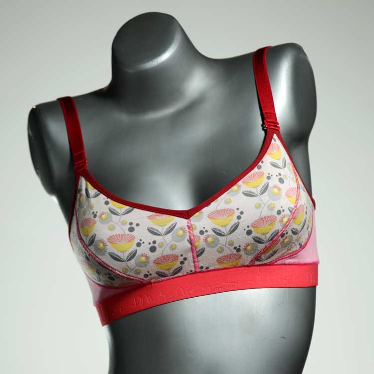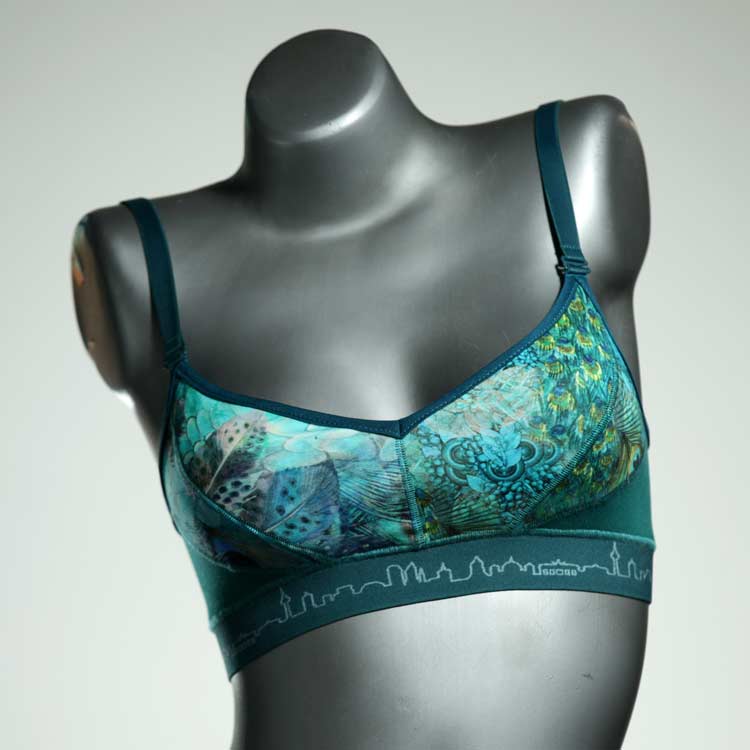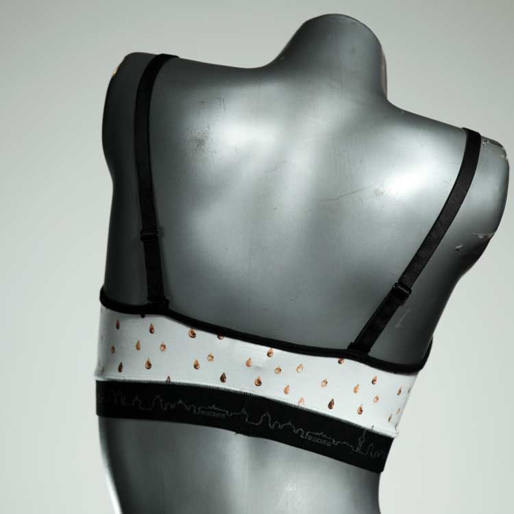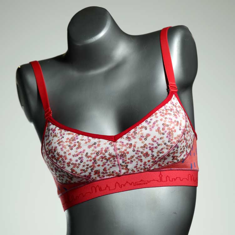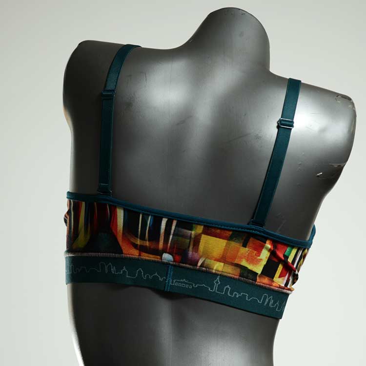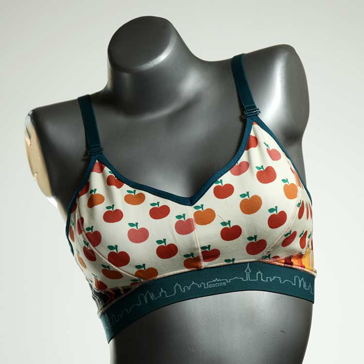 Diesen schönen und bequemen BH aus GOTS-zertifizierter Baumwolle gibt es nur einmal und er wurde in unserem Atelier in Berlin für Sie zugeschnitten, entworfen und genäht. Wir erschaffen täglich neue Unterwäsche-Einzelstücke aus weichen kunterbunten Baumwoll-Jerseys.