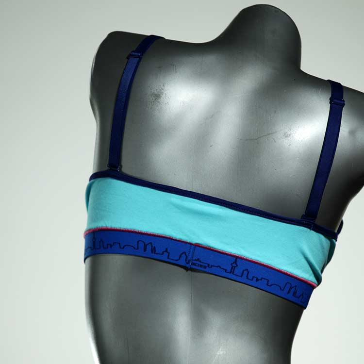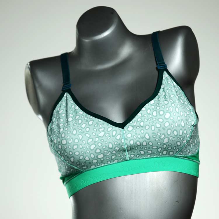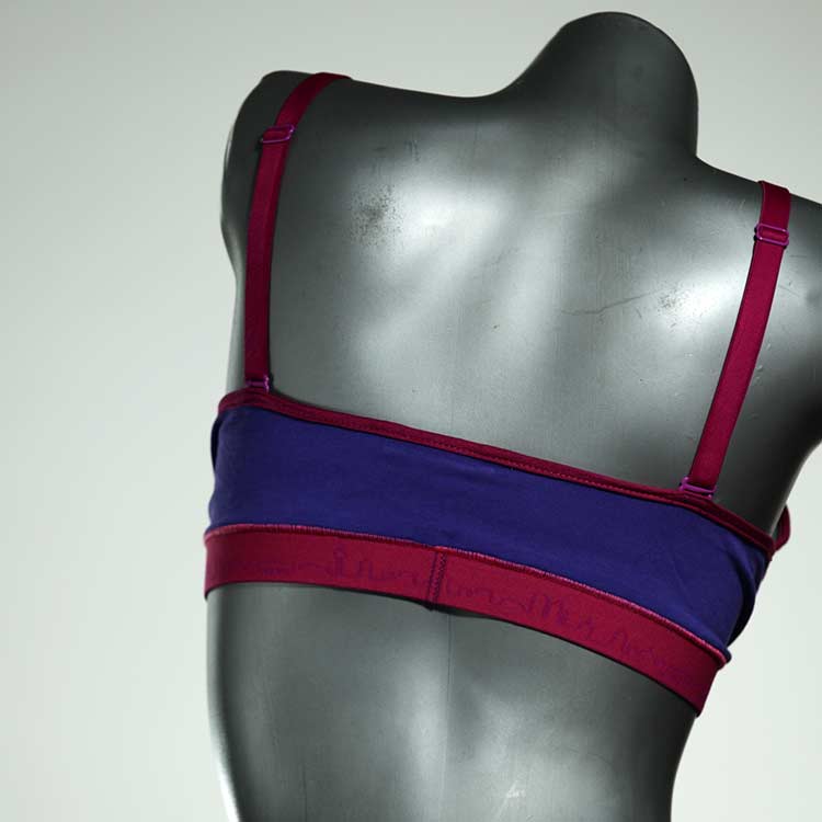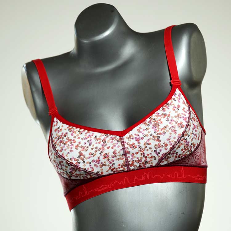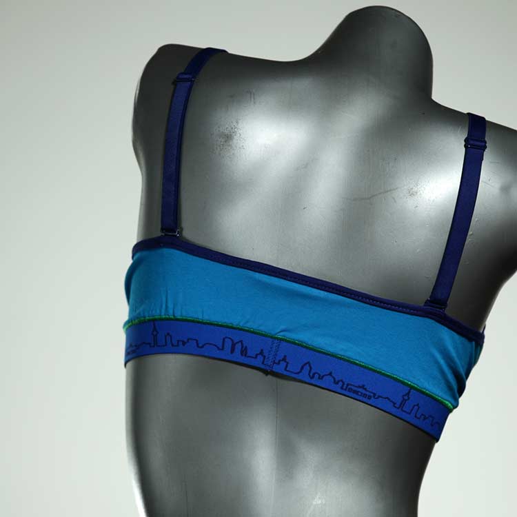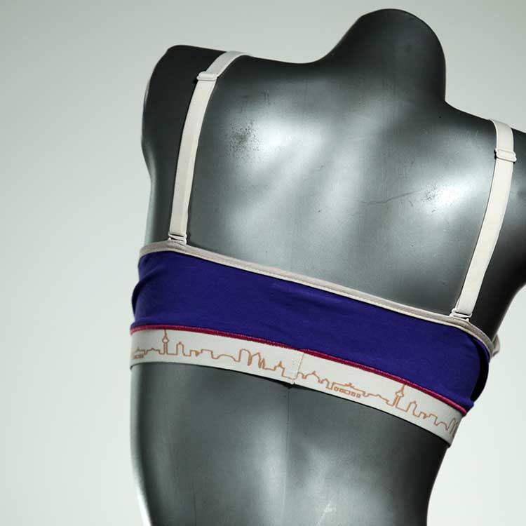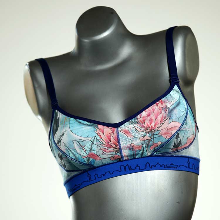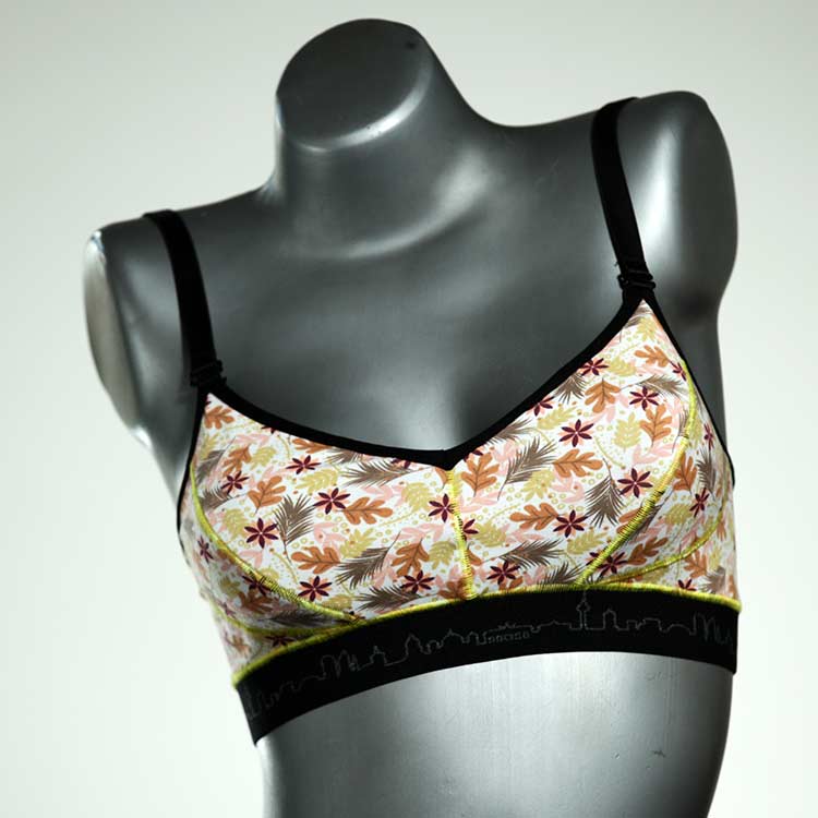 Diesen schönen und bequemen BH aus GOTS-zertifizierter Baumwolle gibt es nur einmal und er wurde in unserem Atelier in Berlin für Sie zugeschnitten, entworfen und genäht. Wir erschaffen täglich neue Unterwäsche-Einzelstücke aus weichen kunterbunten Baumwoll-Jerseys.