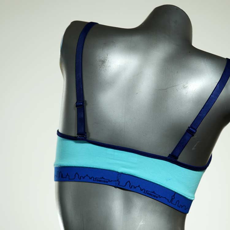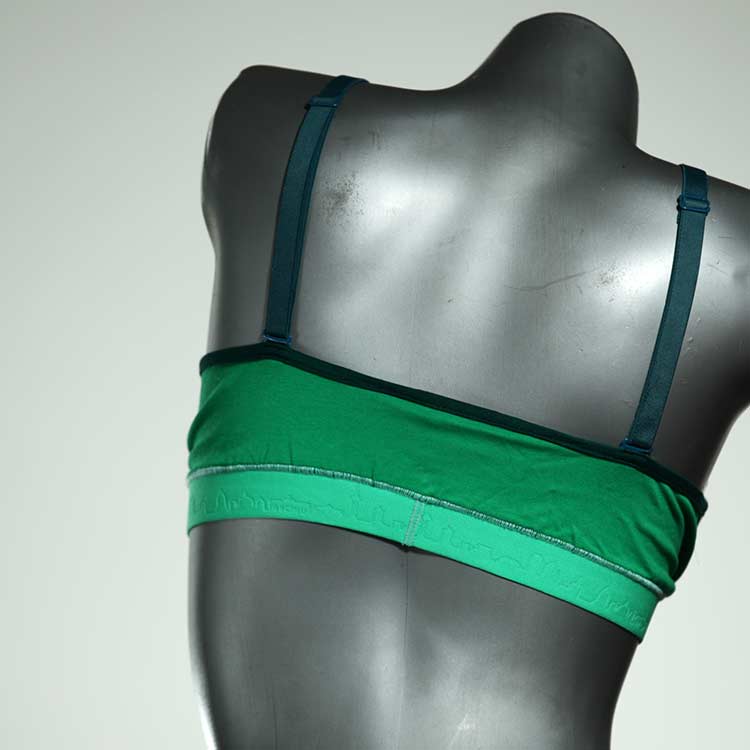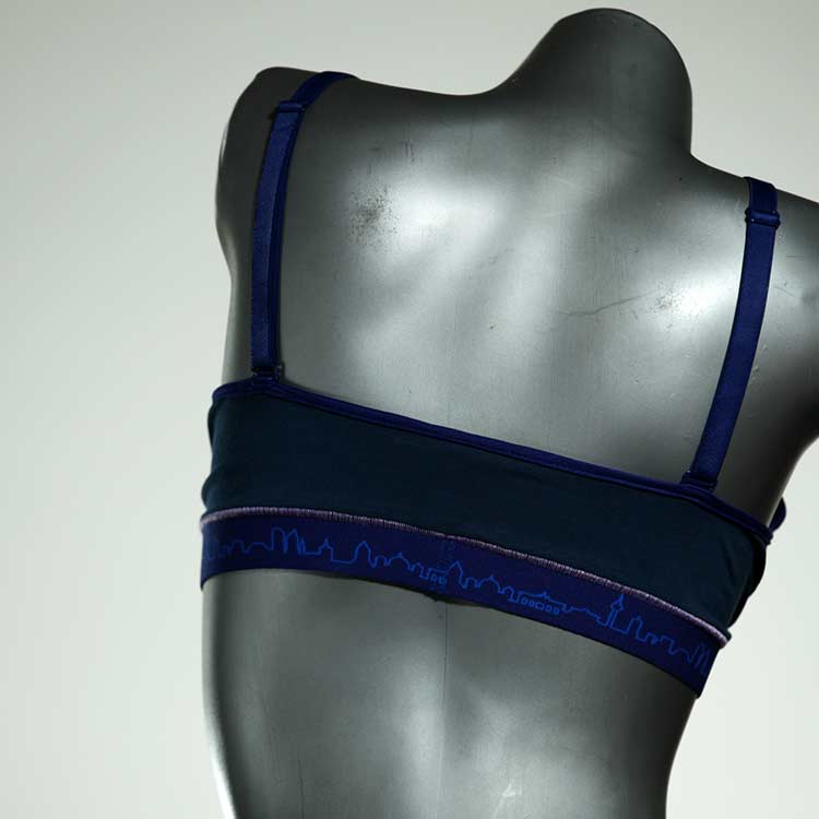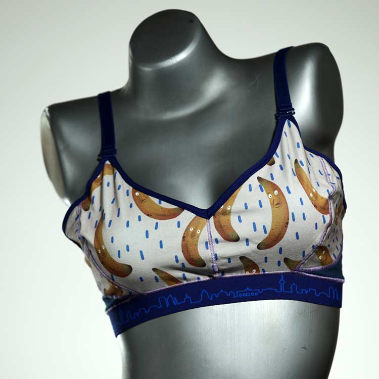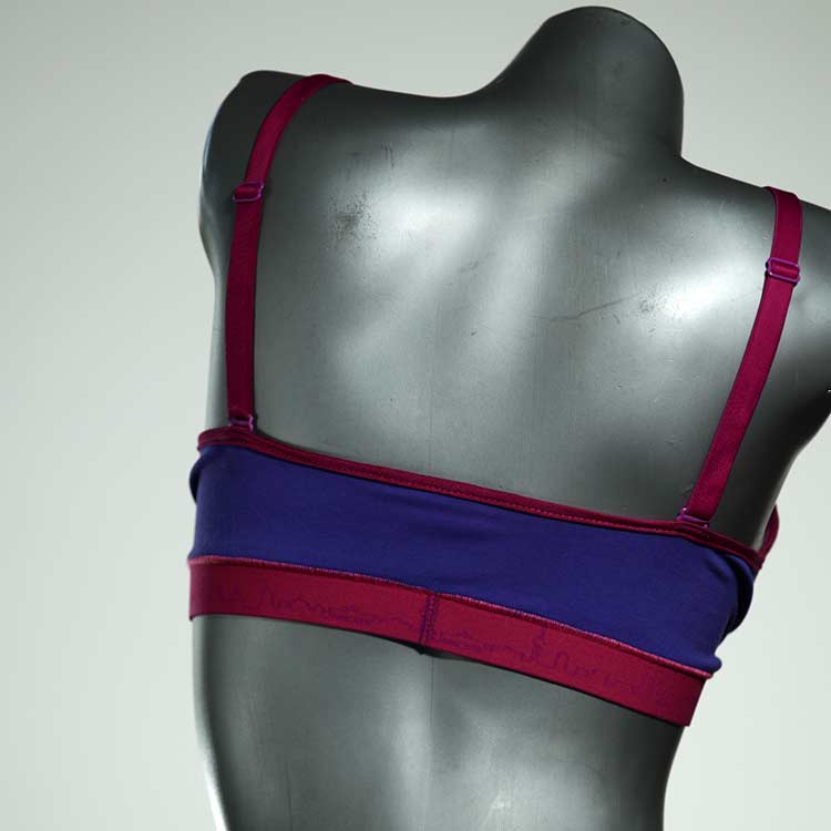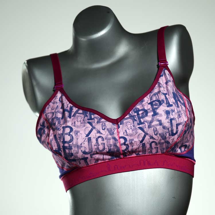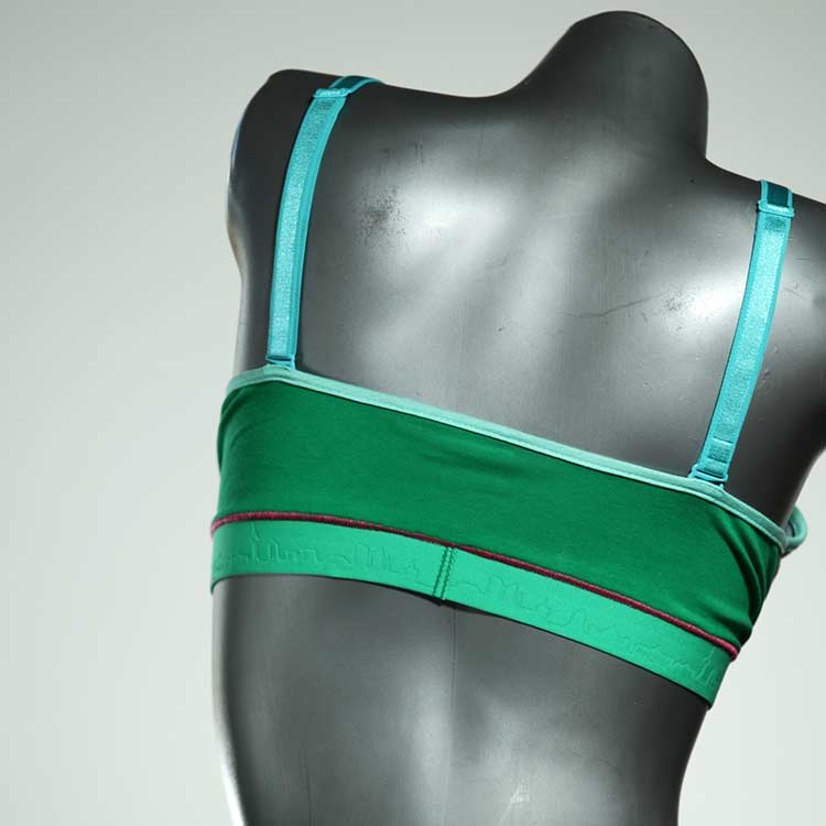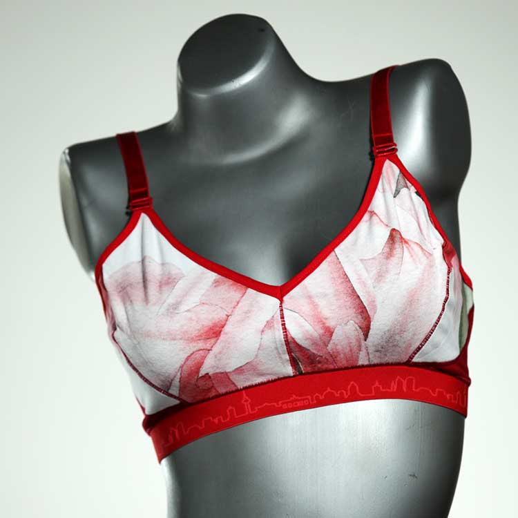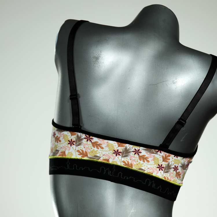 Diesen schönen und bequemen BH aus GOTS-zertifizierter Baumwolle gibt es nur einmal und er wurde in unserem Atelier in Berlin für Sie zugeschnitten, entworfen und genäht. Wir erschaffen täglich neue Unterwäsche-Einzelstücke aus weichen kunterbunten Baumwoll-Jerseys.