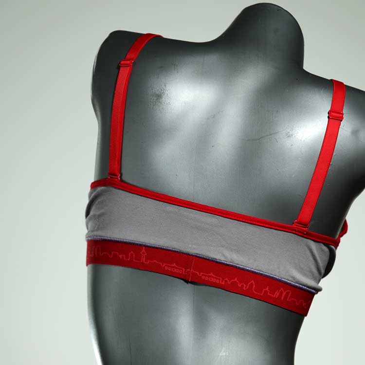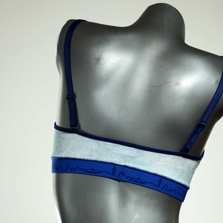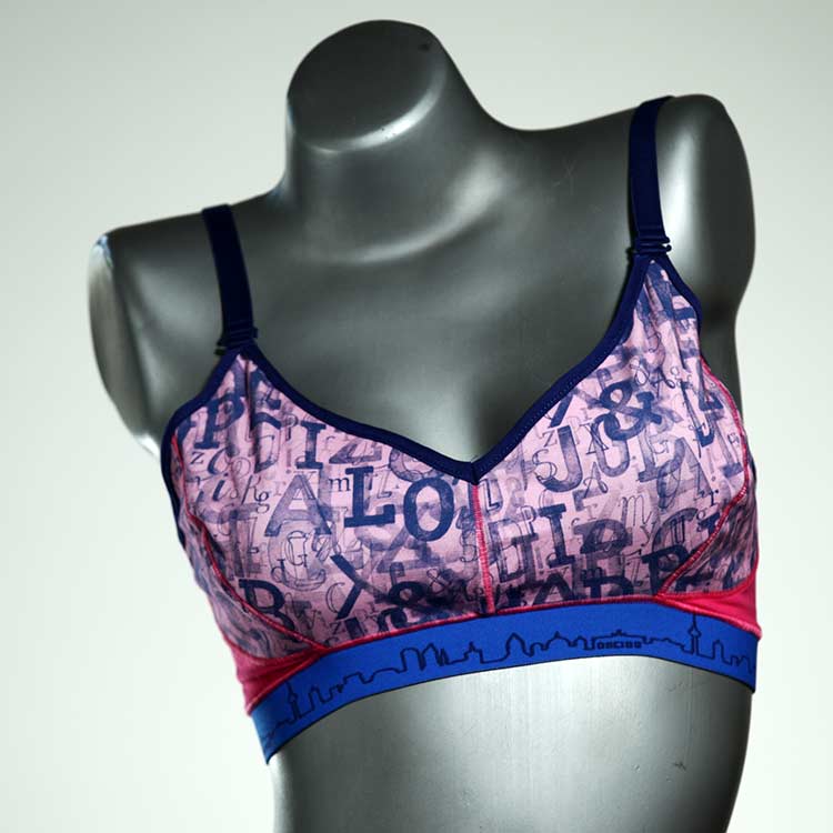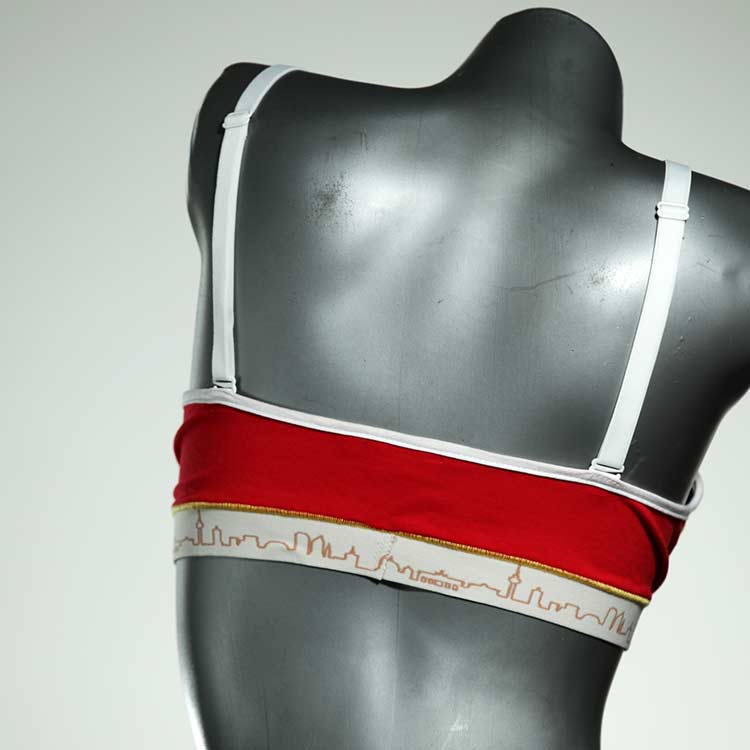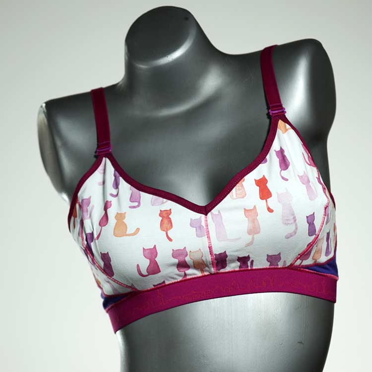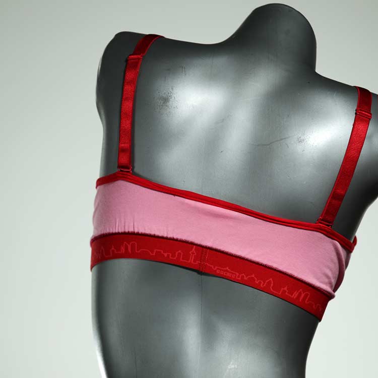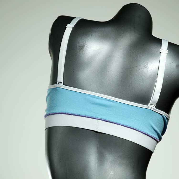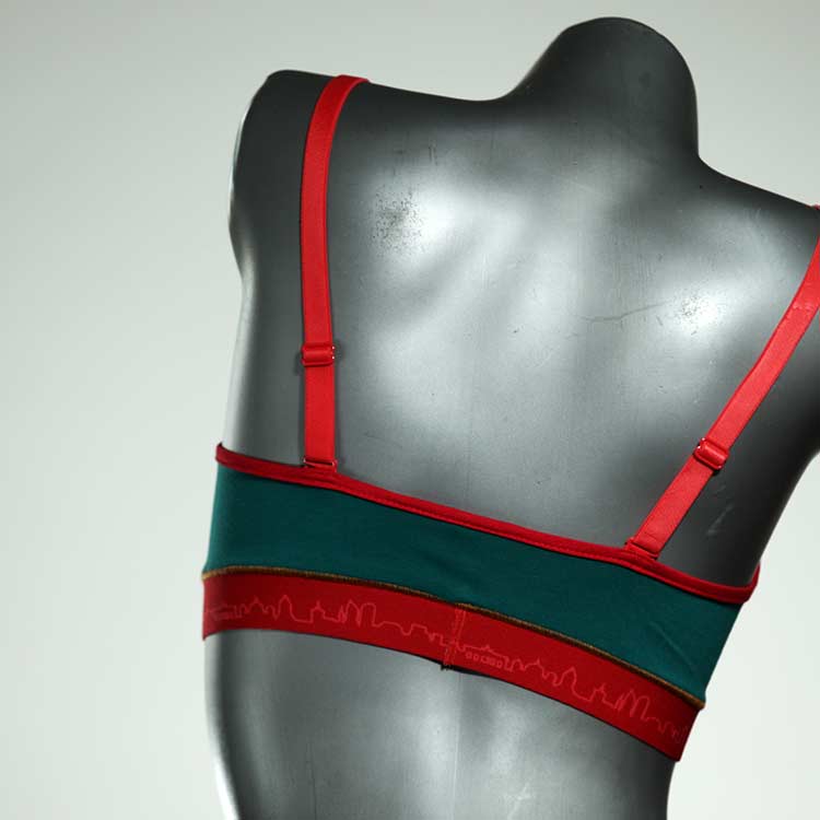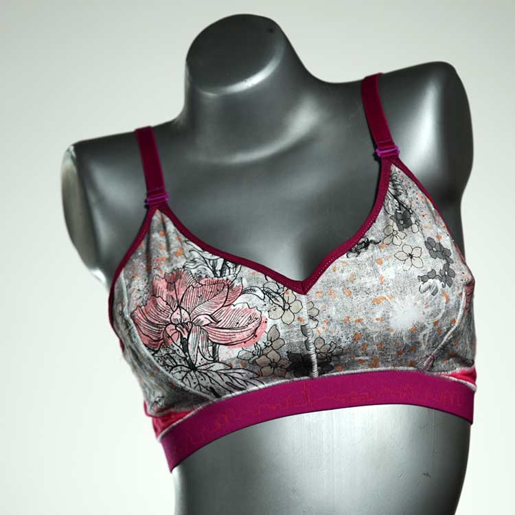 Diesen schönen und bequemen BH aus GOTS-zertifizierter Baumwolle gibt es nur einmal und er wurde in unserem Atelier in Berlin für Sie zugeschnitten, entworfen und genäht. Wir erschaffen täglich neue Unterwäsche-Einzelstücke aus weichen kunterbunten Baumwoll-Jerseys.