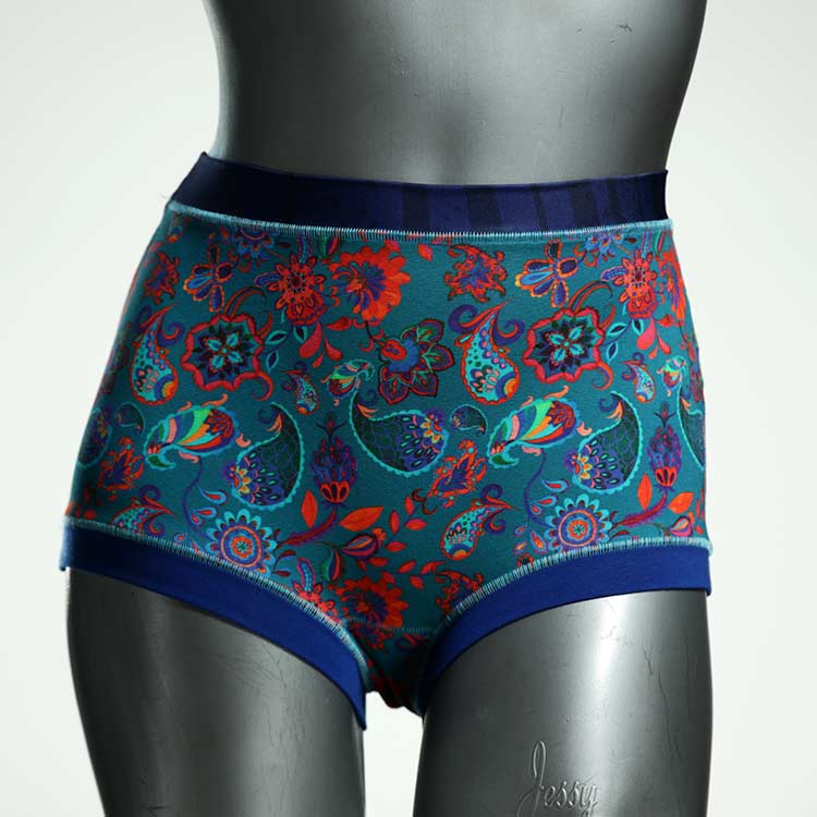Diese schöne und bequeme Highwaist aus Biobaumwolle gibt es nur einmal und sie wurde in unserem Atelier in Berlin für Sie zugeschnitten, entworfen und genäht. Wir erschaffen täglich neue Unterwäsche-Einzelstücke aus weichen kunterbunten Baumwoll-Jerseys.