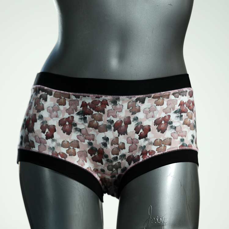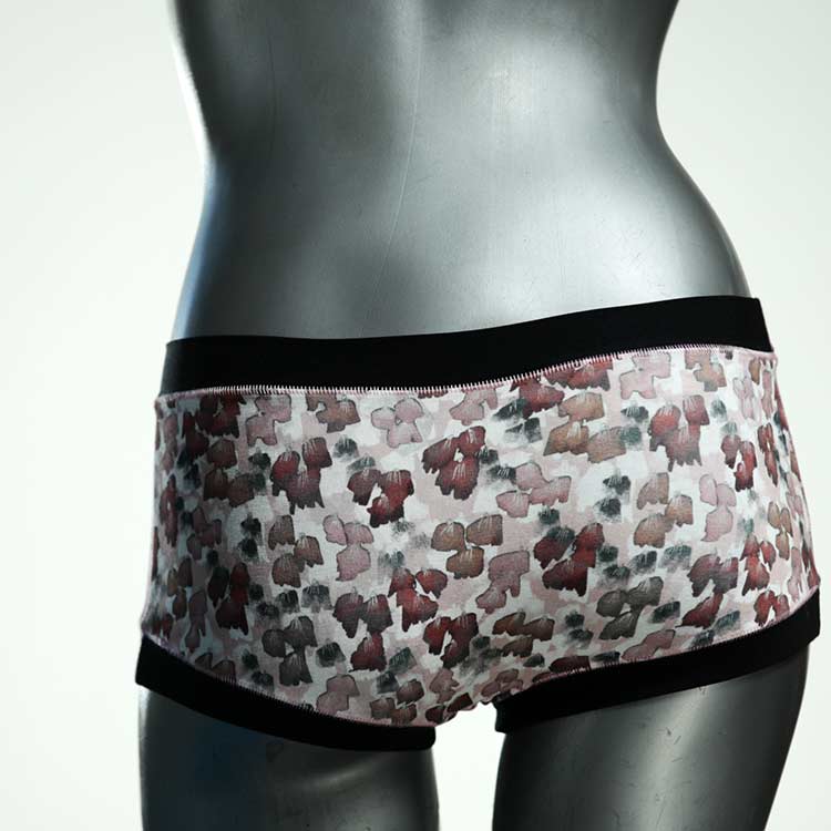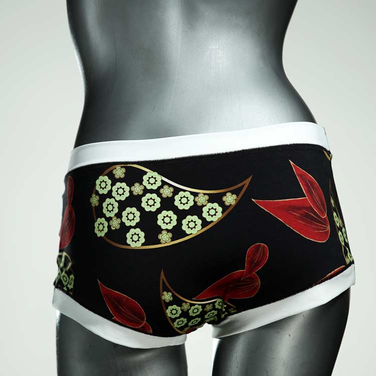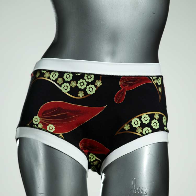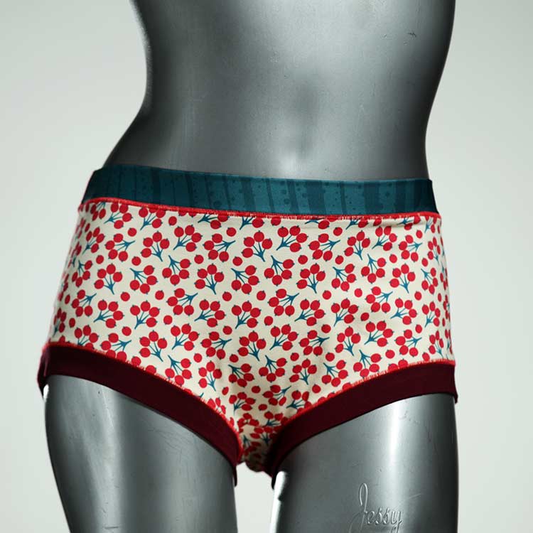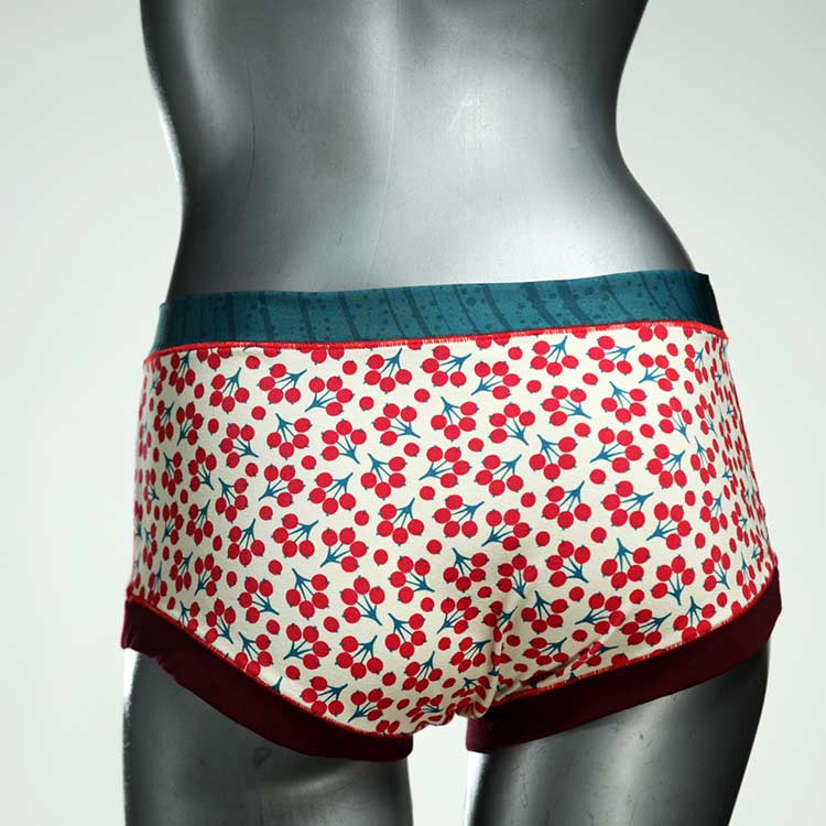 Unsere süßen und bequemen Bio-Hotpants sind echte Unikate und werden in Handarbeit fair und lokal hergestellt.. Aus weicher Biobaumwolle aus ökologischem Landbau und ohne Gummis. Hautfreundlich, atmungsaktiv und sehr angenehm zu tragen. Bedeckt den Po komplett und verklemmt nicht. Bio-vegane sexy, retro Biounterwäsche made in Berlin.