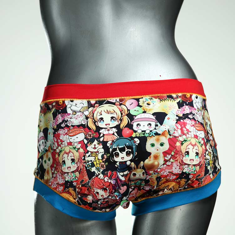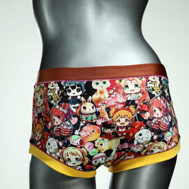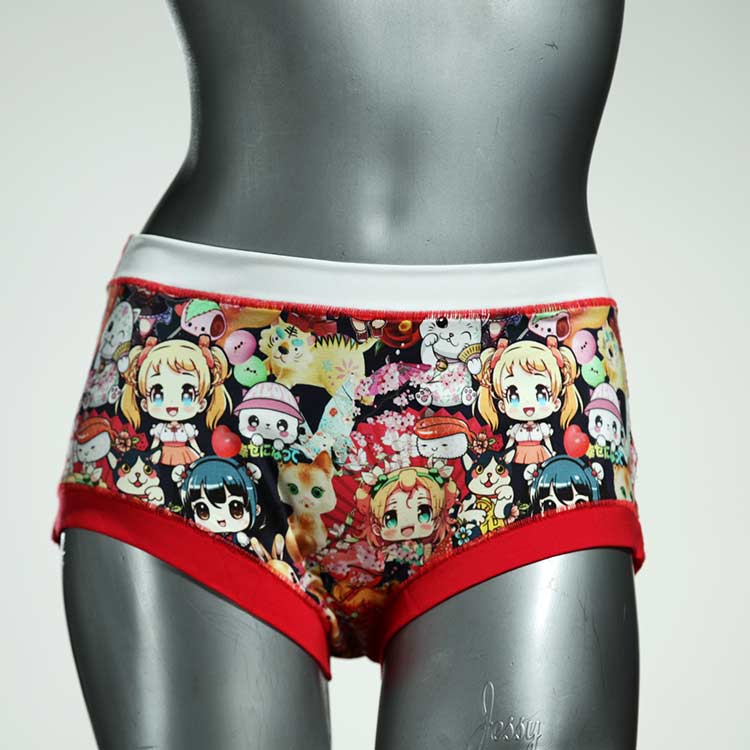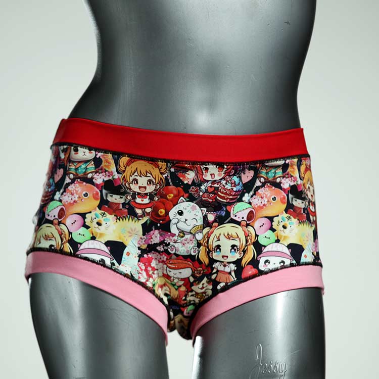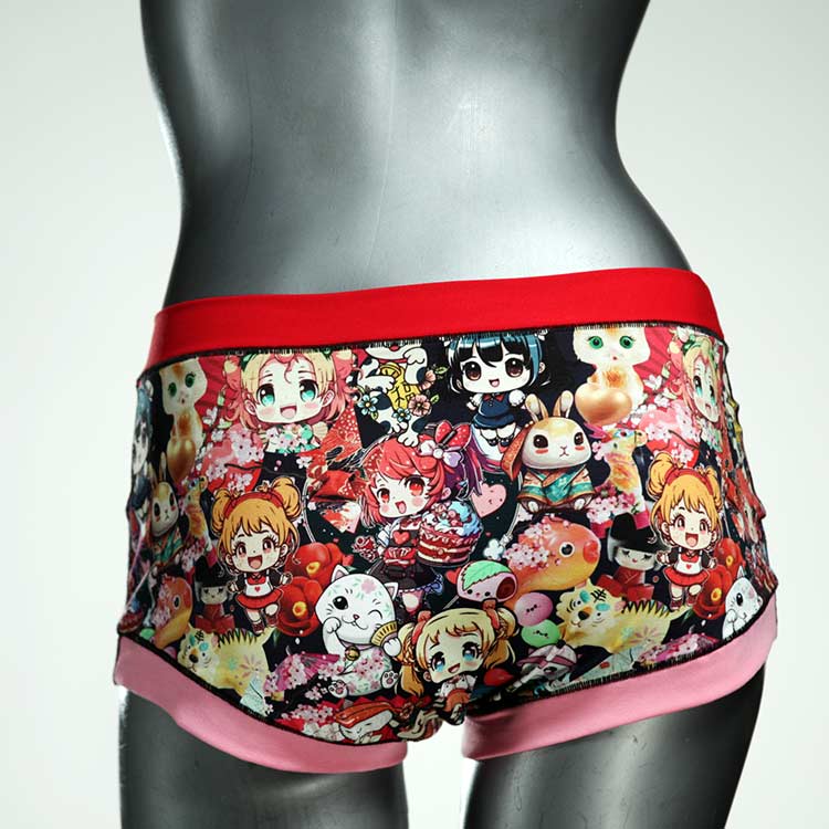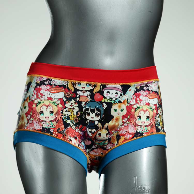 Unsere süßen und bequemen Bio-Hotpants sind echte Unikate und werden in Handarbeit fair und lokal hergestellt.. Aus weicher Biobaumwolle aus ökologischem Landbau und ohne Gummis. Hautfreundlich, atmungsaktiv und sehr angenehm zu tragen. Bedeckt den Po komplett und verklemmt nicht. Bio-vegane sexy, retro Biounterwäsche made in Berlin.