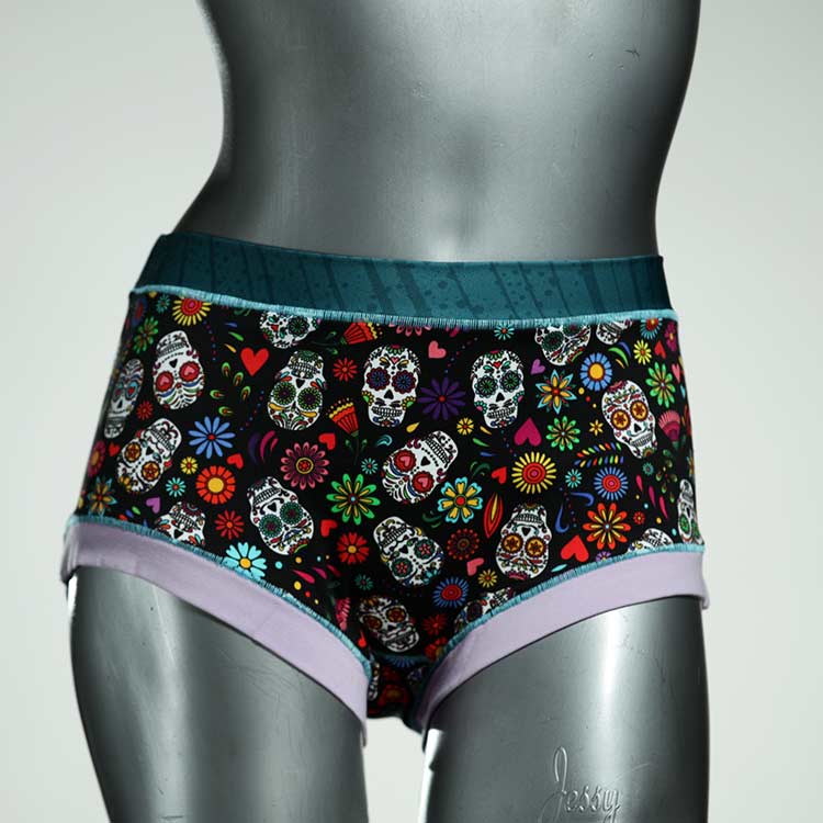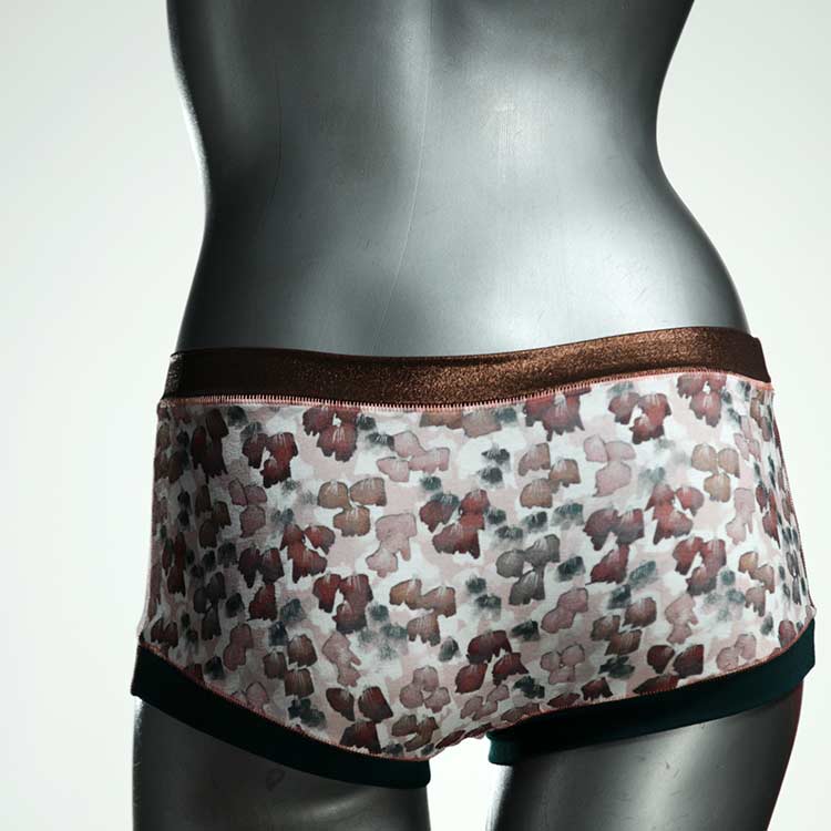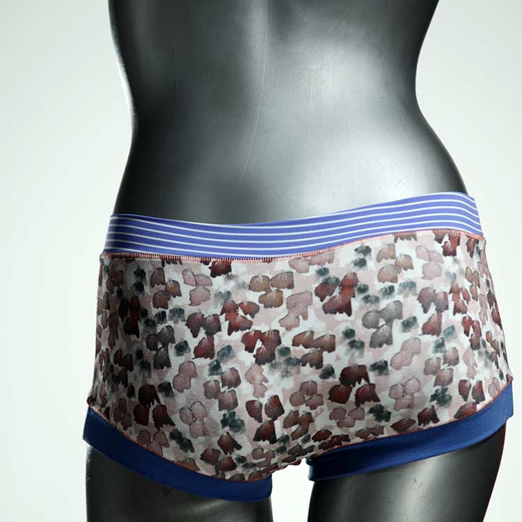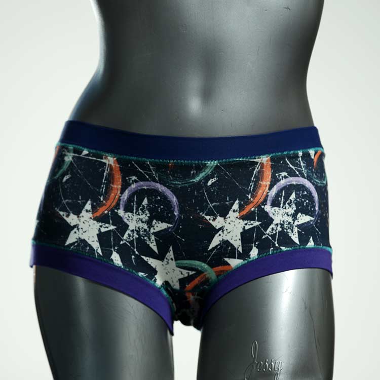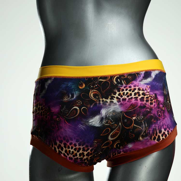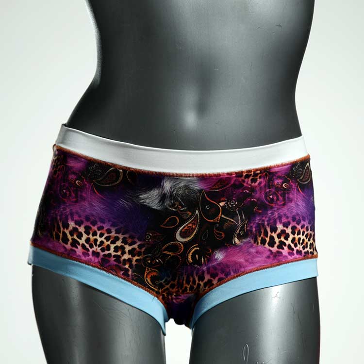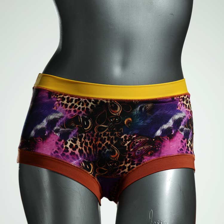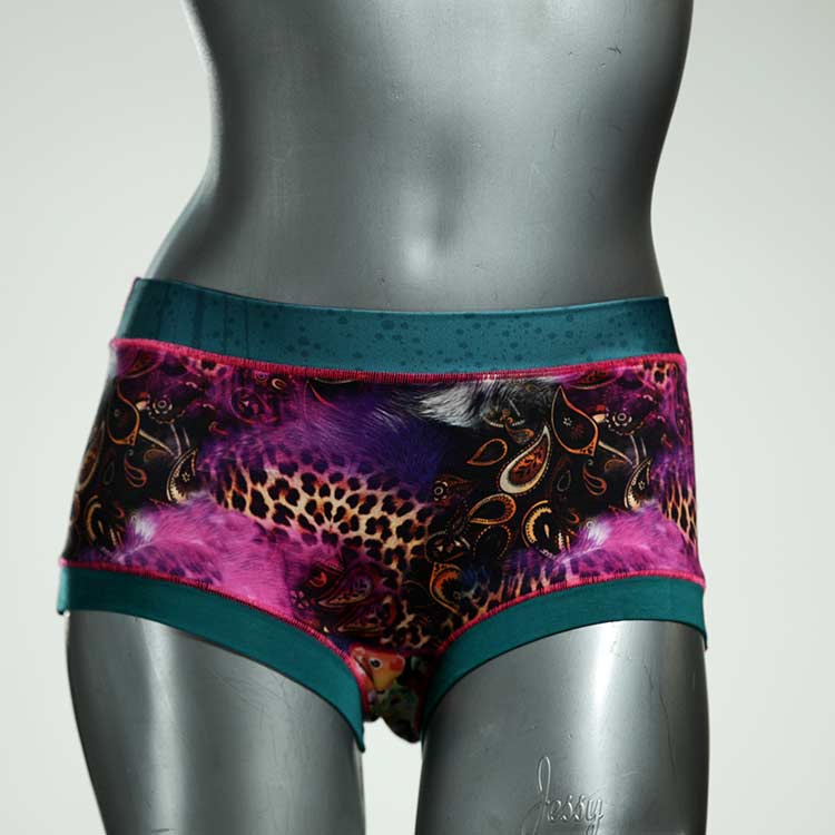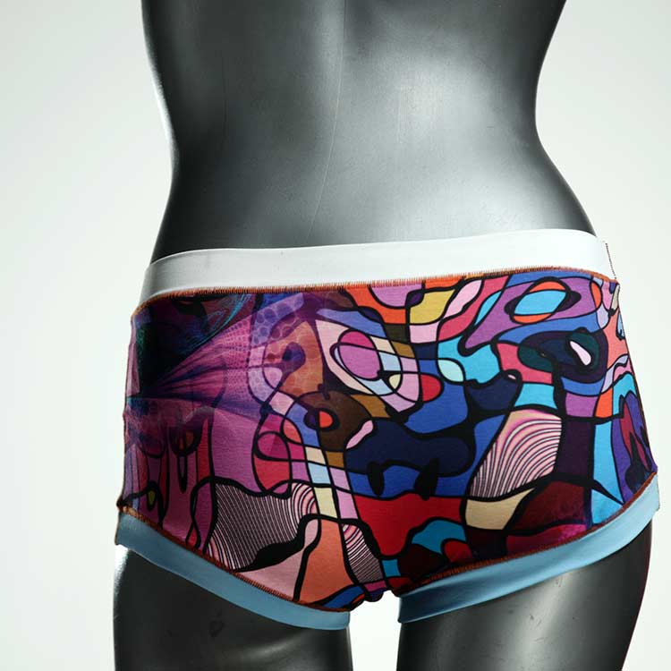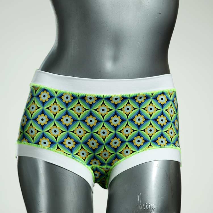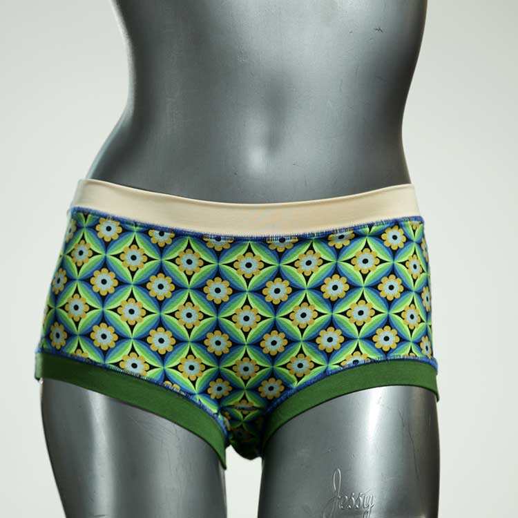 Diese schöne und bequeme Hotpant aus GOTS-zertifizierter Biobaumwolle gibt es nur einmal und sie wurde in unserem Atelier in Berlin für Sie zugeschnitten, entworfen und genäht. Wir erschaffen täglich neue Unterwäsche-Einzelstücke aus weichen kunterbunten Biobaumwoll-Jerseys.