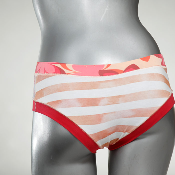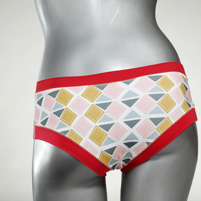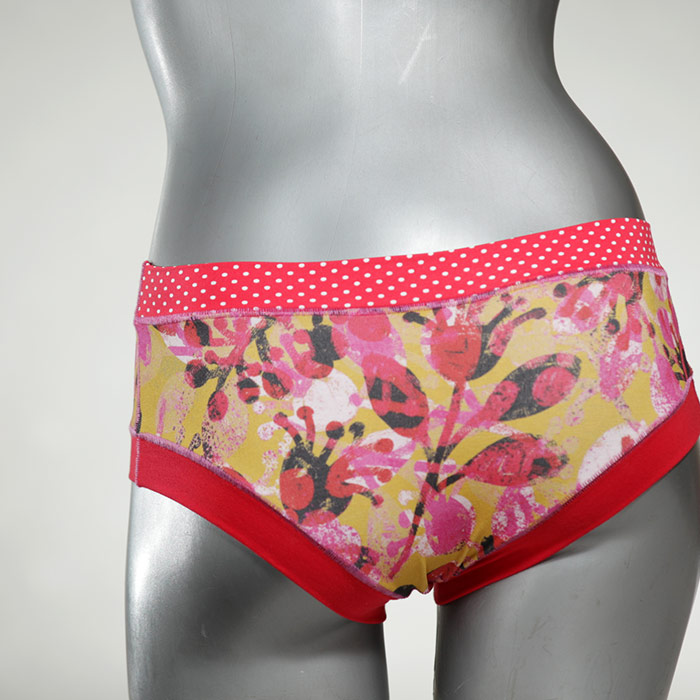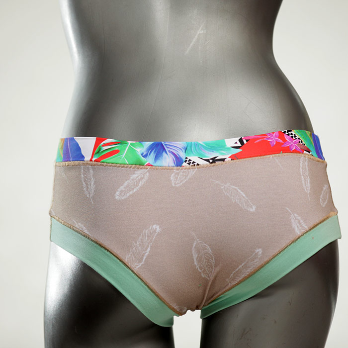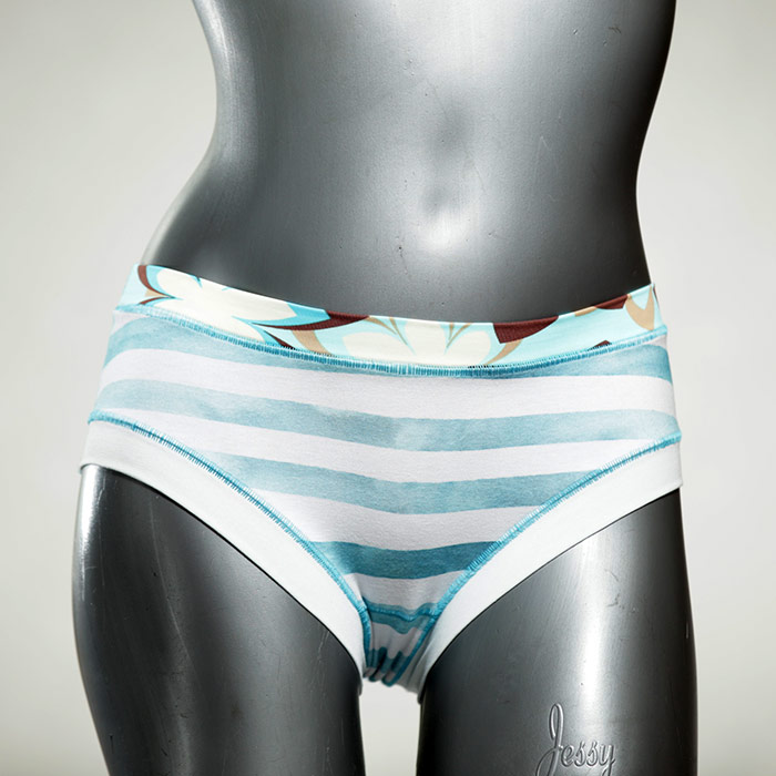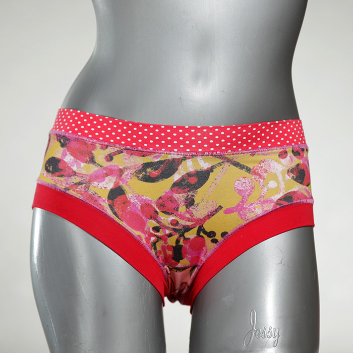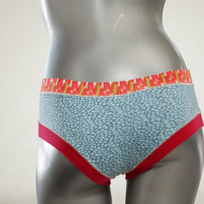 Diese süßen, bequemen Panties aus weicher Biobaumwolle sind echte Einzelstücke und werden in Handarbeit fair und lokal hergestellt. Hautfreundlich, atmungsaktiv und sehr angenehm zu tragen. Bedeckt den Po halb bzw. brazilina-mäßig, ist aber genau breit genug um nicht zu verklemmen. Bio-vegane sexy, retro Biopanties made in Berlin.