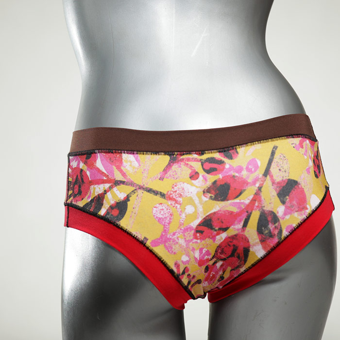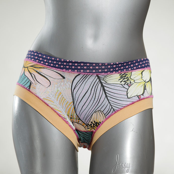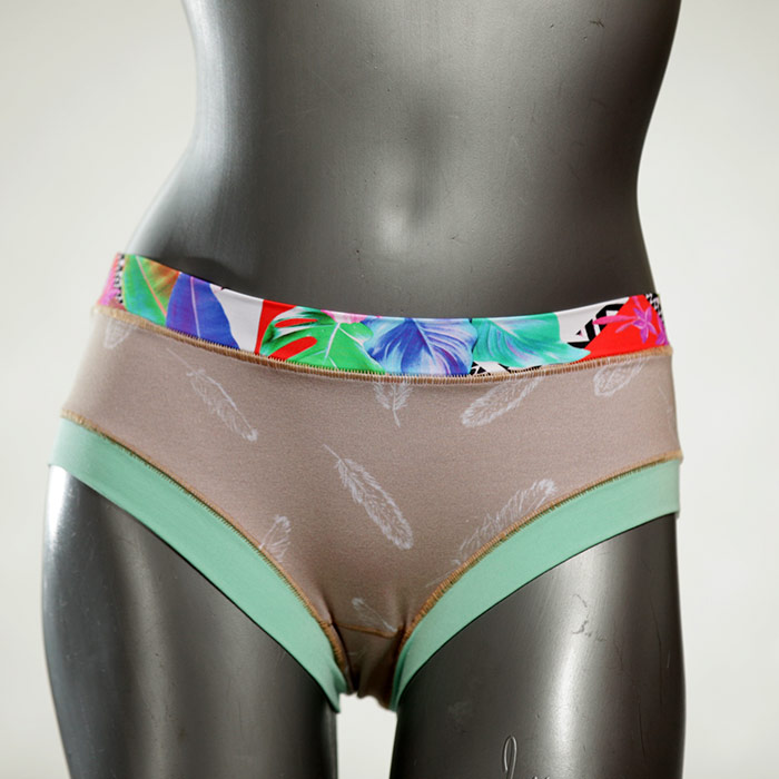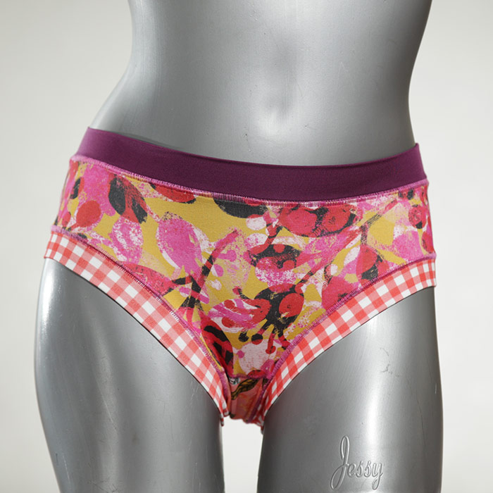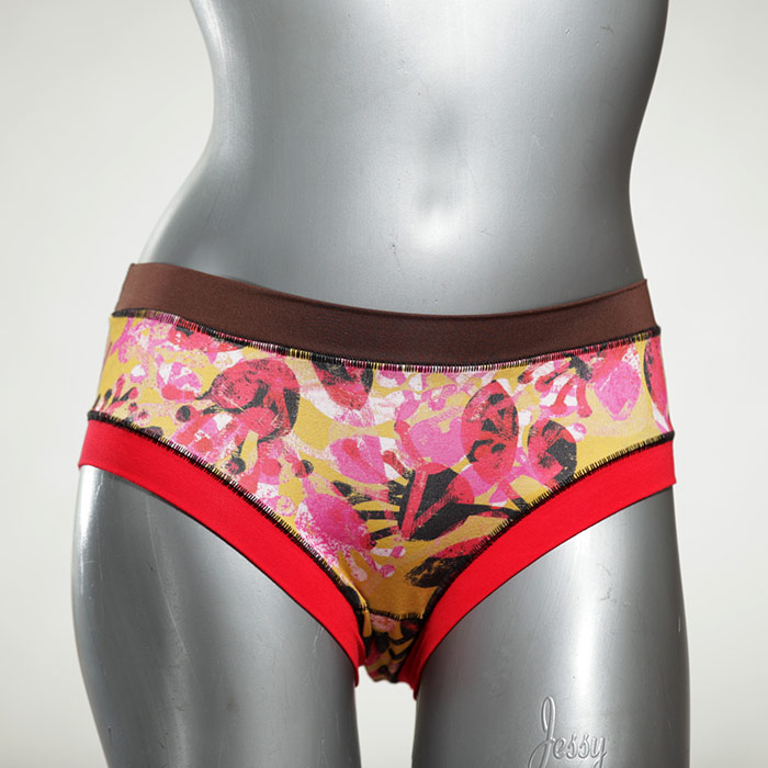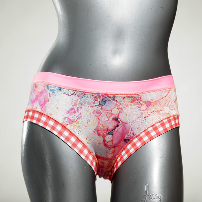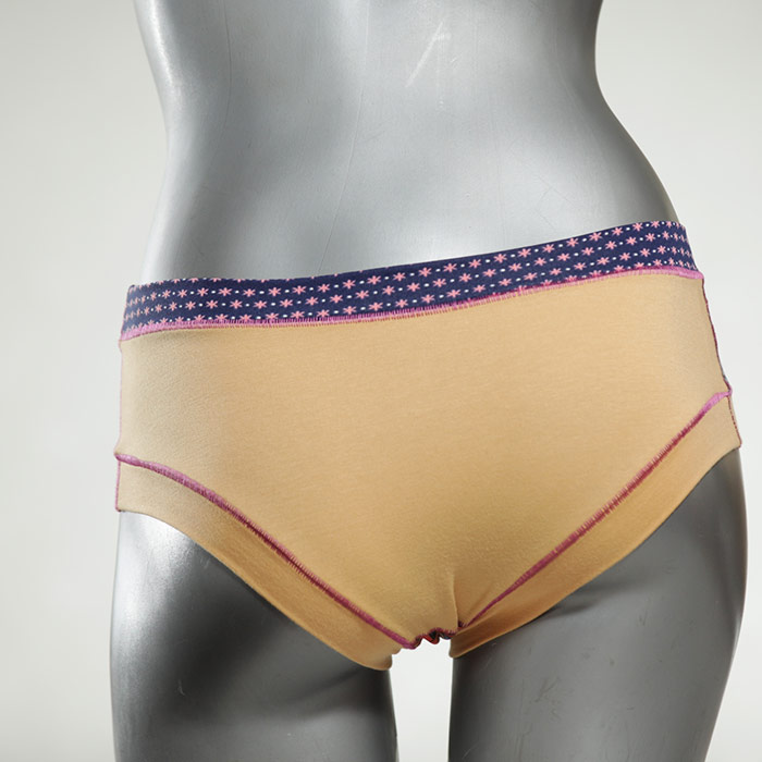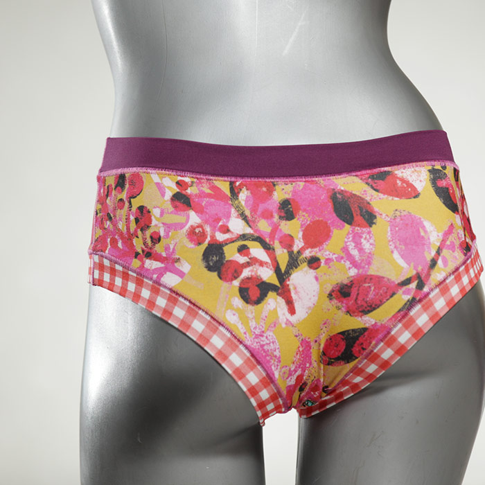 Diese süßen, bequemen Panties aus weicher Biobaumwolle sind echte Einzelstücke und werden in Handarbeit fair und lokal hergestellt. Hautfreundlich, atmungsaktiv und sehr angenehm zu tragen. Bedeckt den Po halb bzw. brazilina-mäßig, ist aber genau breit genug um nicht zu verklemmen. Bio-vegane sexy, retro Biopanties made in Berlin.