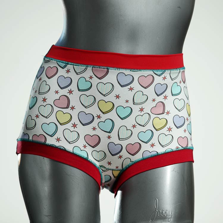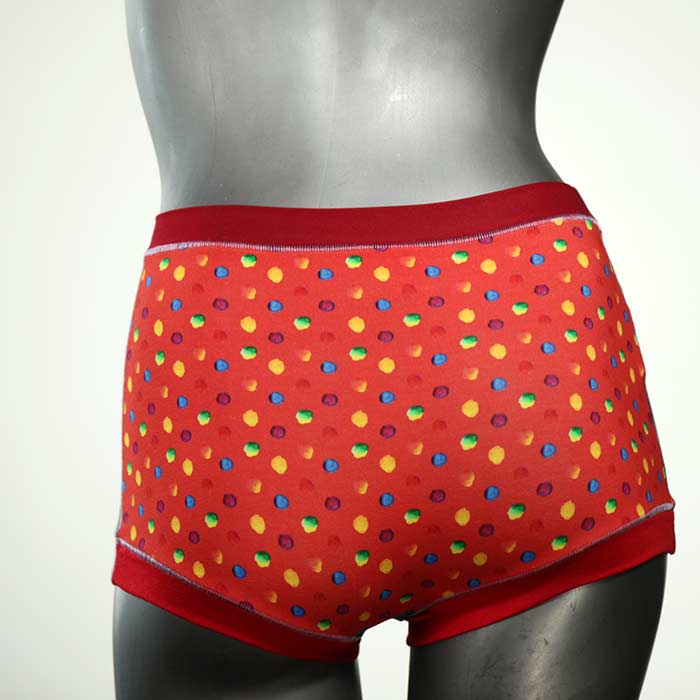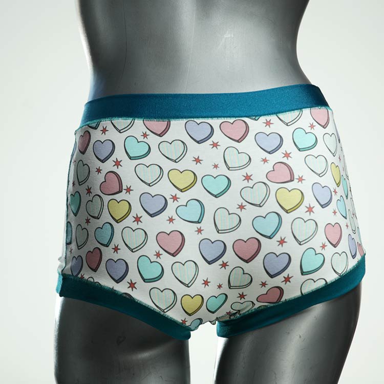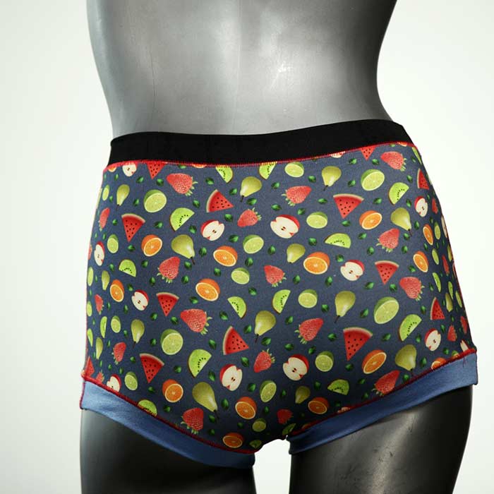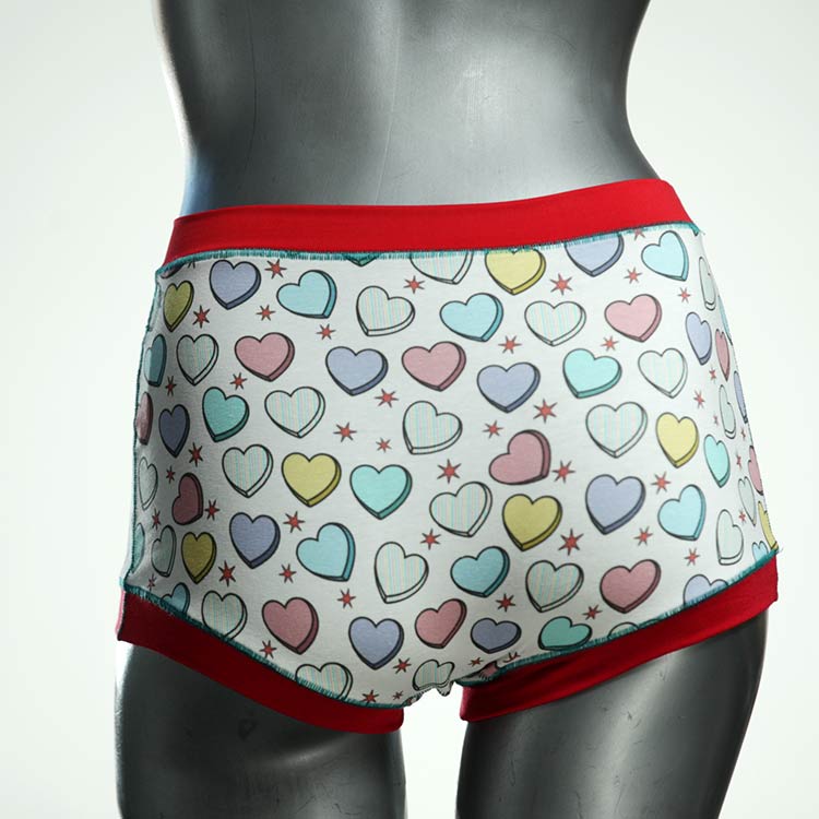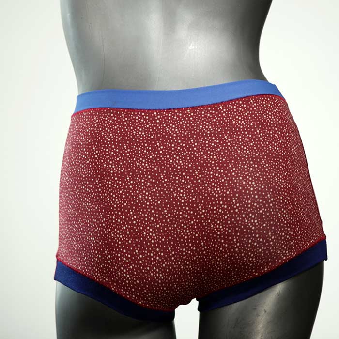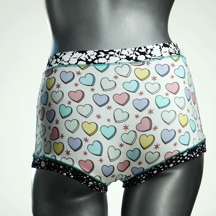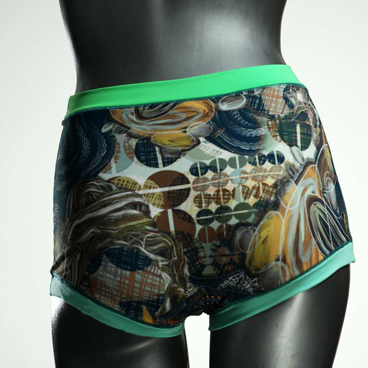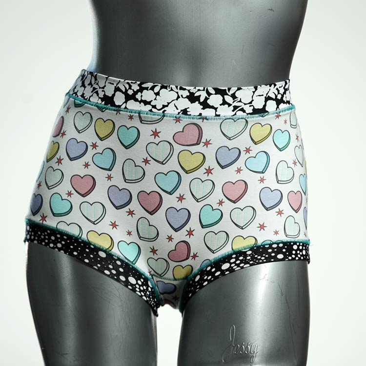 Diese besonders hoch geschnittenen Hotpants wurden oft nachgefragt und haben wir jetzt neu im Angebot. Echte Unikate aus Handarbeit, made in Berlin. Aus weichem und elastischem Baumwolljersey ohne klemmende Gummis. Bedeckt den Po vollständig und klemmt sich nirgends ein. Hautfreundlich und sehr bequem.