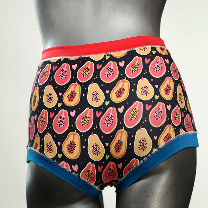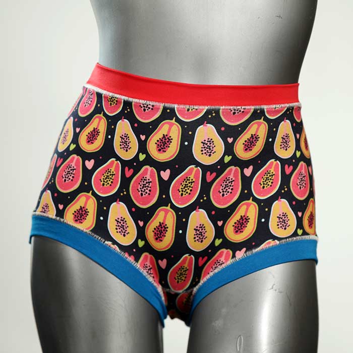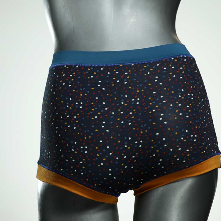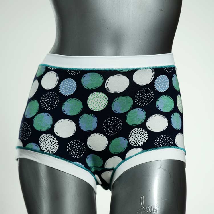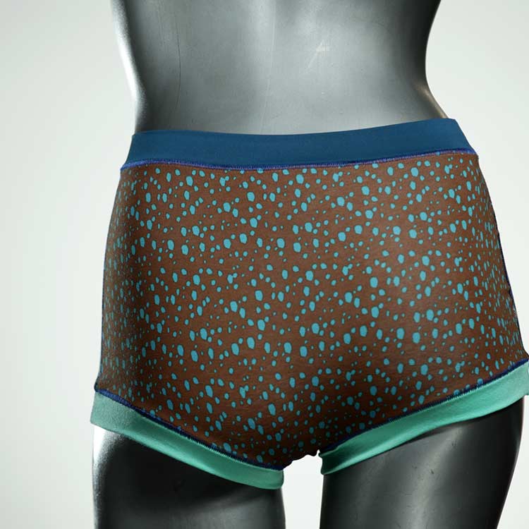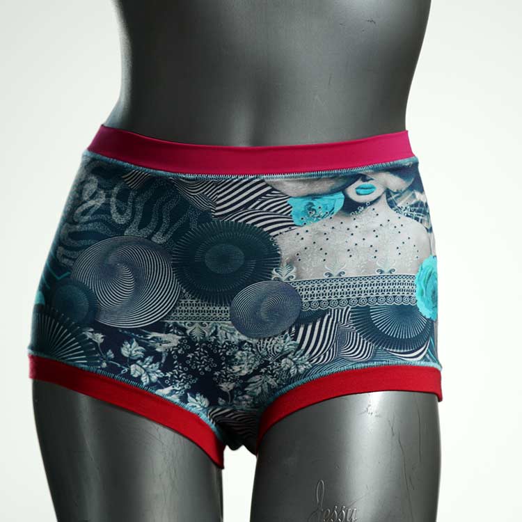 Diese schöne und bequeme highwaist Hotpant aus Baumwolle gibt es nur einmal und sie wurde in unserem Atelier in Berlin für Sie zugeschnitten, entworfen und genäht. Wir erschaffen täglich neue Unterwäsche-Einzelstücke aus weichen kunterbunten Baumwoll-Jerseys.