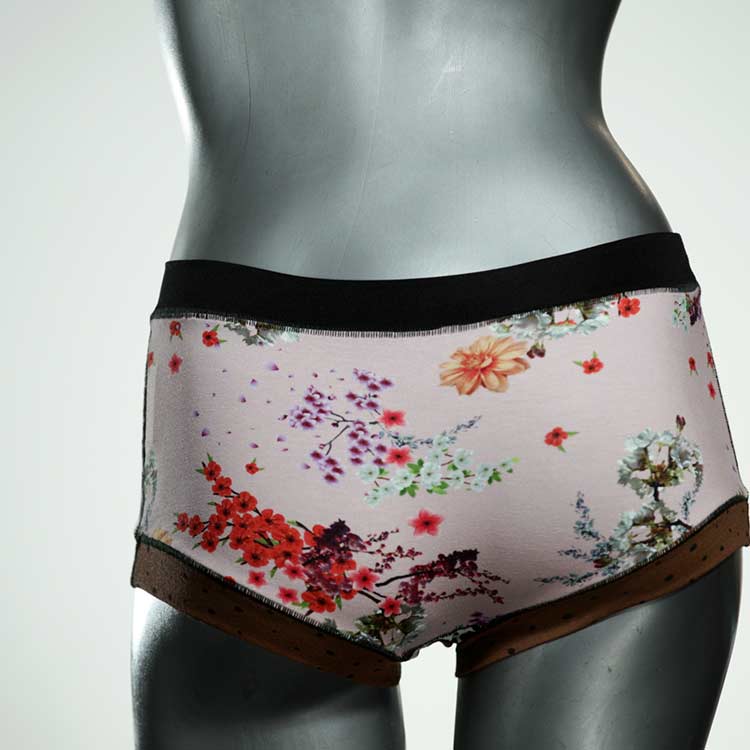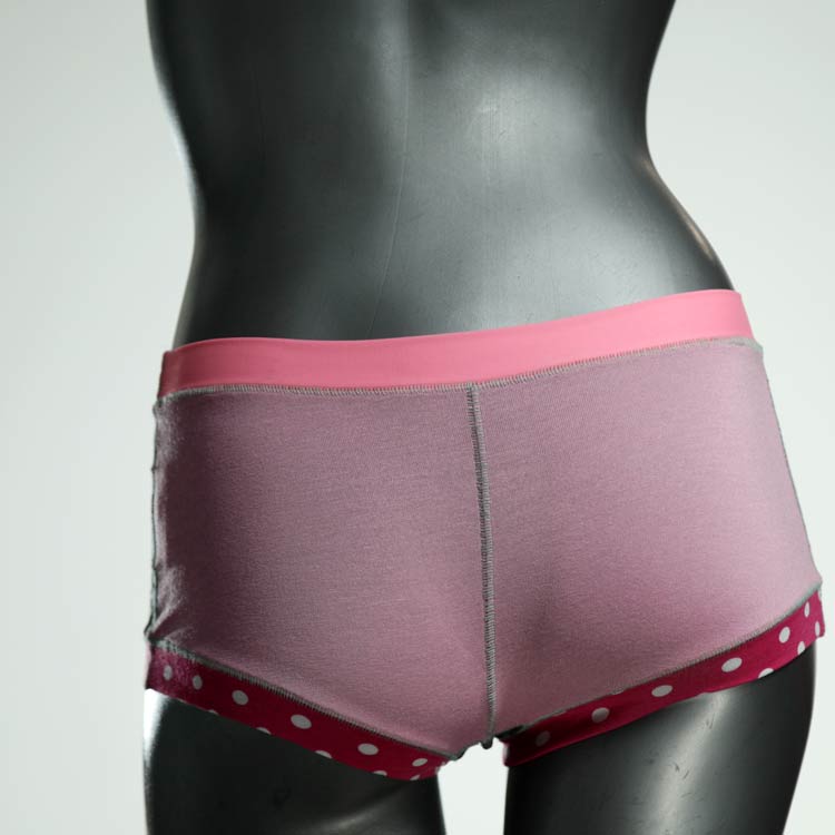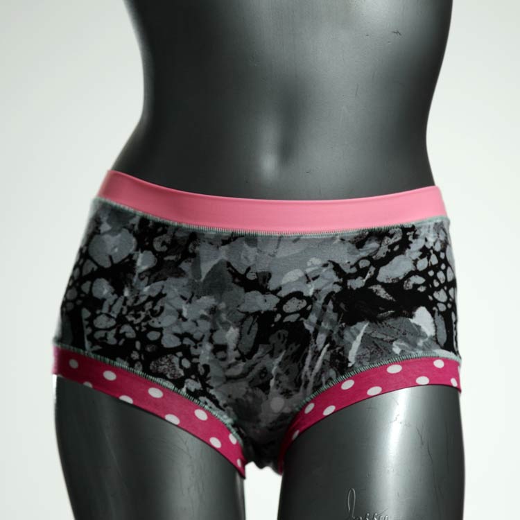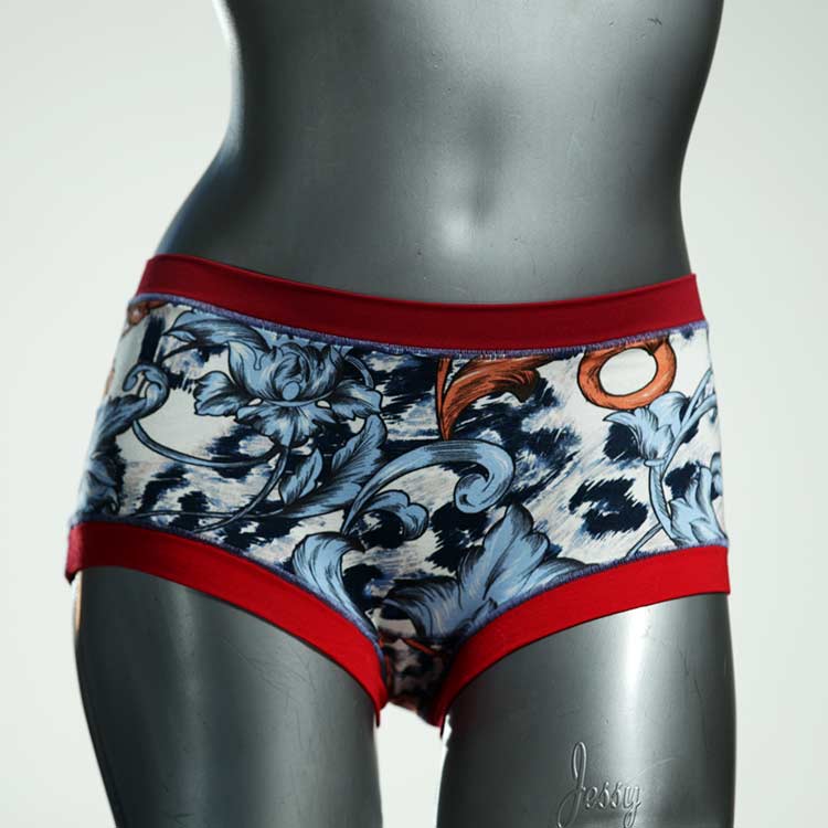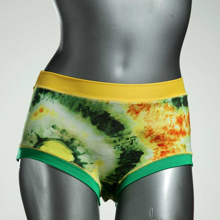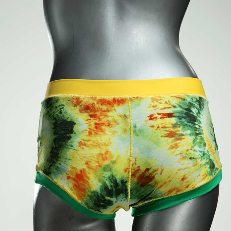Hotpants sind gleich nach den Panties unser Bestseller. Echte Unikate aus Handarbeit, made in Berlin. Sind sind relativ breit geschnitten und aus weichem und elastischem Baumwolljersey ohne klemmende Gummis. Bedeckt den Po -je nach Person- vollständig und klemmt sich nirgends ein. Ähnlich Boyshort. Hautfreundlich und sehr bequem.