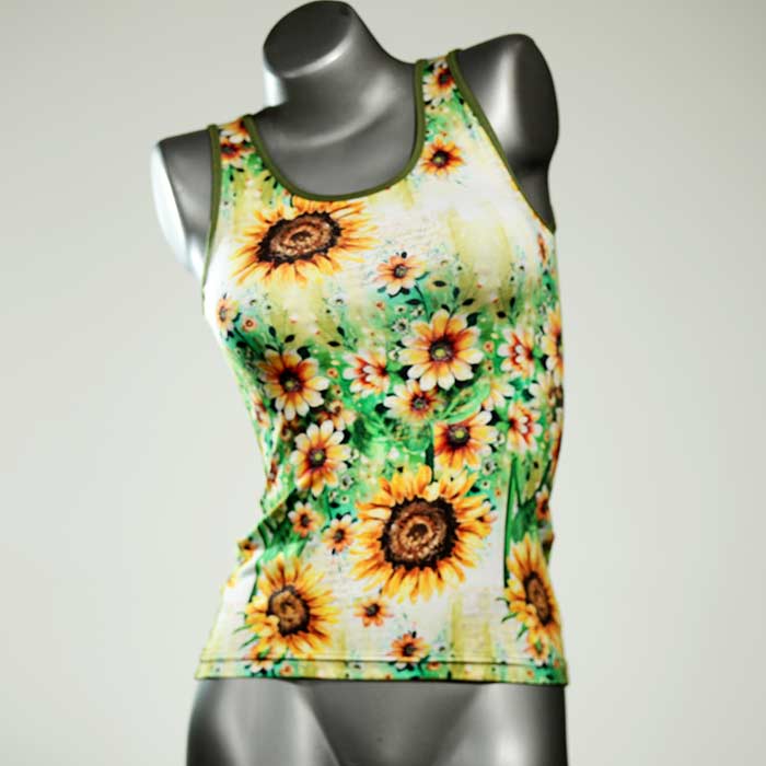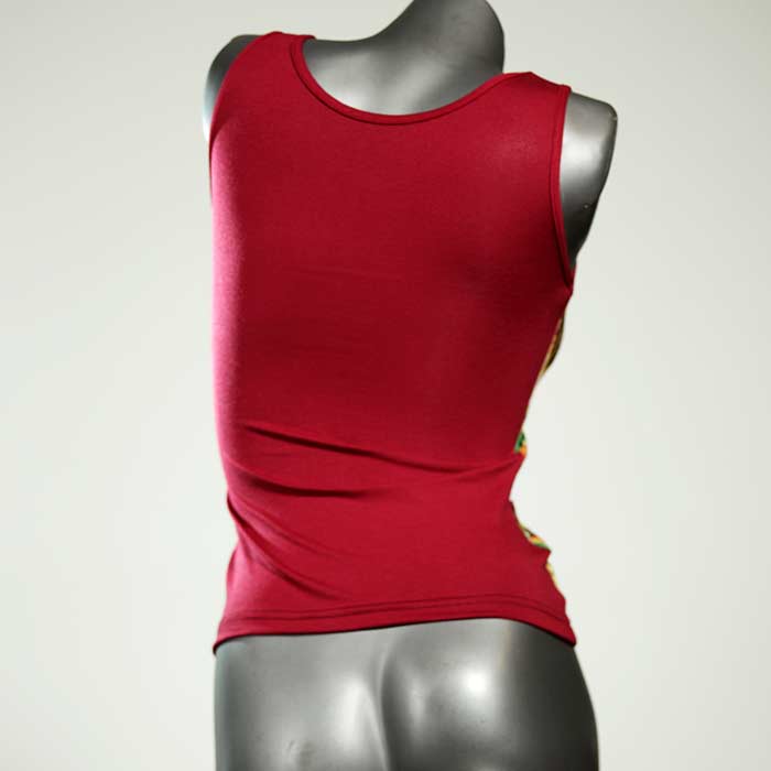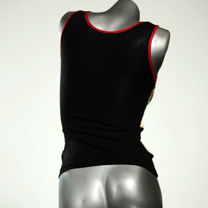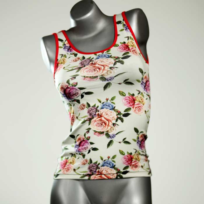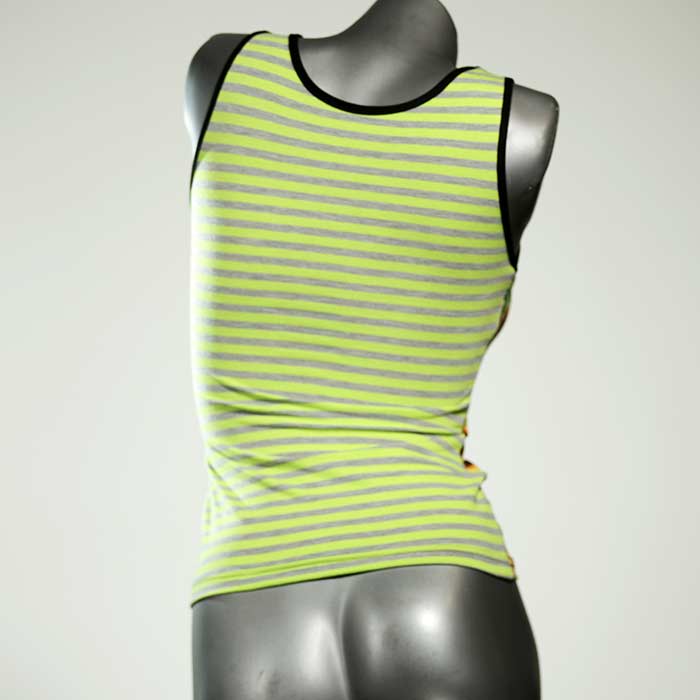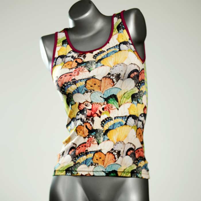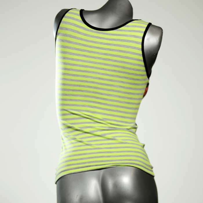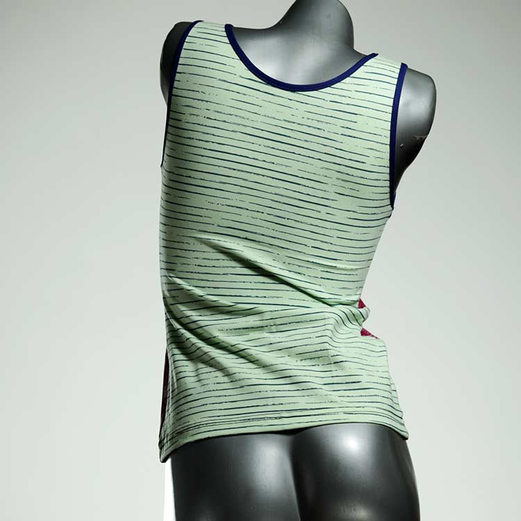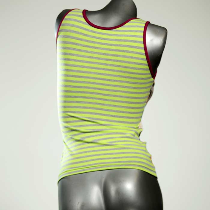 Einzigartige, süße Tops aus weicher, elastischer Baumwolle für Damen. Eigentlich zu schade als Unterwäsche, werden unsere auf Taille geschnittenen Tanktops auch sehr gerne als Sommertop, Sporttop für Yoga oder als kuschelige Nachtwäsche getragen. Die atmungsaktiven Stoffe liegen luftig und bequem am Körper an, und folgen ihren Kurven, ohne jedoch zu beengen.