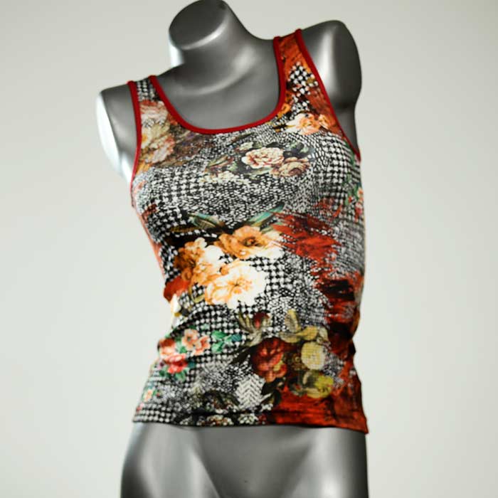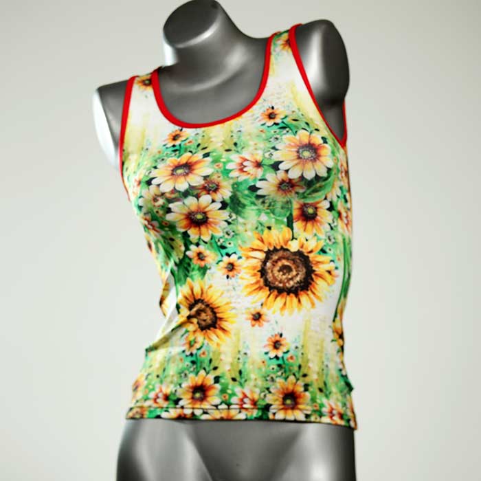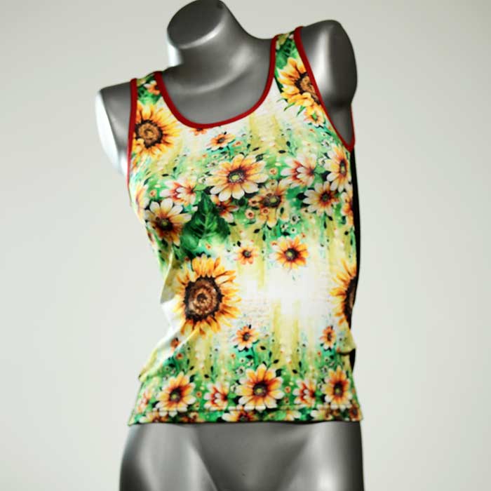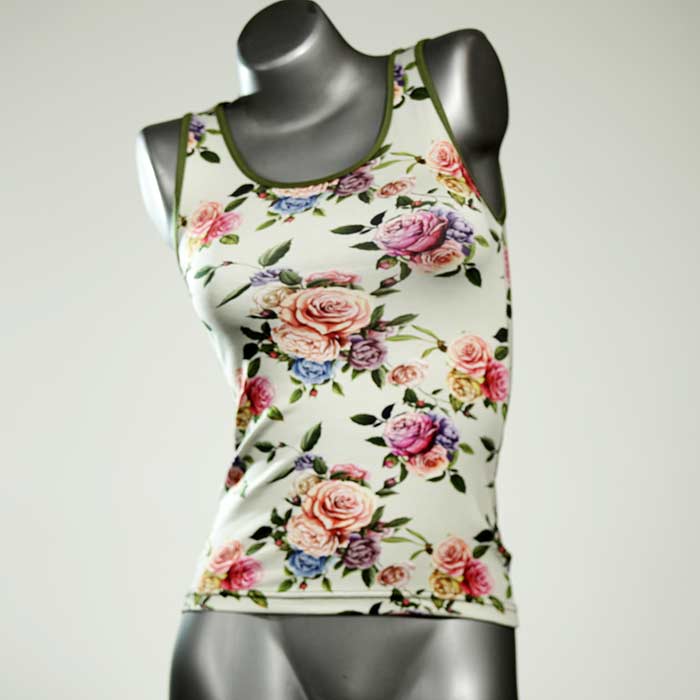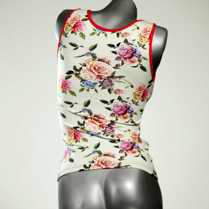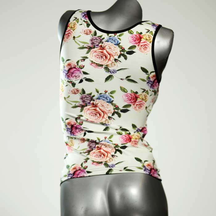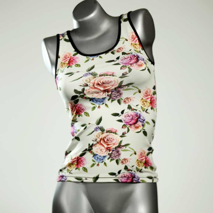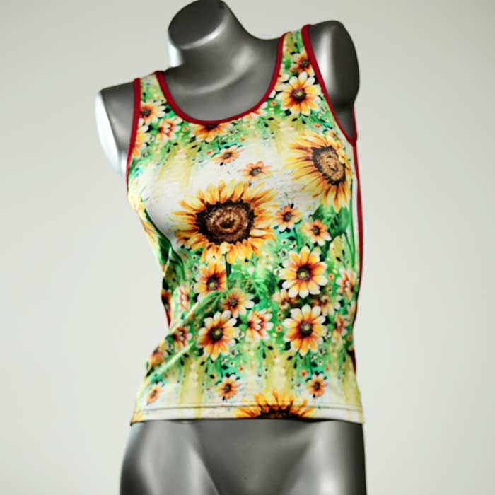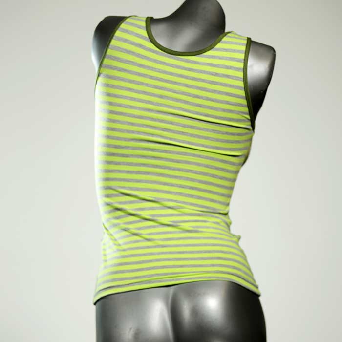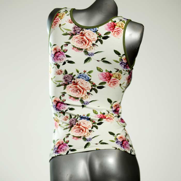 Einzigartige, süße Tops aus weicher, elastischer Baumwolle für Damen. Eigentlich zu schade als Unterwäsche, werden unsere auf Taille geschnittenen Tanktops auch sehr gerne als Sommertop, Sporttop für Yoga oder als kuschelige Nachtwäsche getragen. Die atmungsaktiven Stoffe liegen luftig und bequem am Körper an, und folgen ihren Kurven, ohne jedoch zu beengen.