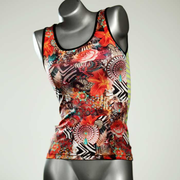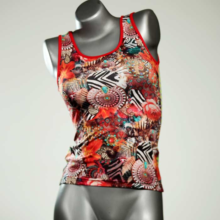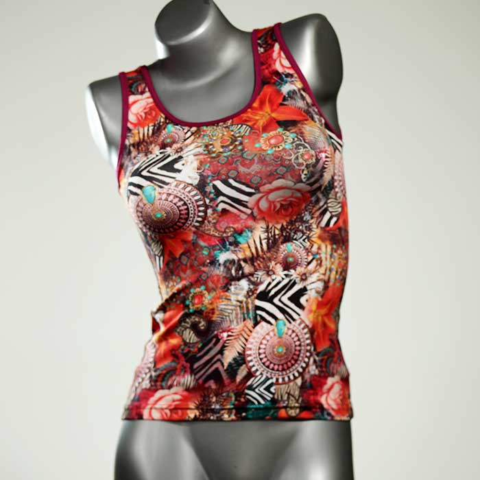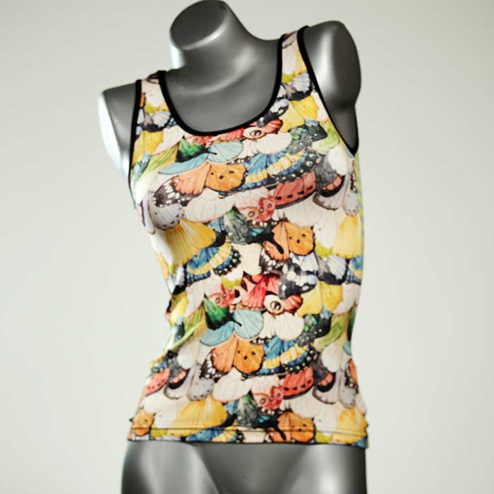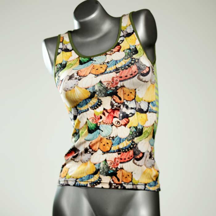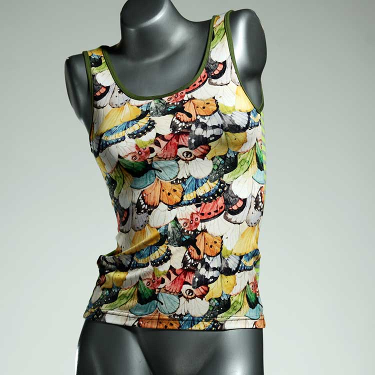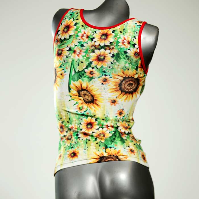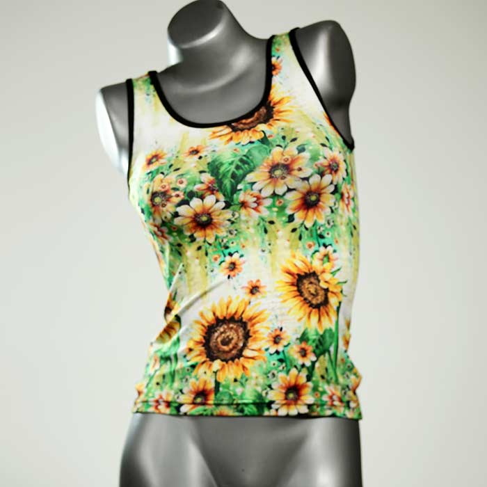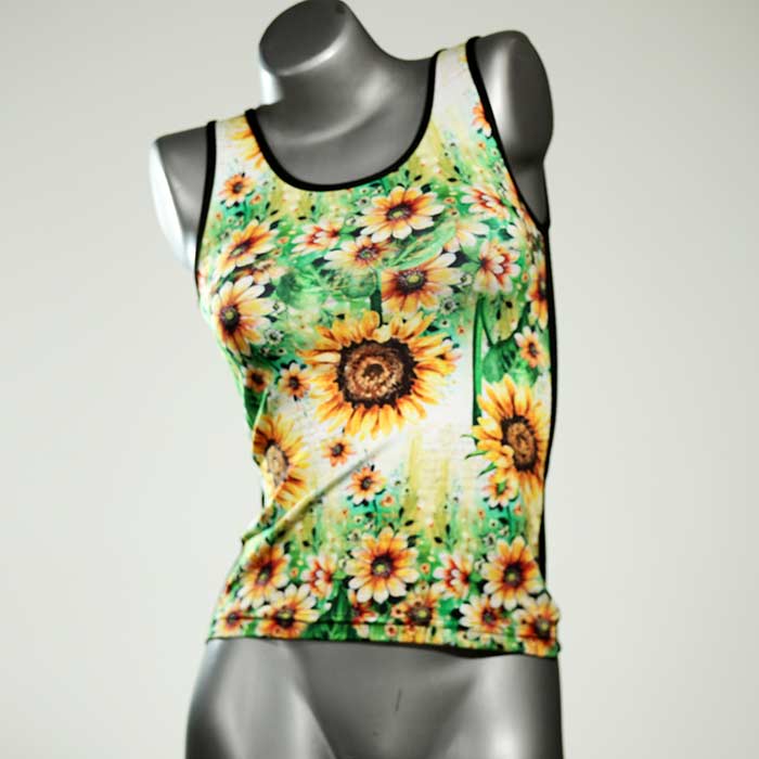 Einzigartige, süße Tops aus weicher, elastischer Baumwolle für Damen. Eigentlich zu schade als Unterwäsche, werden unsere auf Taille geschnittenen Tanktops auch sehr gerne als Sommertop, Sporttop für Yoga oder als kuschelige Nachtwäsche getragen. Die atmungsaktiven Stoffe liegen luftig und bequem am Körper an, und folgen ihren Kurven, ohne jedoch zu beengen.