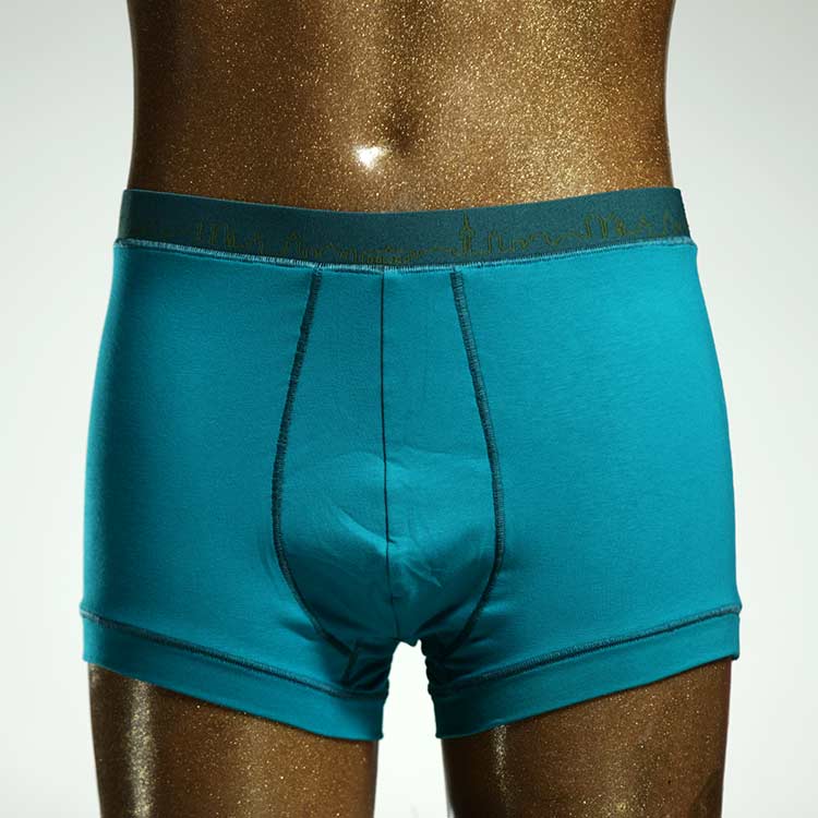 Diese schöne und bequeme Herrenshort aus Biobaumwolle wurde in unserem Atelier in Berlin für Sie zugeschnitten, entworfen und genäht. Wir erschaffen täglich neue Unterwäsche-Kreationen aus weichen bunten Biobaumwoll-Jerseys.