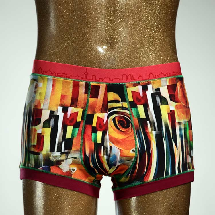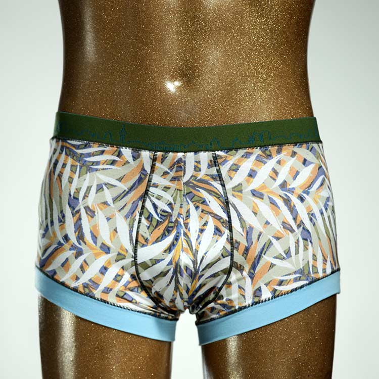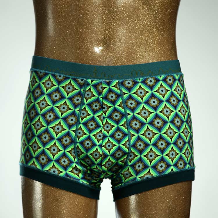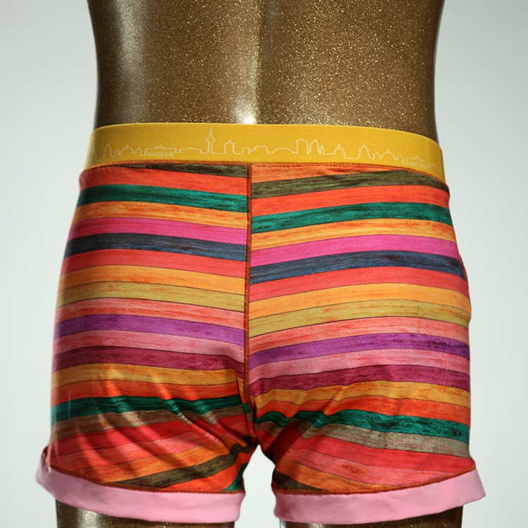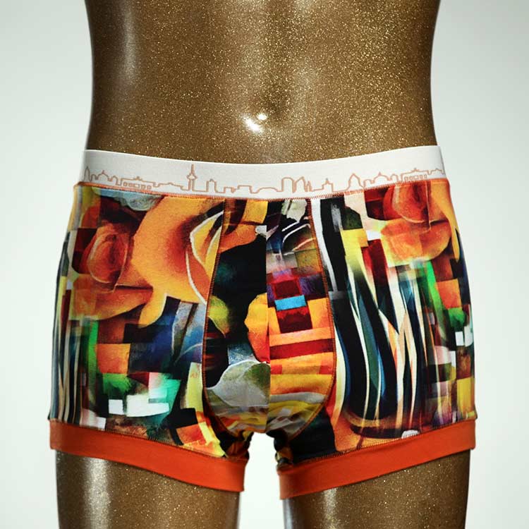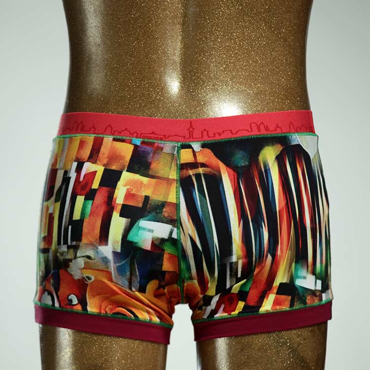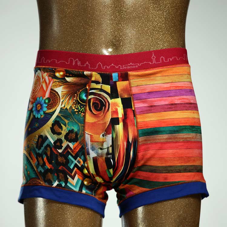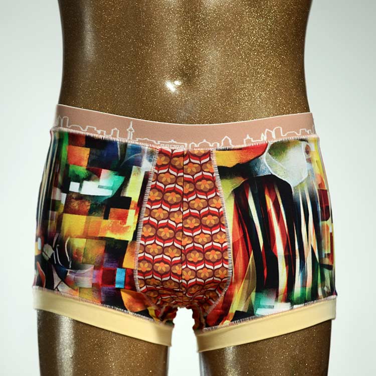 Diese schöne und bequeme Herrenshort aus GOTS-zertifizierter Biobaumwolle ist ein echtes Unikat und wurde in unserem Atelier in Berlin für Sie zugeschnitten, entworfen und genäht. Wir erschaffen täglich neue Unterwäsche-Einzelstücke aus weichen bunten Baumwoll-Jerseys.