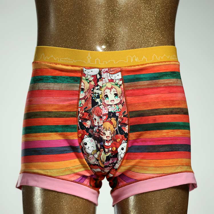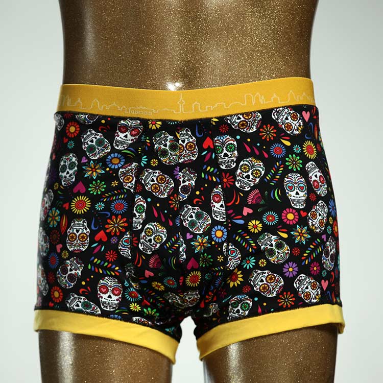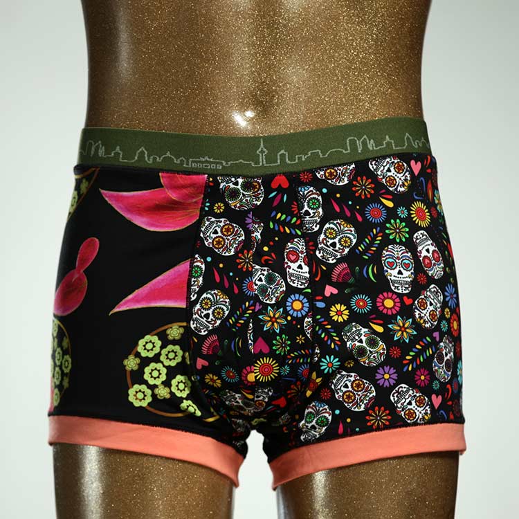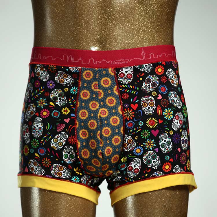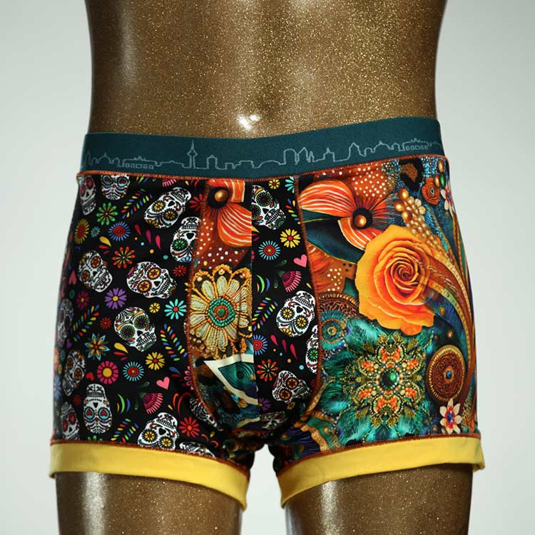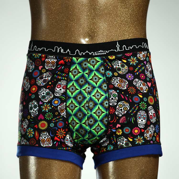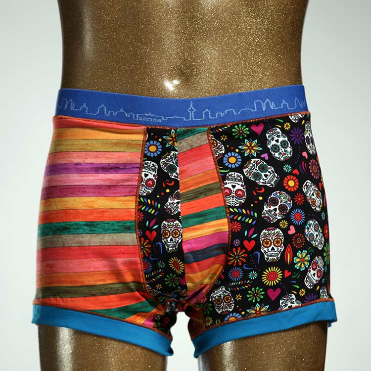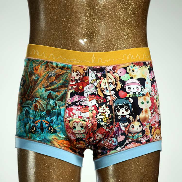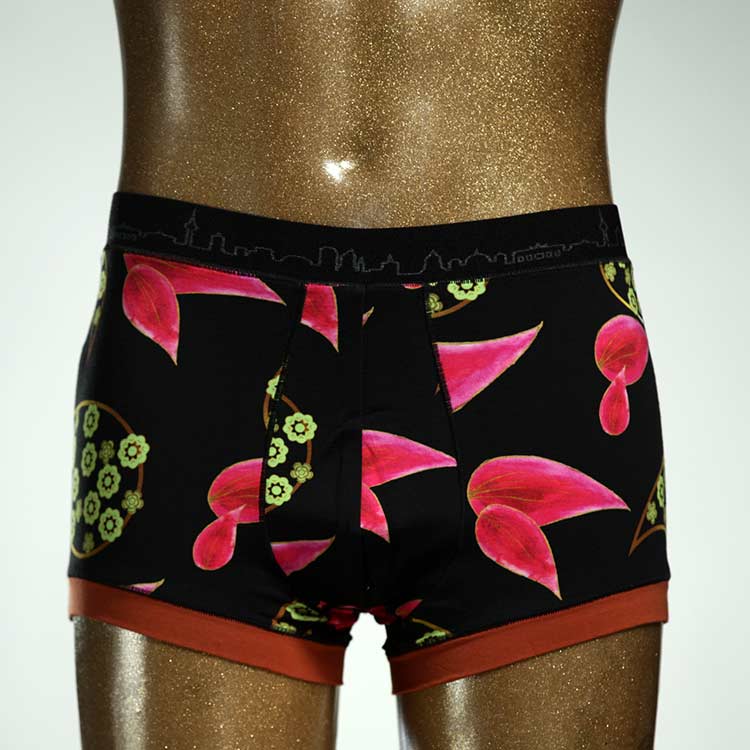 Diese schöne und bequeme Herrenshort aus GOTS-zertifizierter Biobaumwolle ist ein echtes Unikat und wurde in unserem Atelier in Berlin für Sie zugeschnitten, entworfen und genäht. Wir erschaffen täglich neue Unterwäsche-Einzelstücke aus weichen bunten Baumwoll-Jerseys.
