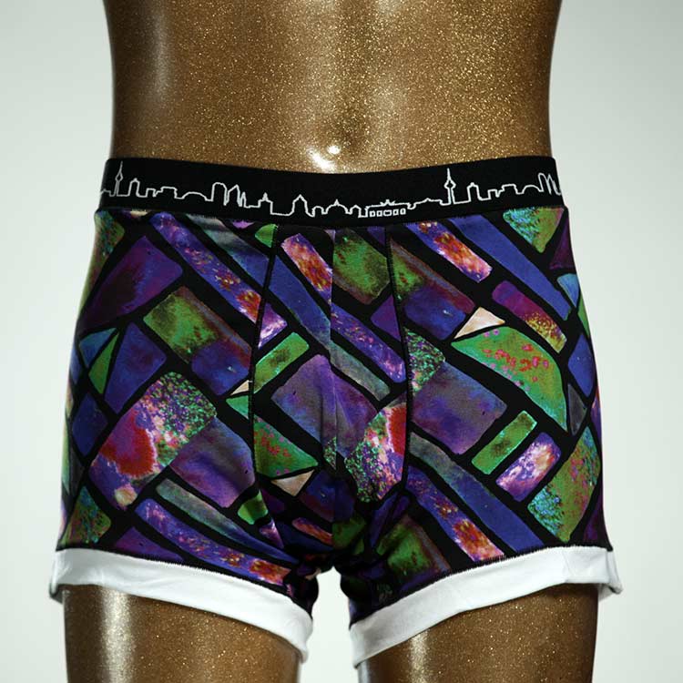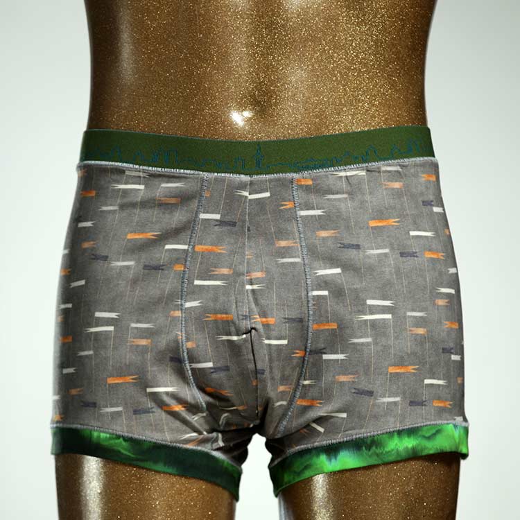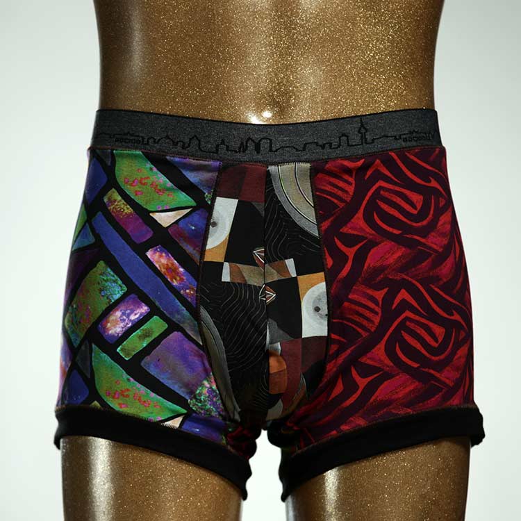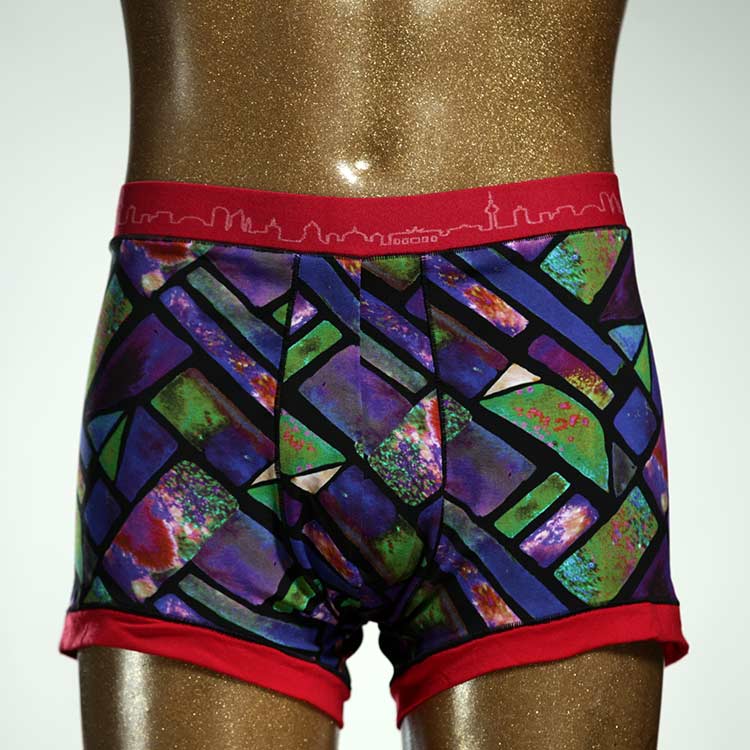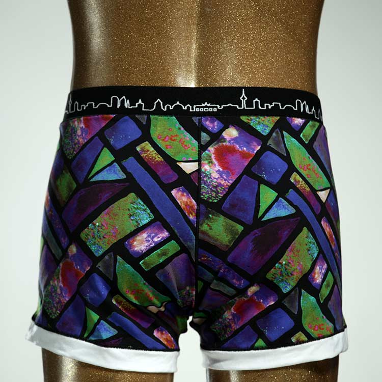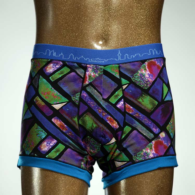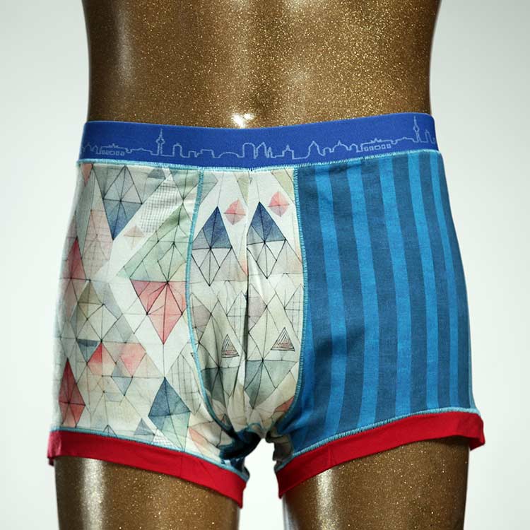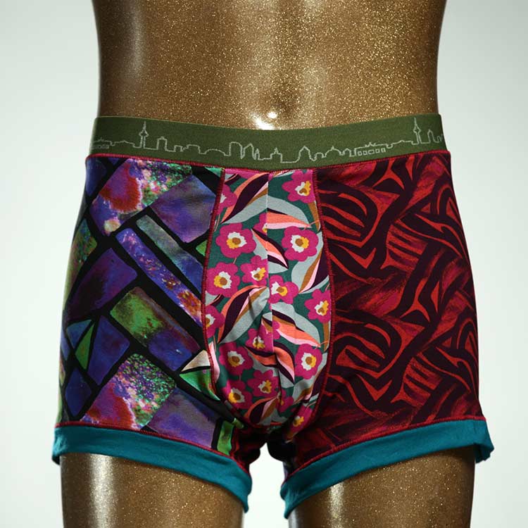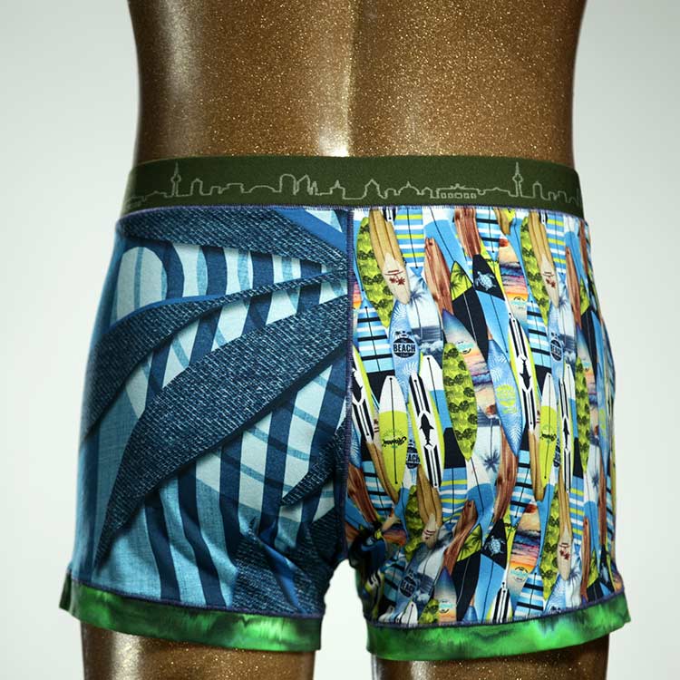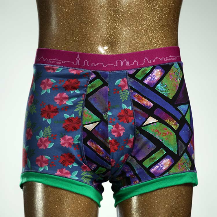 Diese schöne und bequeme Herrenshort aus GOTS-zertifizierter Biobaumwolle ist ein echtes Unikat und wurde in unserem Atelier in Berlin für Sie zugeschnitten, entworfen und genäht. Wir erschaffen täglich neue Unterwäsche-Einzelstücke aus weichen bunten Baumwoll-Jerseys.