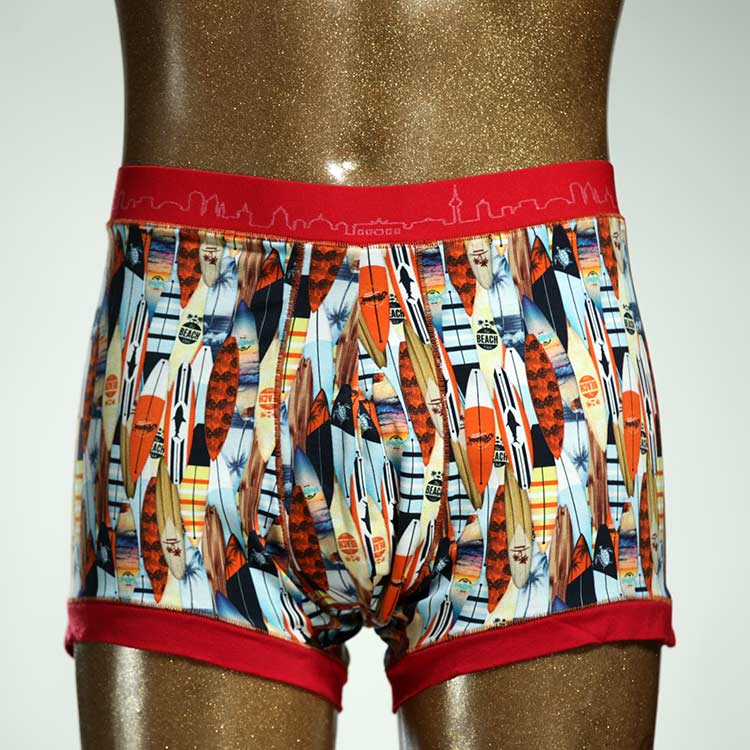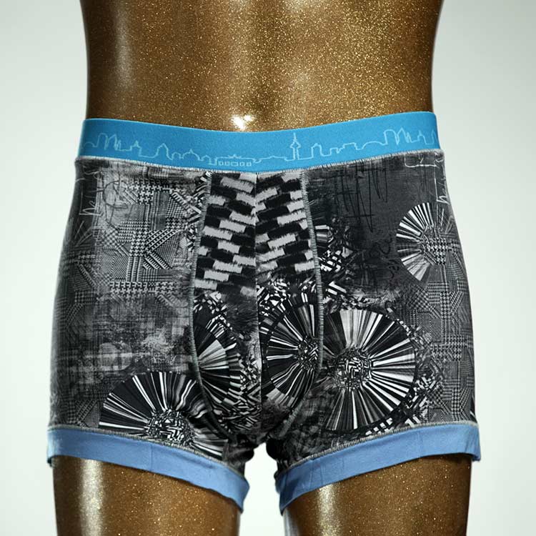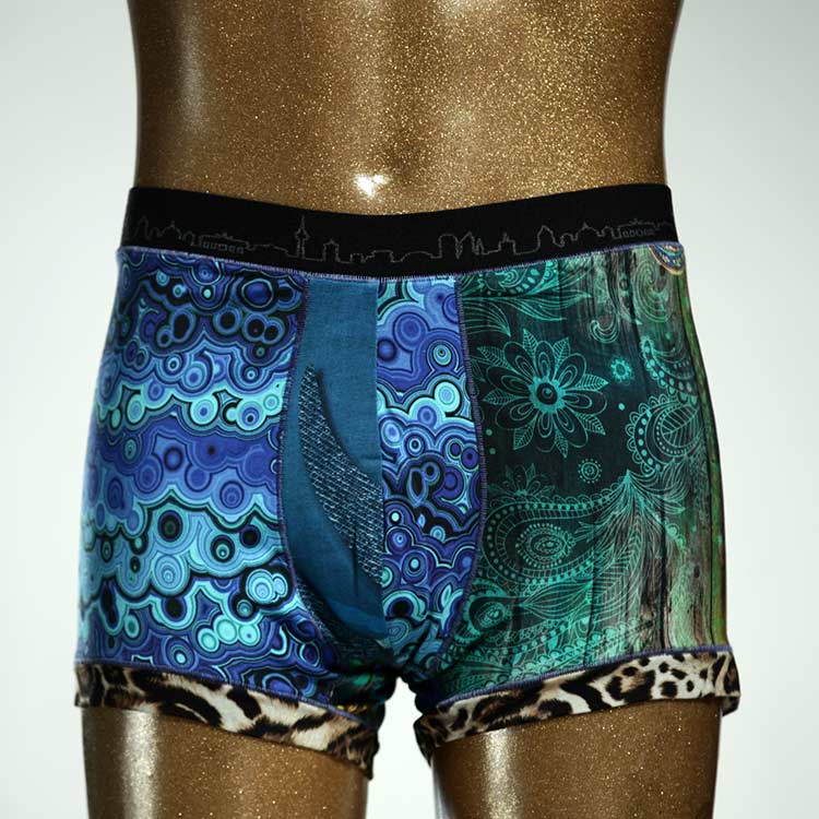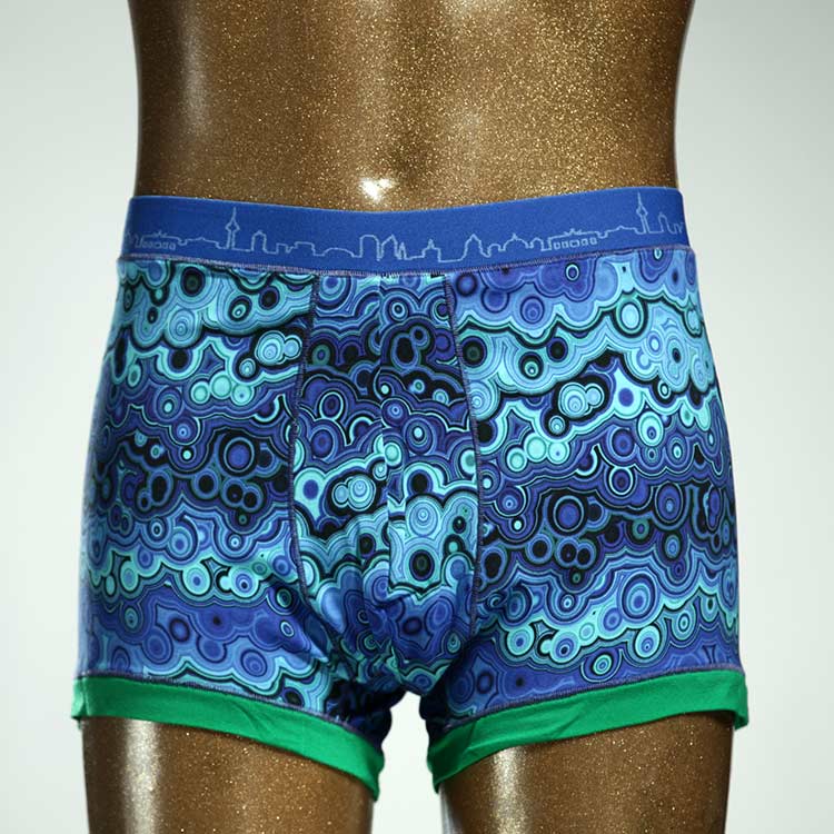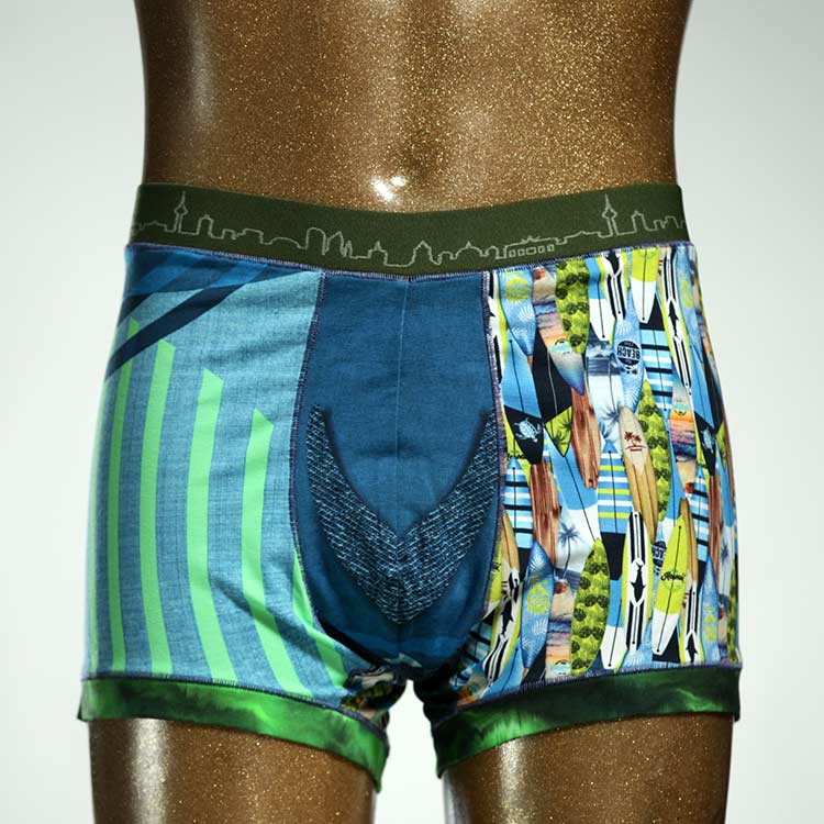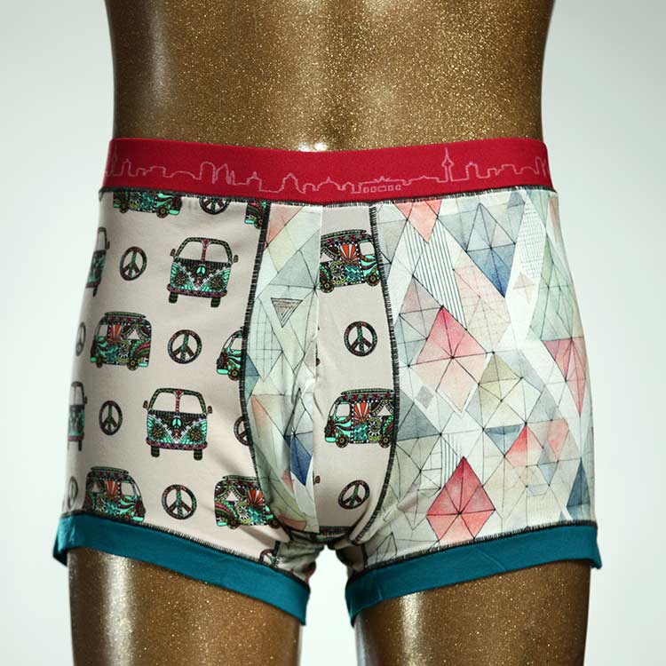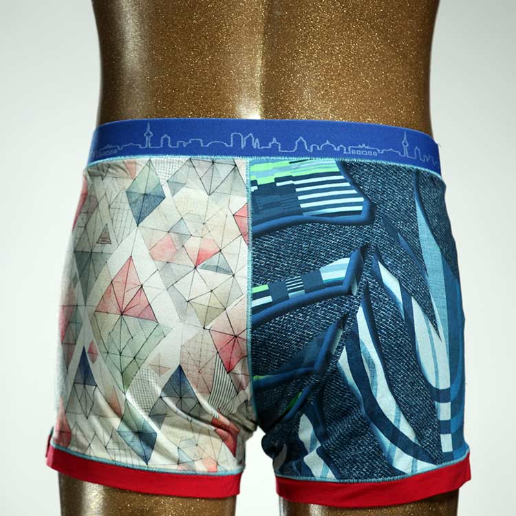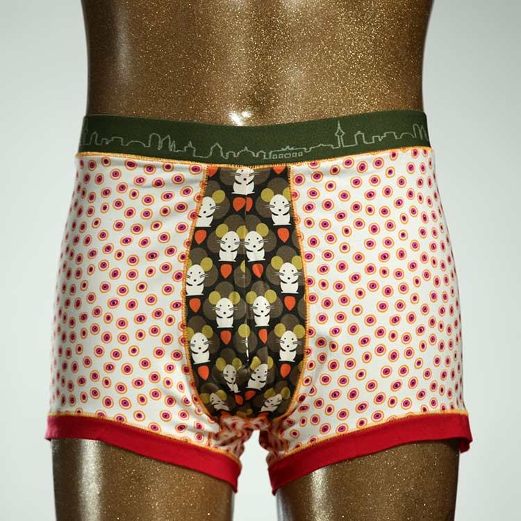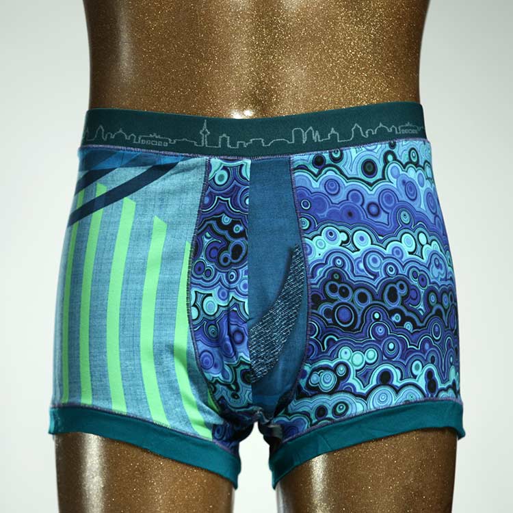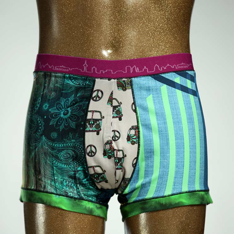 Diese schöne und bequeme Herrenshort aus GOTS-zertifizierter Biobaumwolle ist ein echtes Unikat und wurde in unserem Atelier in Berlin für Sie zugeschnitten, entworfen und genäht. Wir erschaffen täglich neue Unterwäsche-Einzelstücke aus weichen bunten Baumwoll-Jerseys.