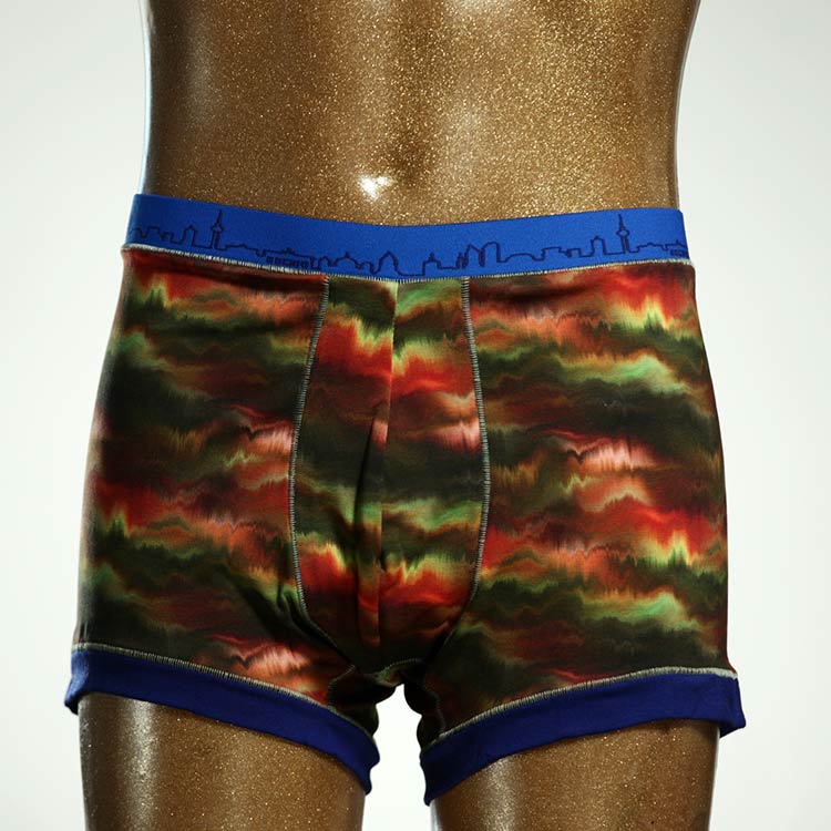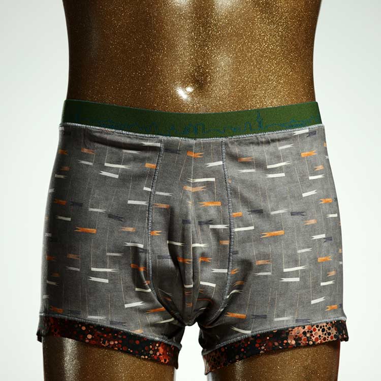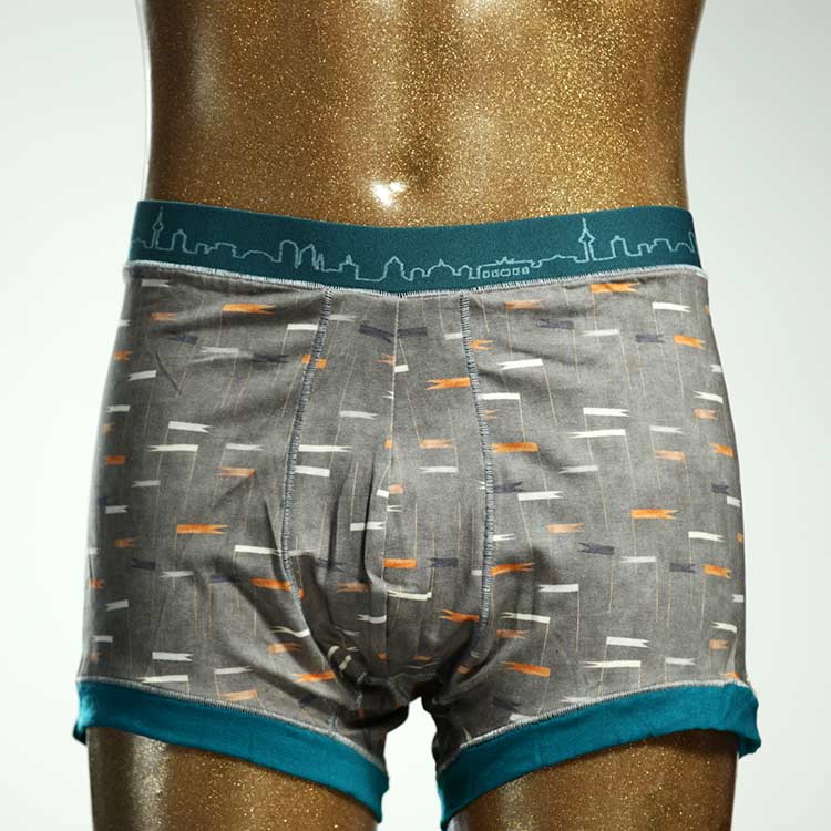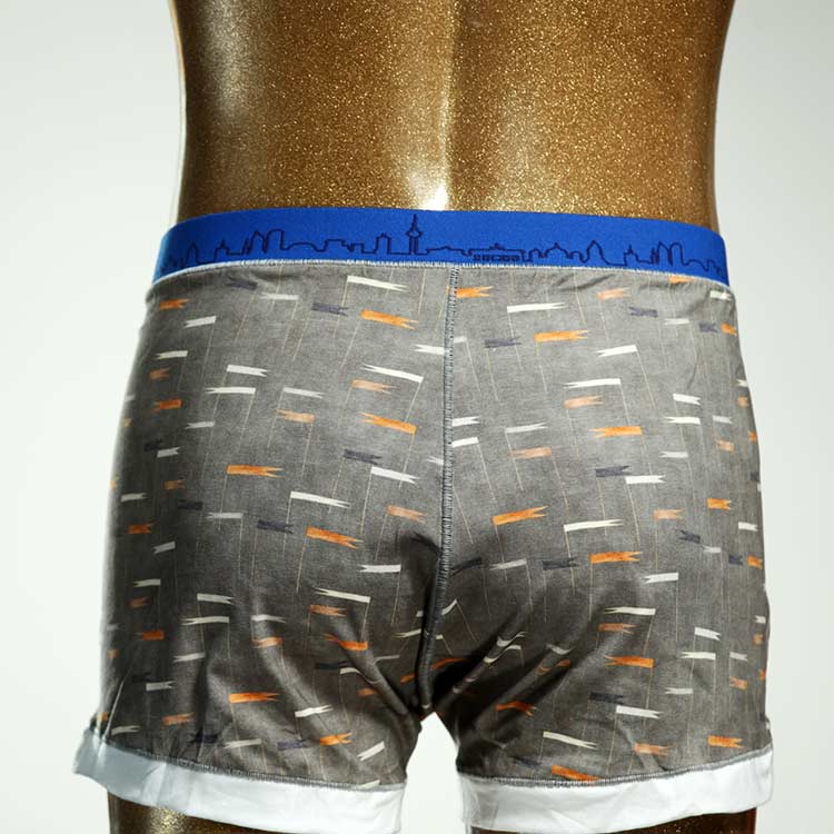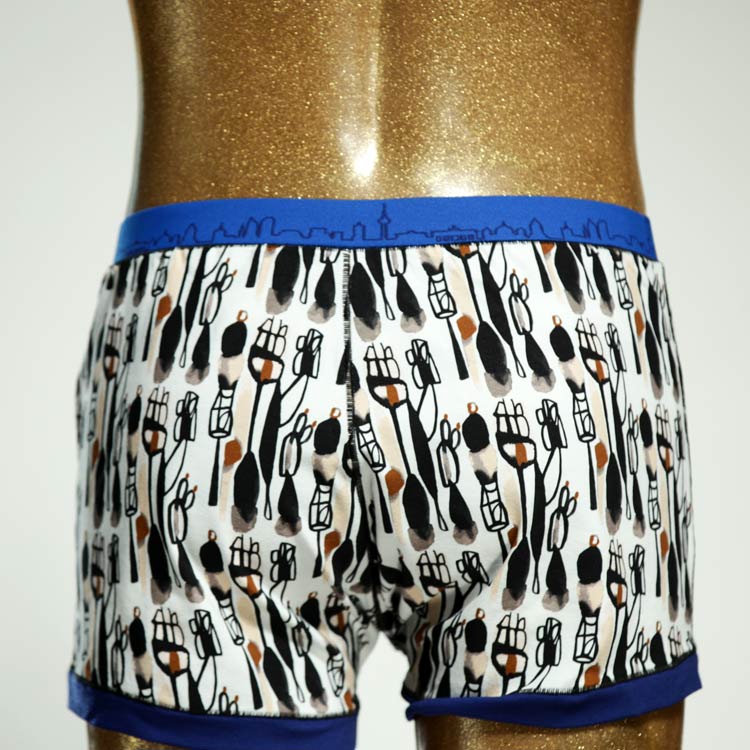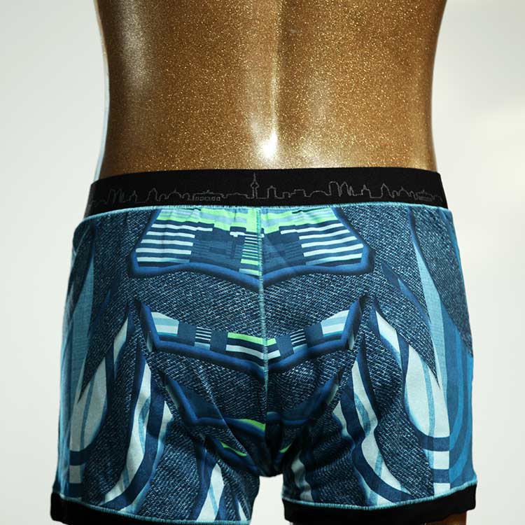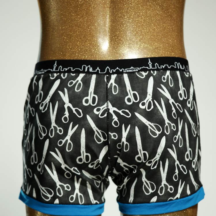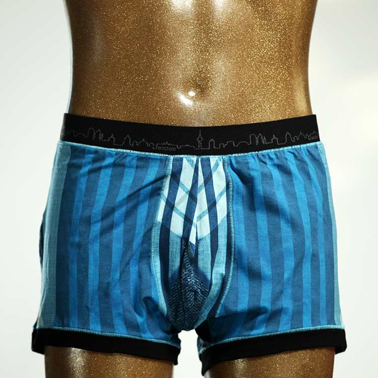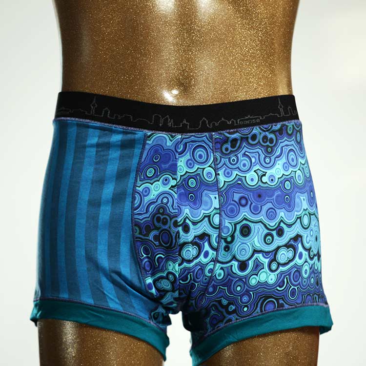 Diese schöne und bequeme Herrenshort aus Baumwolle ist ein echtes Unikat und wurde in unserem Atelier in Berlin für Sie zugeschnitten, entworfen und genäht. Wir erschaffen täglich neue Unterwäsche-Einzelstücke aus weichen bunten Baumwoll-Jerseys.