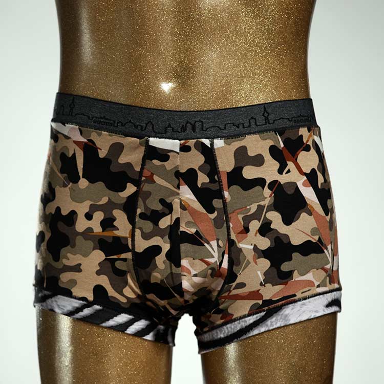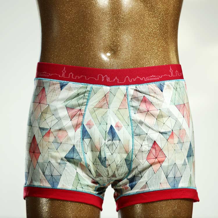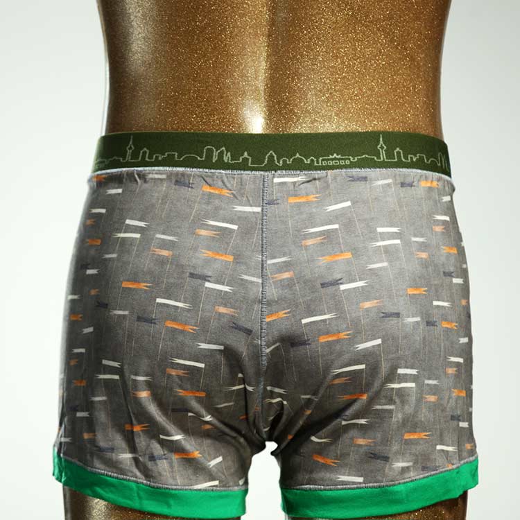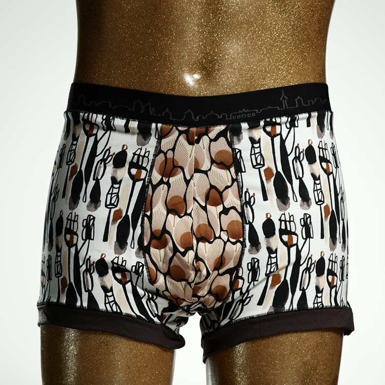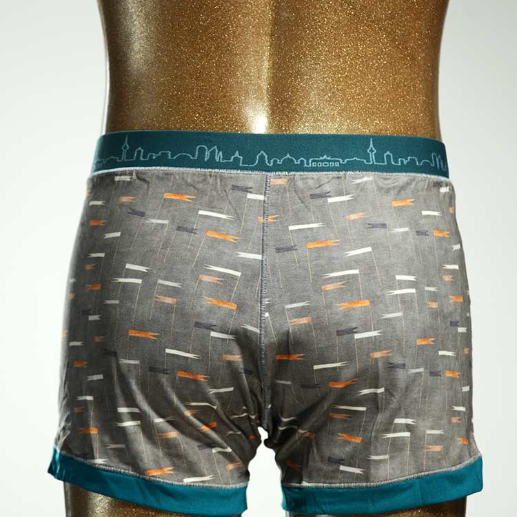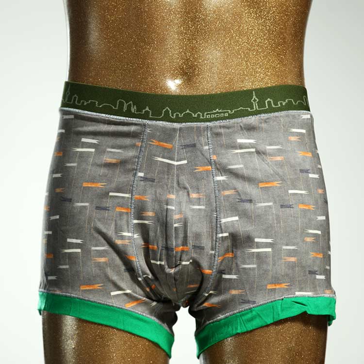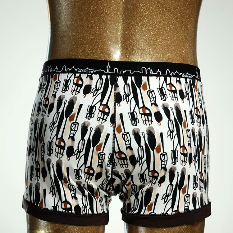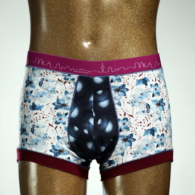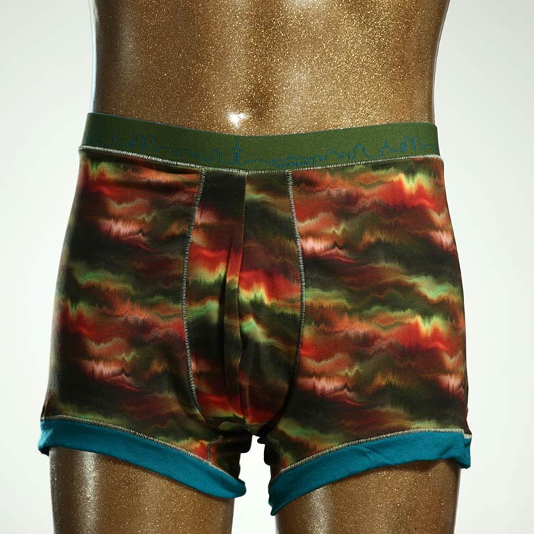 Diese schöne und bequeme Herrenshort aus Baumwolle ist ein echtes Unikat und wurde in unserem Atelier in Berlin für Sie zugeschnitten, entworfen und genäht. Wir erschaffen täglich neue Unterwäsche-Einzelstücke aus weichen bunten Baumwoll-Jerseys.