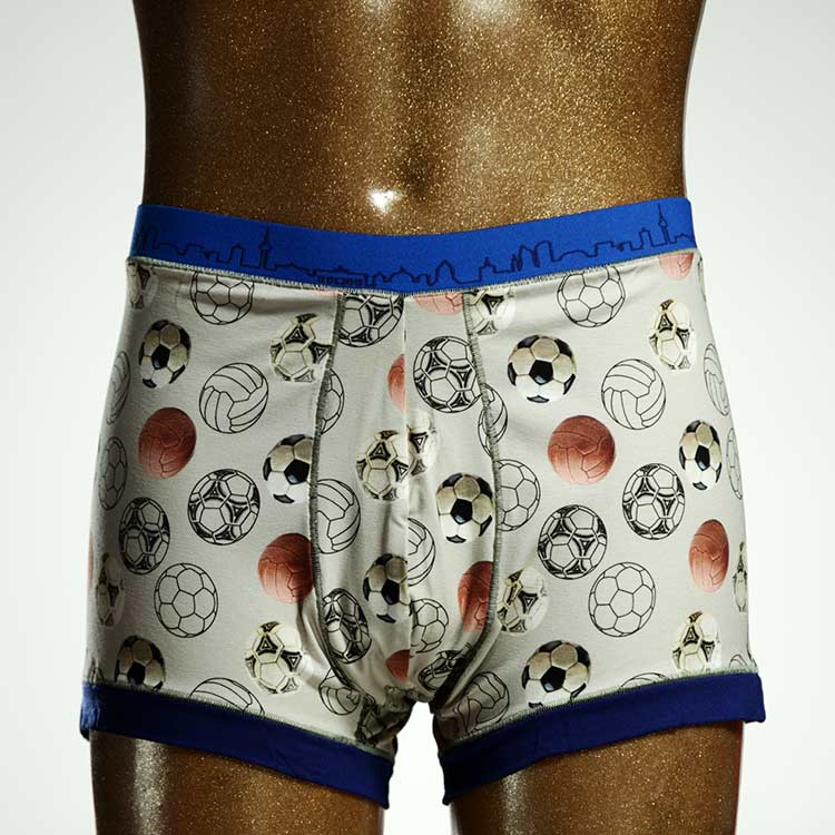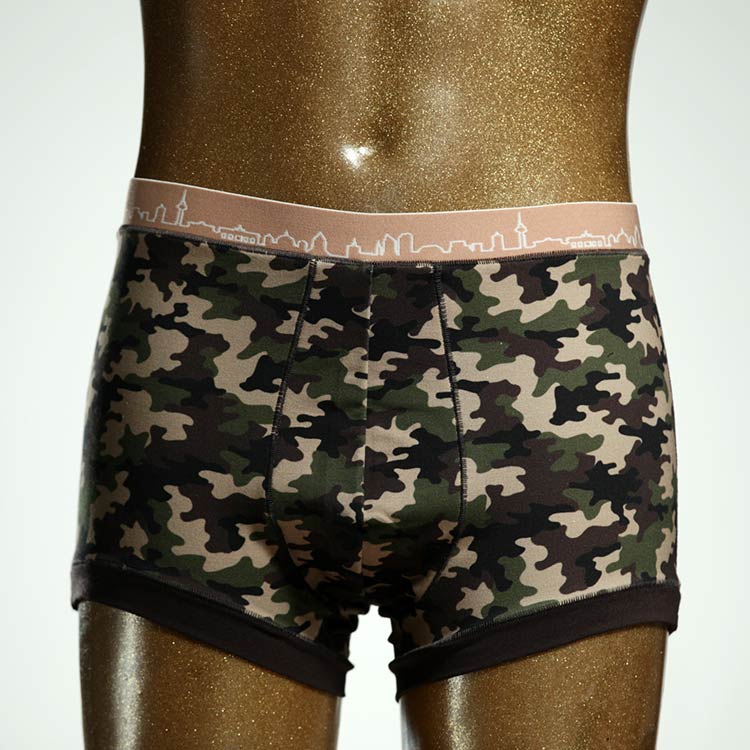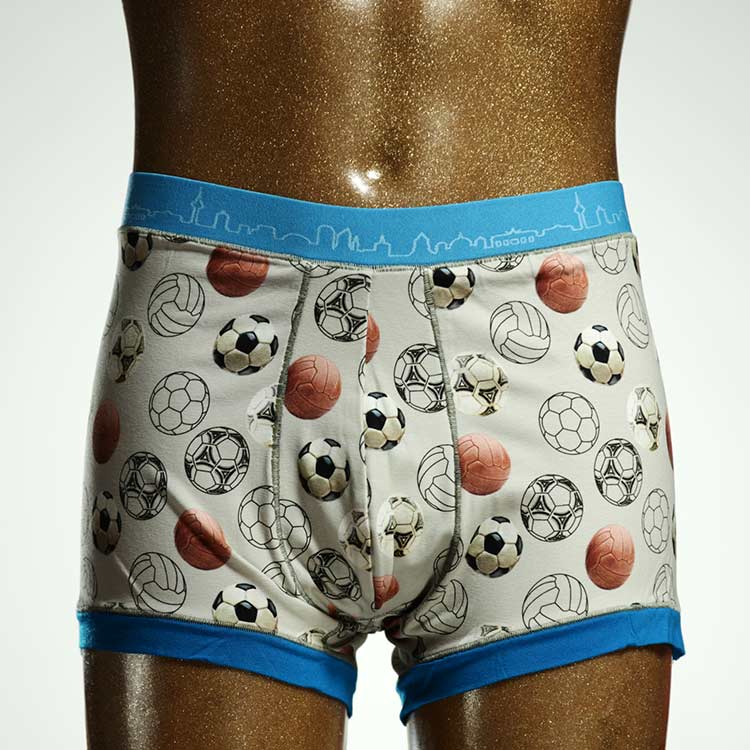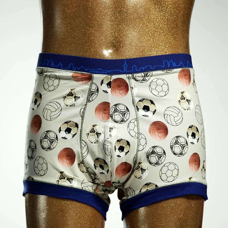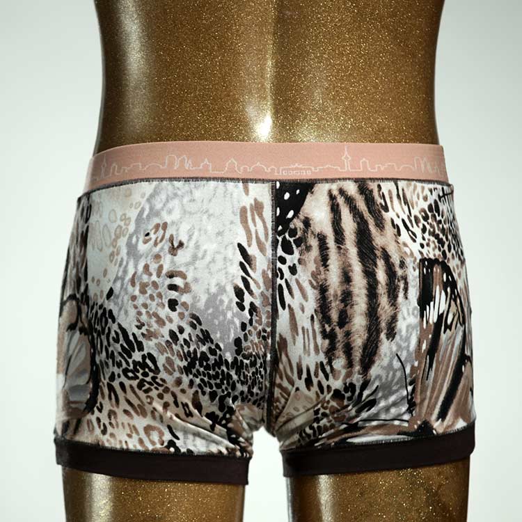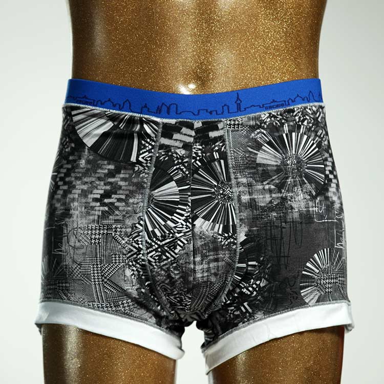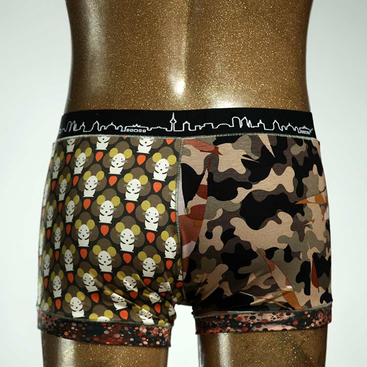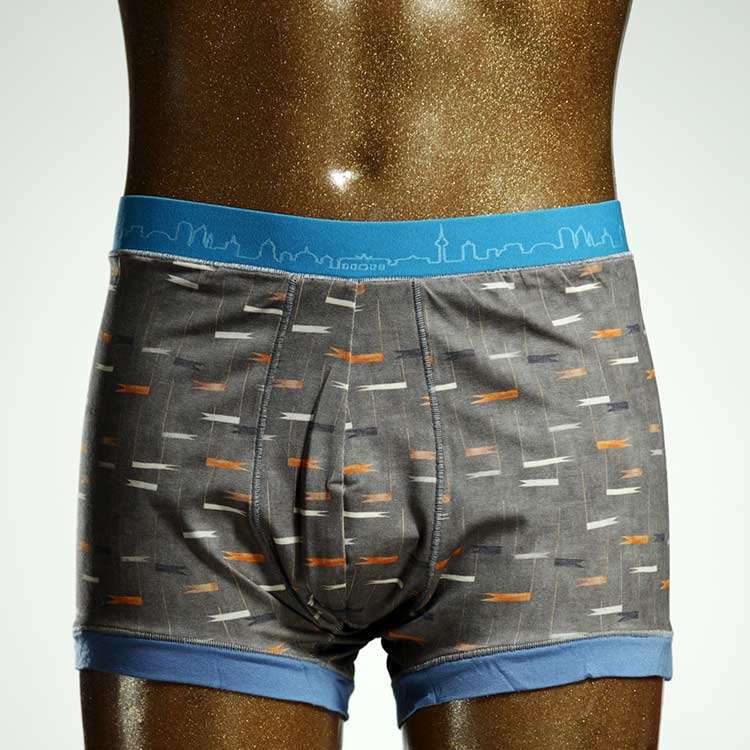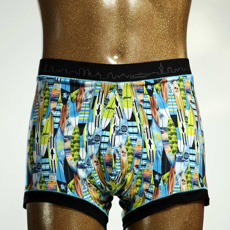 Diese schöne und bequeme Herrenshort aus Baumwolle ist ein echtes Unikat und wurde in unserem Atelier in Berlin für Sie zugeschnitten, entworfen und genäht. Wir erschaffen täglich neue Unterwäsche-Einzelstücke aus weichen bunten Baumwoll-Jerseys.