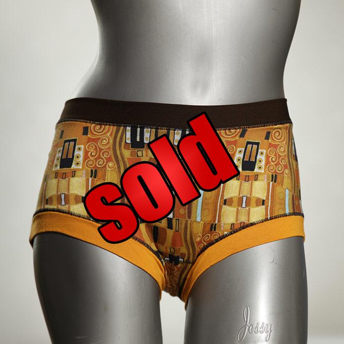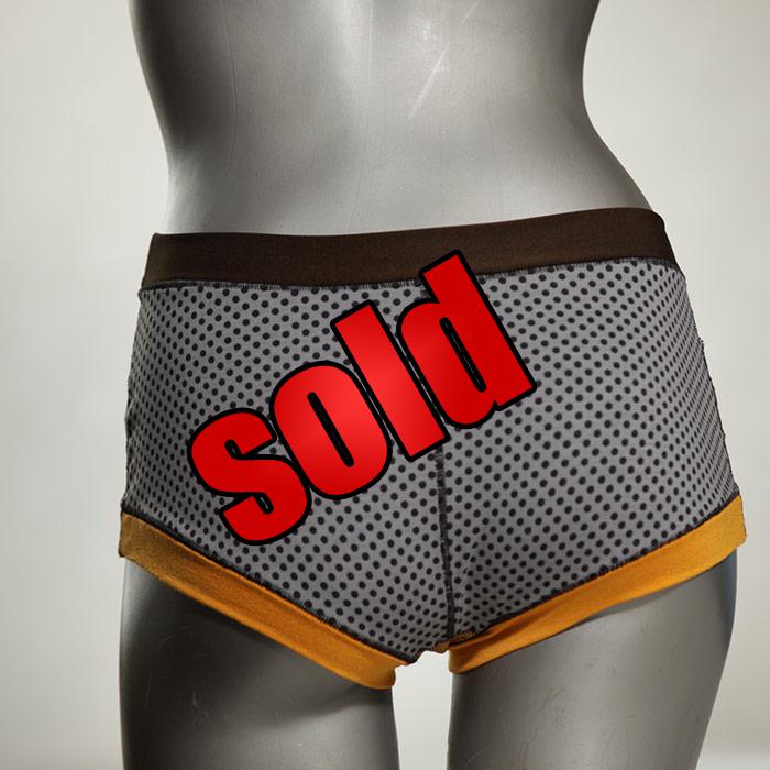 Los hotpants son nuestro éxito de ventas justo después de las bragas. Artículos genuinamente únicos fabricados en Berlín. Son de corte relativamente ancho y confeccionados en jersey de algodón suave y elástico sin gomas pegadas. Cubre completamente el fondo, dependiendo de la persona, y no queda atrapado en ningún lado. Similar a boyshort. Agradable para la piel y muy cómodo.