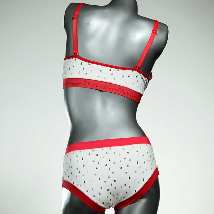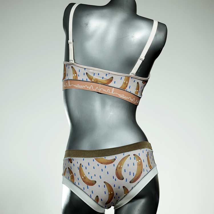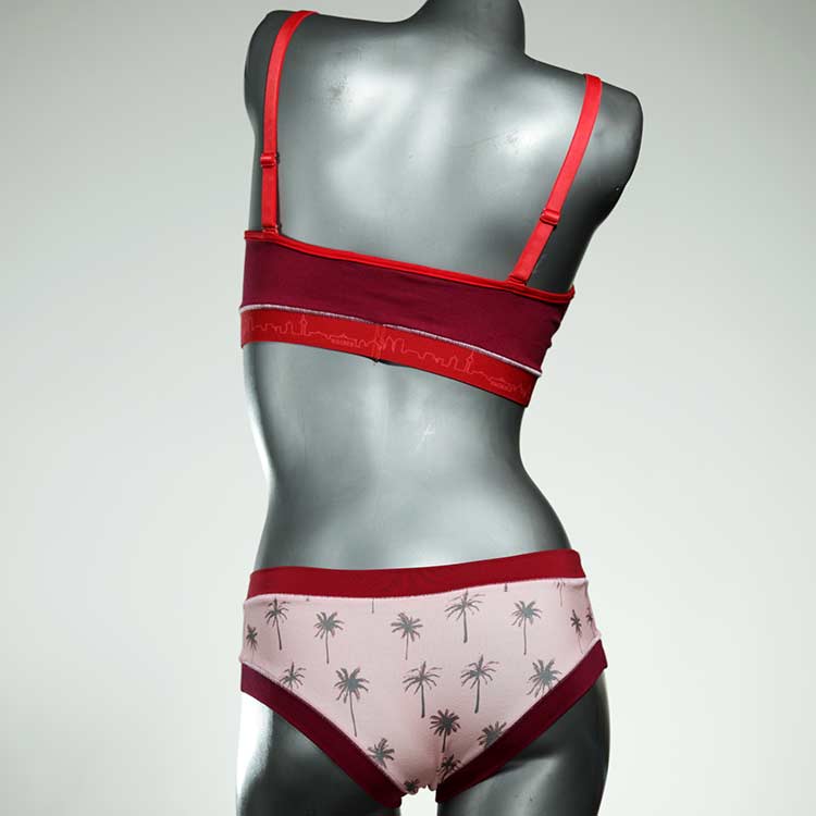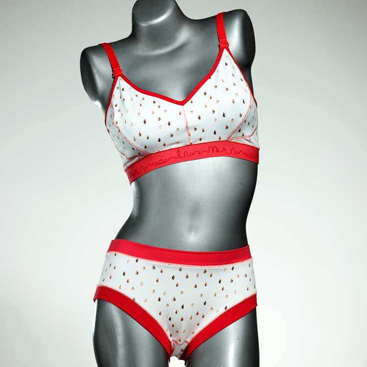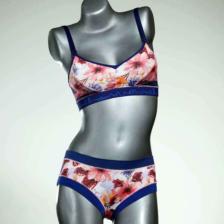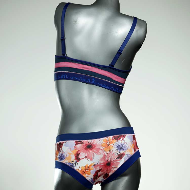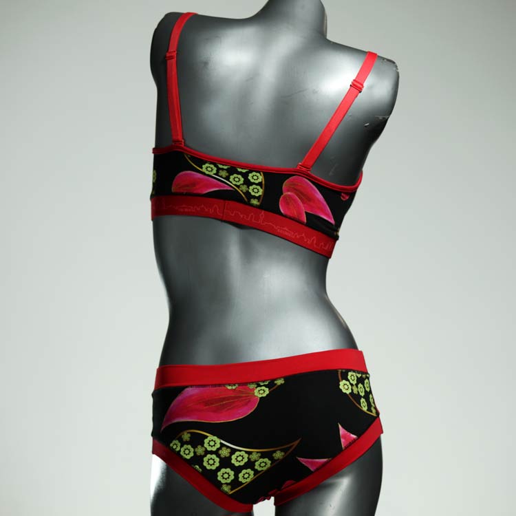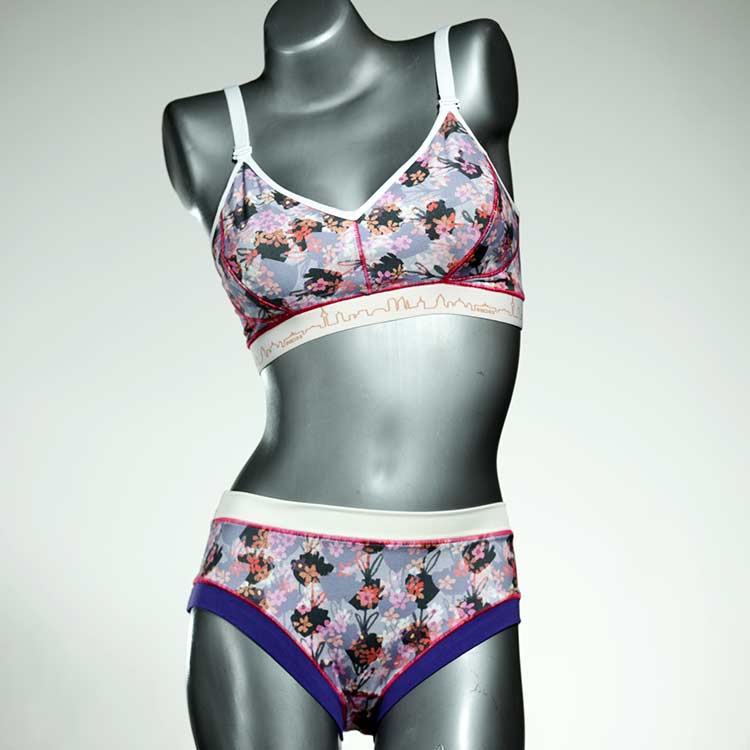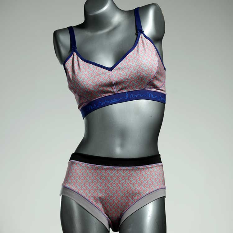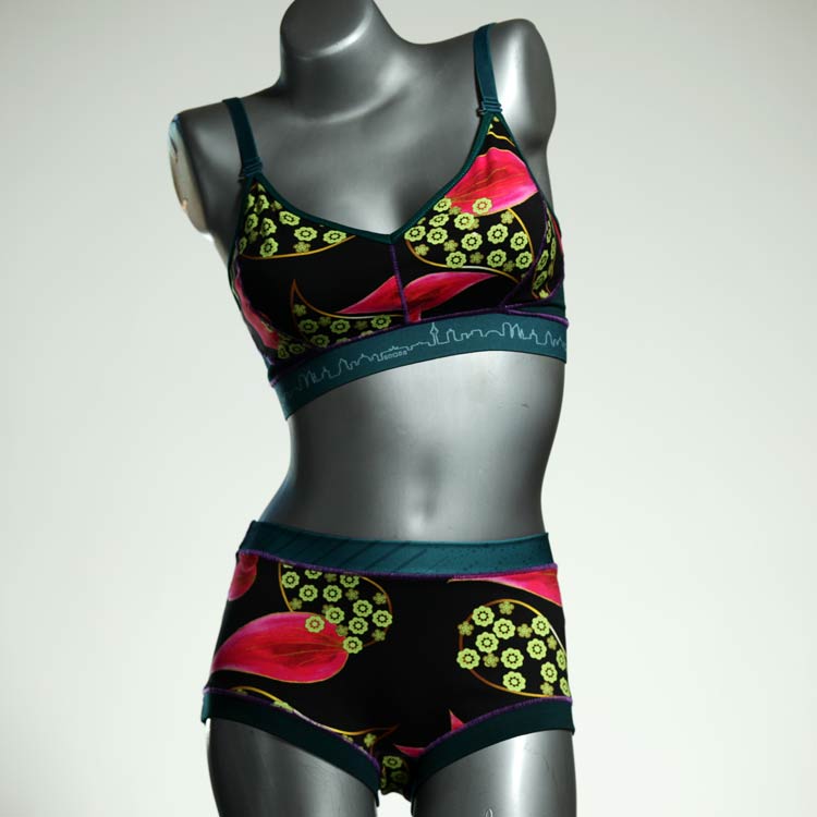 Ensemble unique de soutien-gorge en jersey de coton biologique double épaisseur et respirant avec des bretelles de 16 mm de large et une culotte assortie. Sous-vêtements uniques confortables, équitables et produits de manière durable de notre manufacture. Soutien-gorge sans armature, sans coussin ni fermoir.