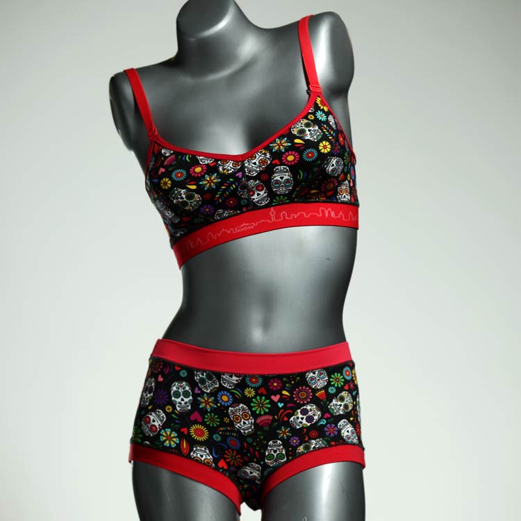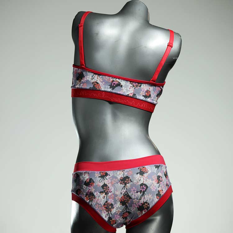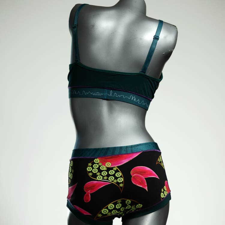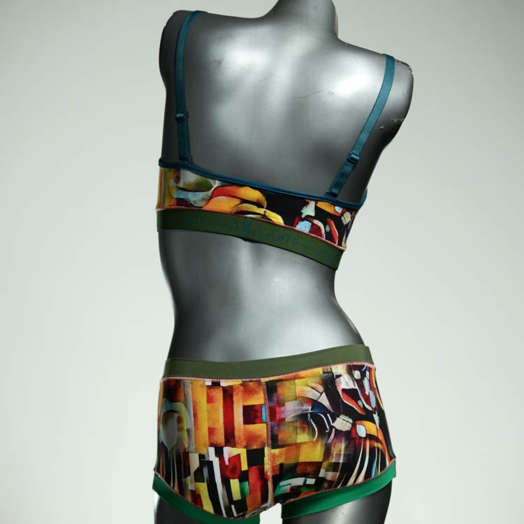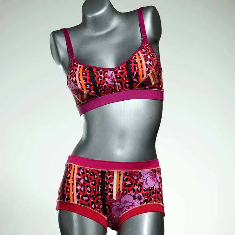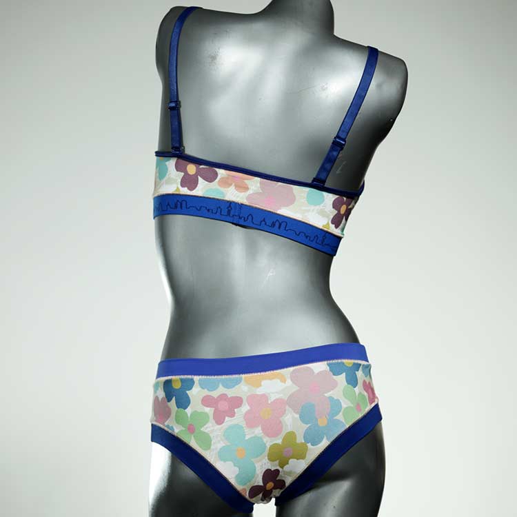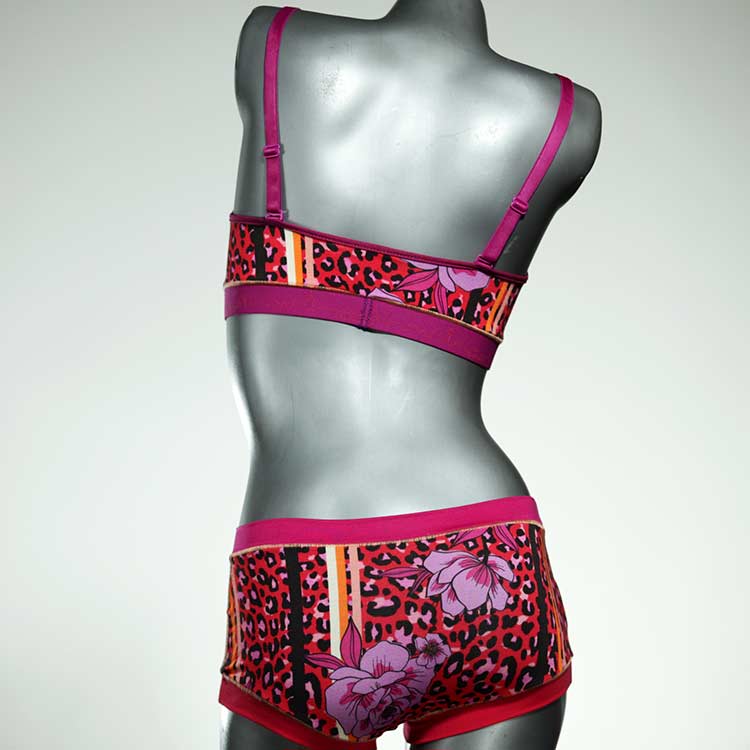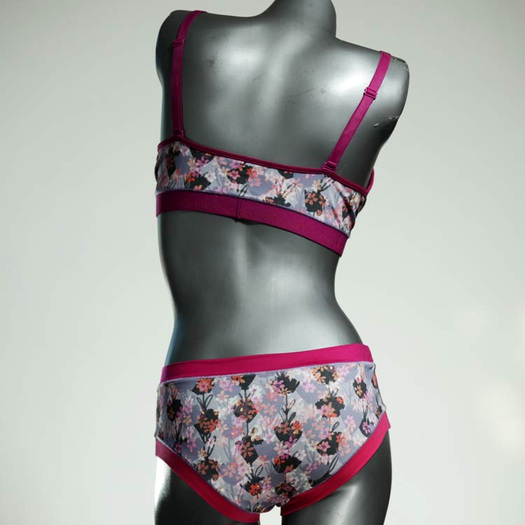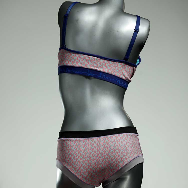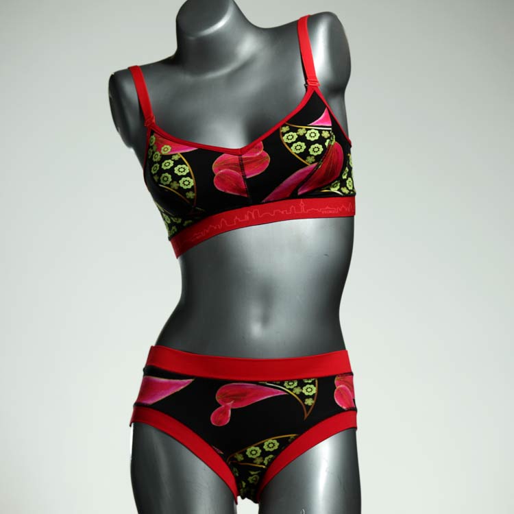Ensemble unique de soutien-gorge en jersey de coton biologique double épaisseur et respirant avec des bretelles de 16 mm de large et une culotte assortie. Sous-vêtements uniques confortables, équitables et produits de manière durable de notre manufacture. Soutien-gorge sans armature, sans coussin ni fermoir.