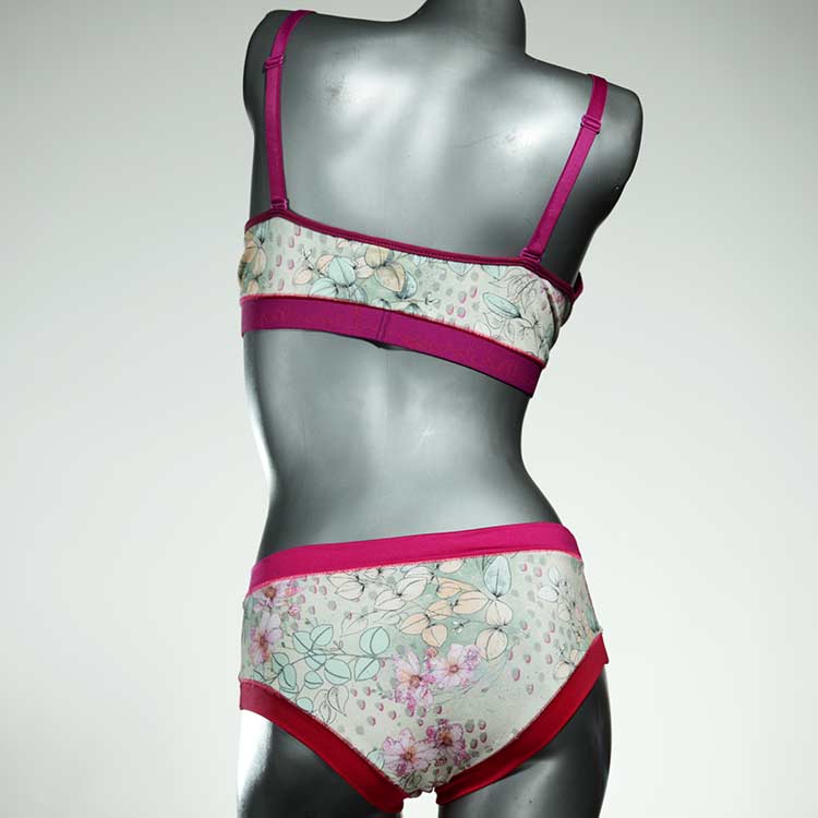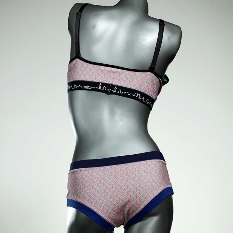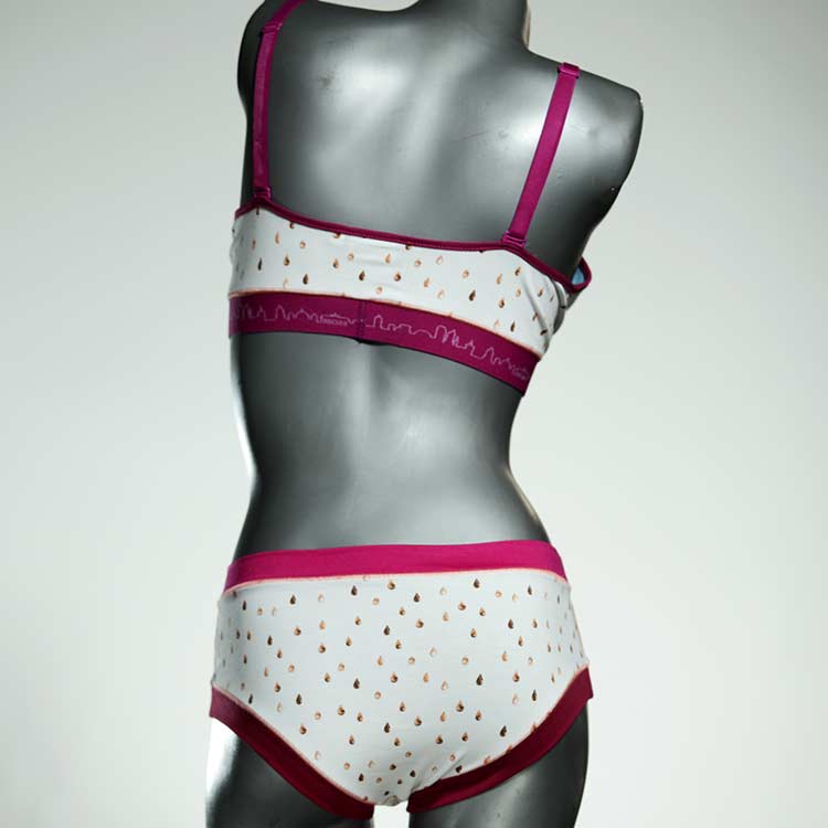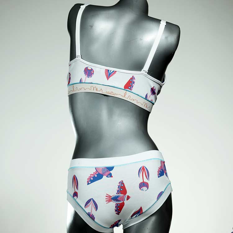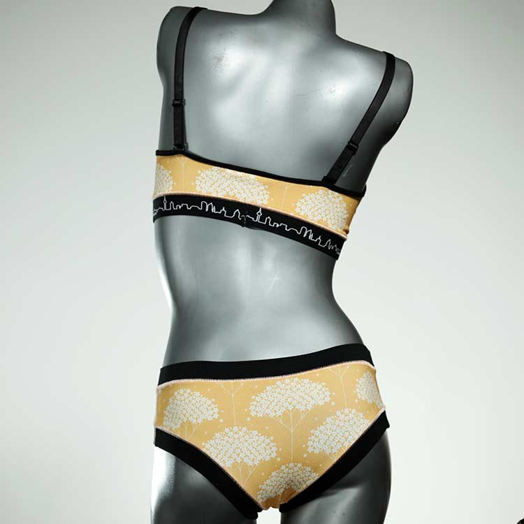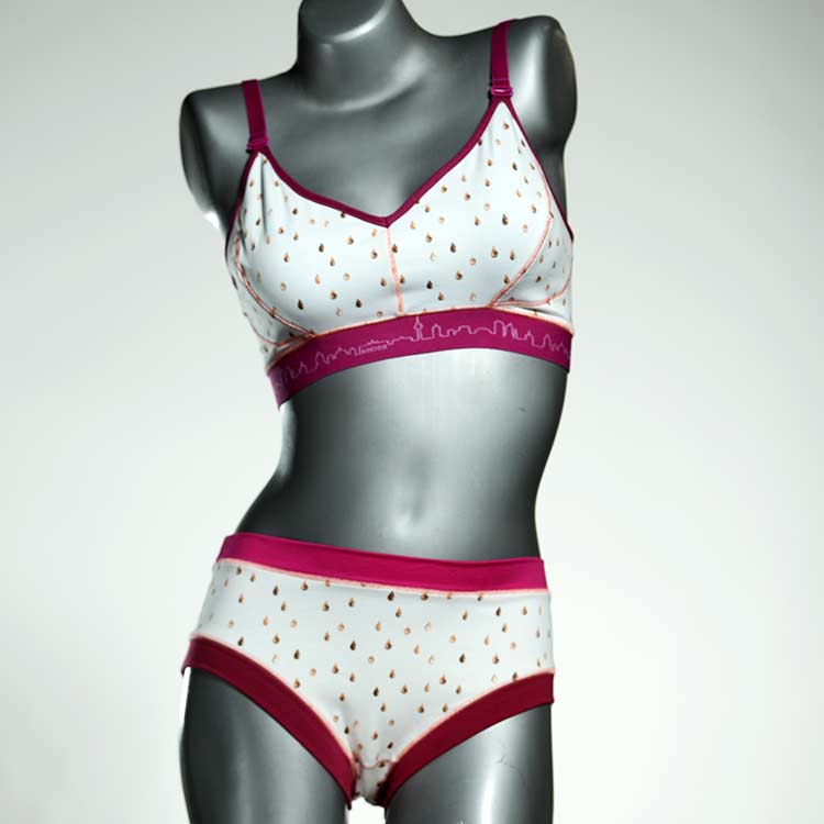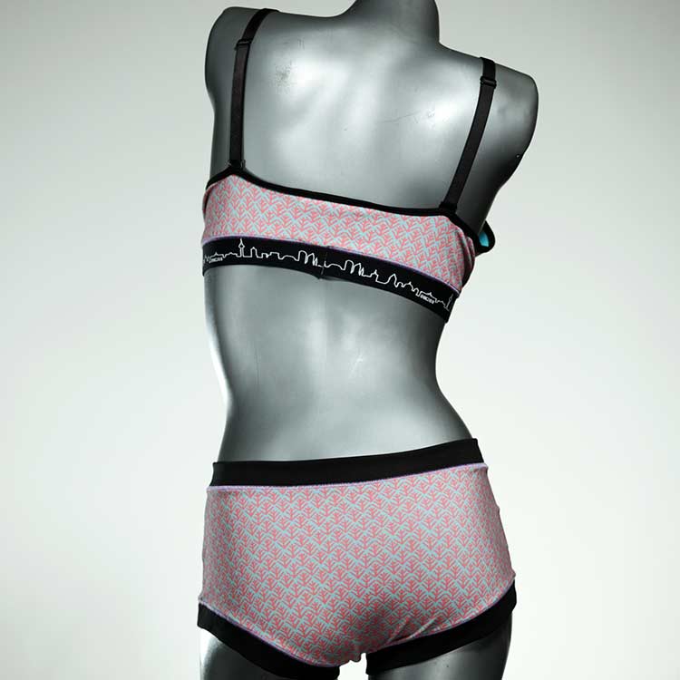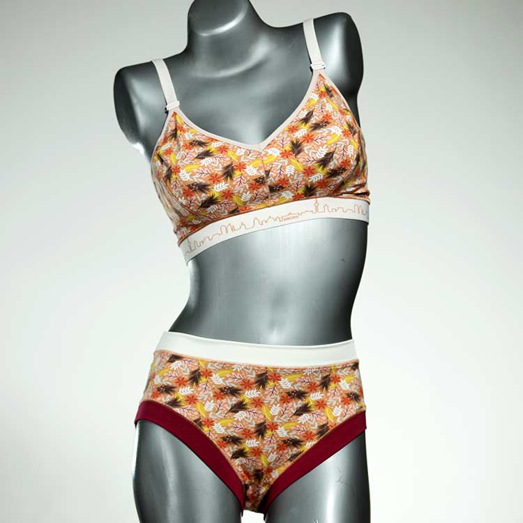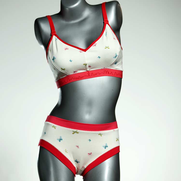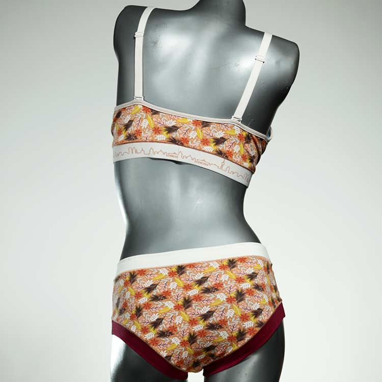 Ensemble unique de soutien-gorge en jersey de coton biologique double épaisseur et respirant avec des bretelles de 16 mm de large et une culotte assortie. Sous-vêtements uniques confortables, équitables et produits de manière durable de notre manufacture. Soutien-gorge sans armature, sans coussin ni fermoir.