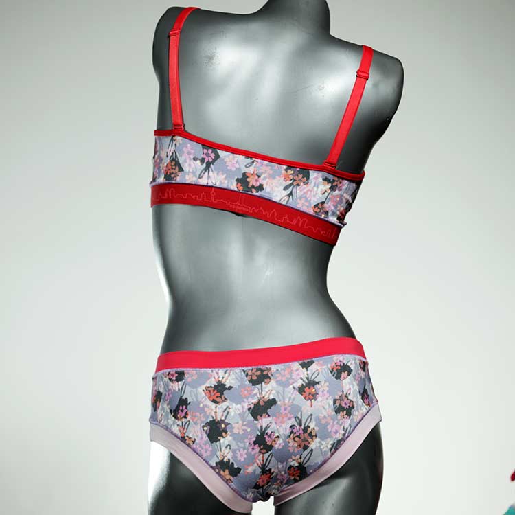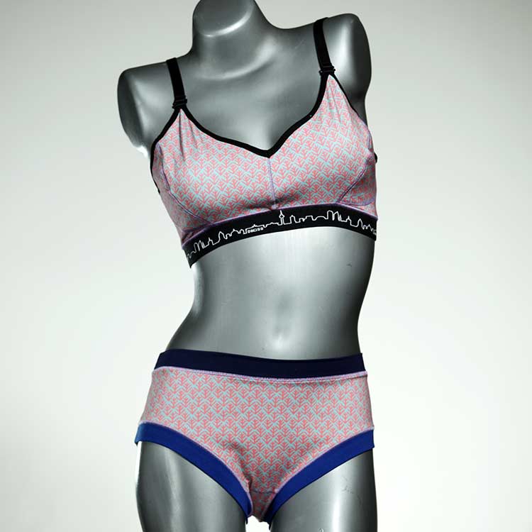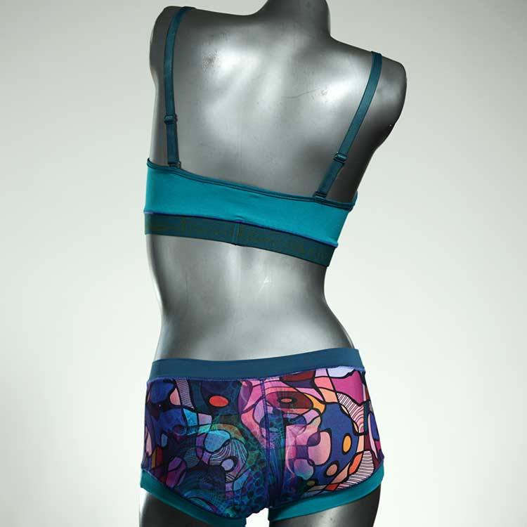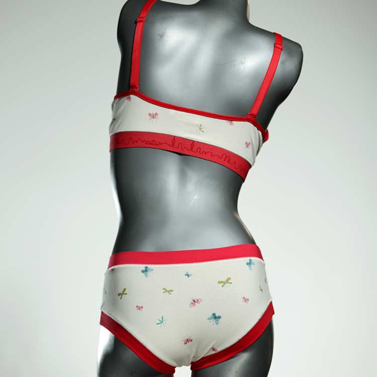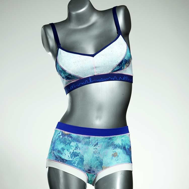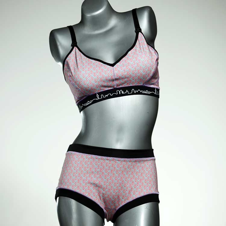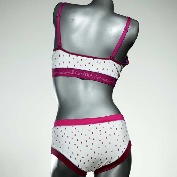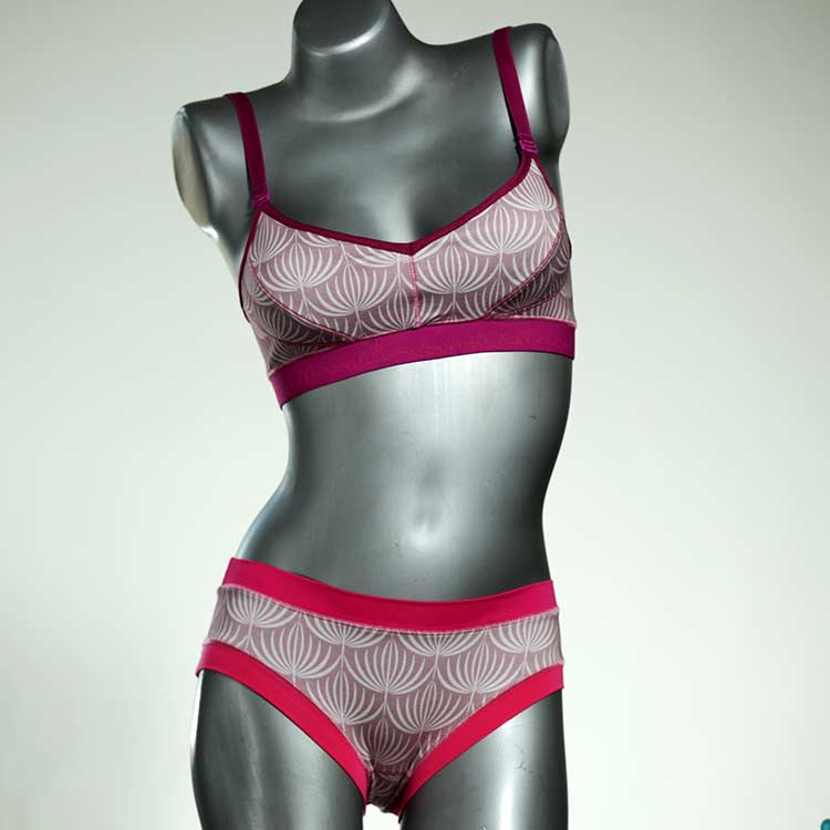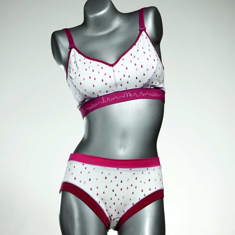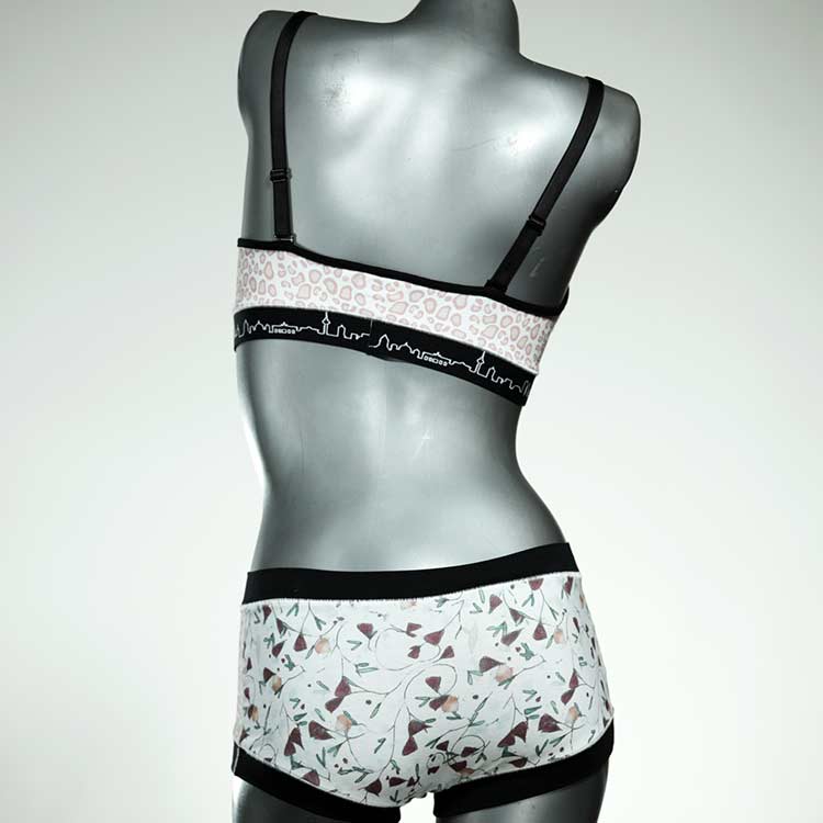 Ensemble unique de soutien-gorge en jersey de coton biologique double épaisseur et respirant avec des bretelles de 16 mm de large et une culotte assortie. Sous-vêtements uniques confortables, équitables et produits de manière durable de notre manufacture. Soutien-gorge sans armature, sans coussin ni fermoir.