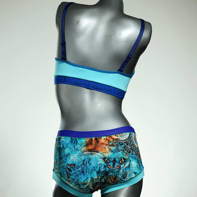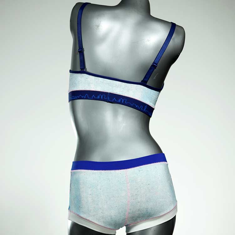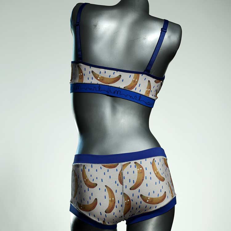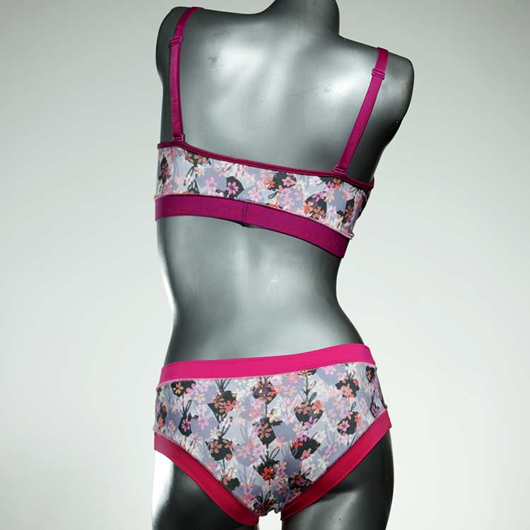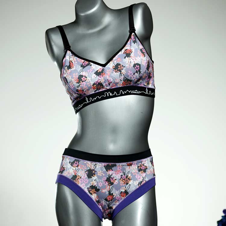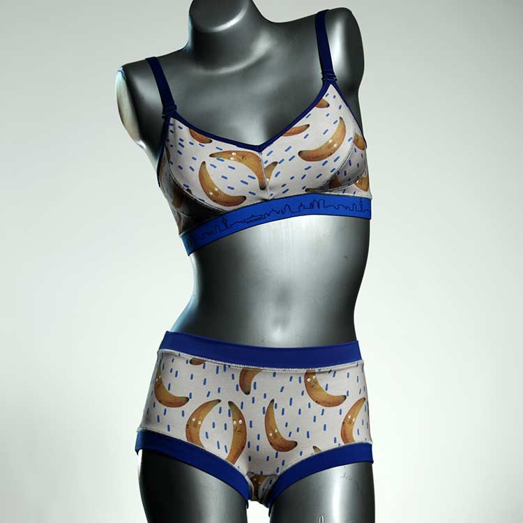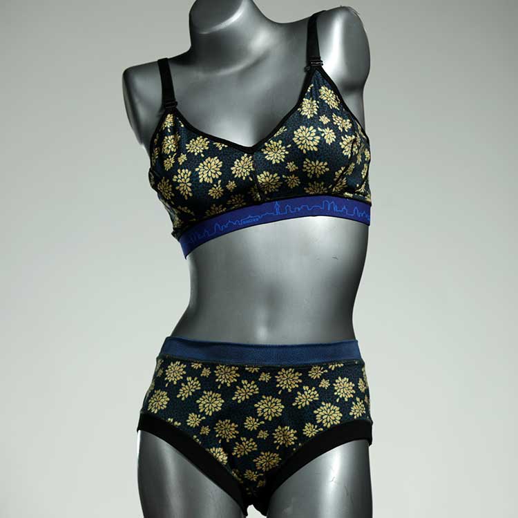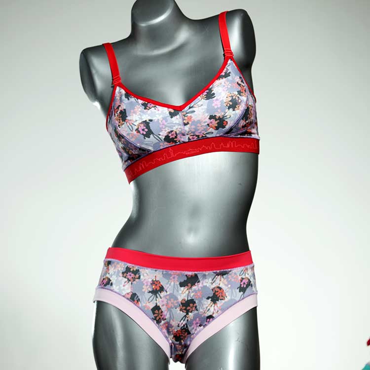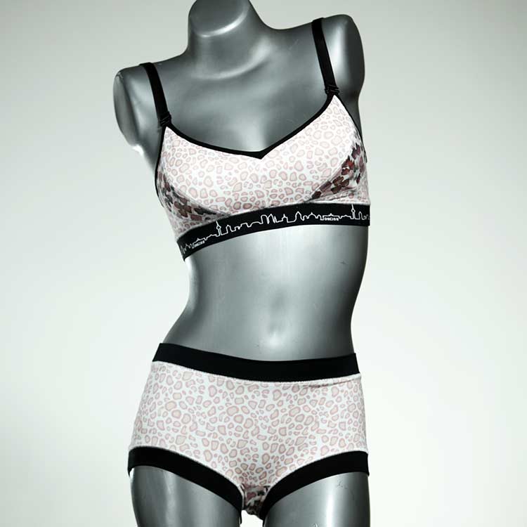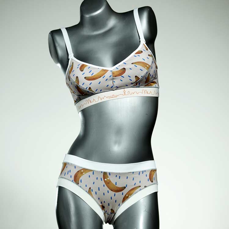 Ensemble unique de soutien-gorge en jersey de coton biologique double épaisseur et respirant avec des bretelles de 16 mm de large et une culotte assortie. Sous-vêtements uniques confortables, équitables et produits de manière durable de notre manufacture. Soutien-gorge sans armature, sans coussin ni fermoir.